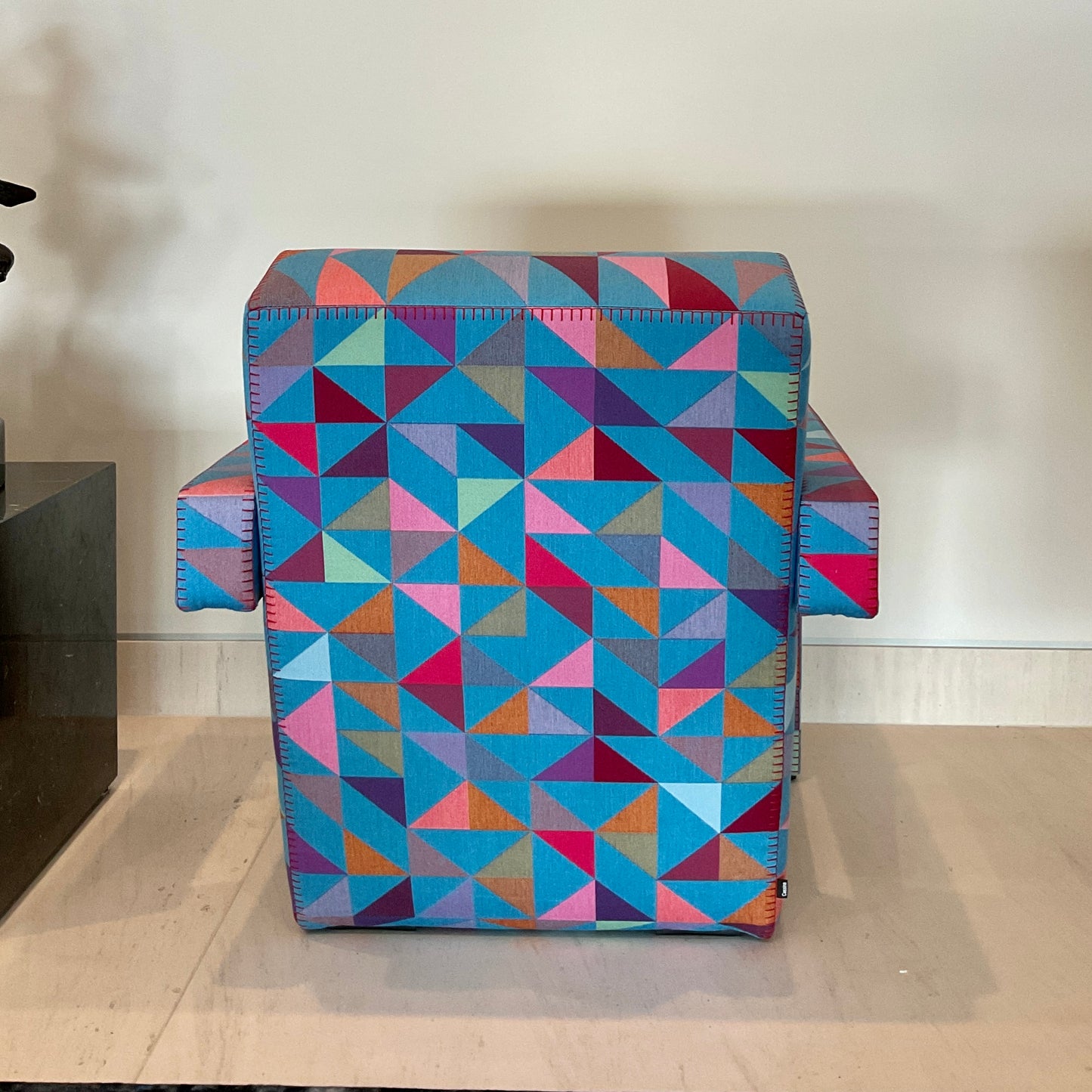 For Cassina’s 90th anniversary, two reimaginations of the Utrecht are available in limited edition. Artist Bertjan Pot designed a bespoke three-part Jacquard fabric for the Utrecht armchair to offer a contemporary interpretation of this 1935 Gerrit T. Rietveld icon. The armchair's architecture is reflected in the innovative BoxBlocks fabric, which consists of 8 colored yarns blended 2 by 2 to create 19 colors that are drawn following a template to trace the armchair's shape. The fabric has a unique, perfectly balanced geometric design in which the triangle combination is never repeated. Each BoxBlocks fabric, in homage to Dutch creativity, dresses the limited edition with a bespoke dress; the limited edition is progressively numbered to guarantee Cassina authenticity.