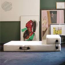 Trix is composed of three cushions of different sizes linked by an elegant system of rubber bands. With a simple rotating movement, they can be transformed and used in different ways. Trix can also be turned into a cozy bed, a comfortable lounge chair and a welcoming armchair. It is made of expanded polyurethane and is upholstered in three-dimensional woven technical fabric. The Trix we have on offer is in white.