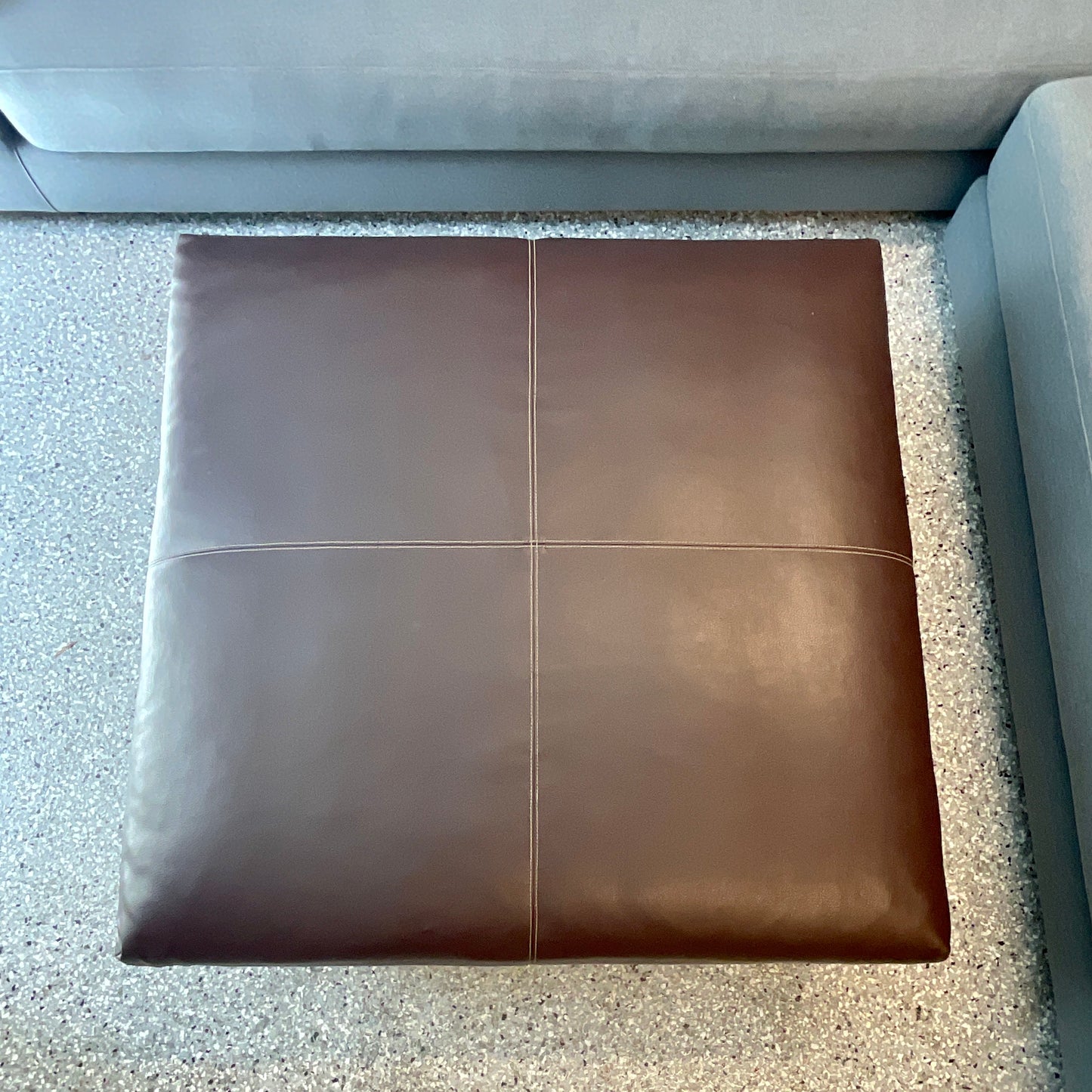 The Empire ottoman we have on offer has a hardwood frame and is upholstered in brown leather.