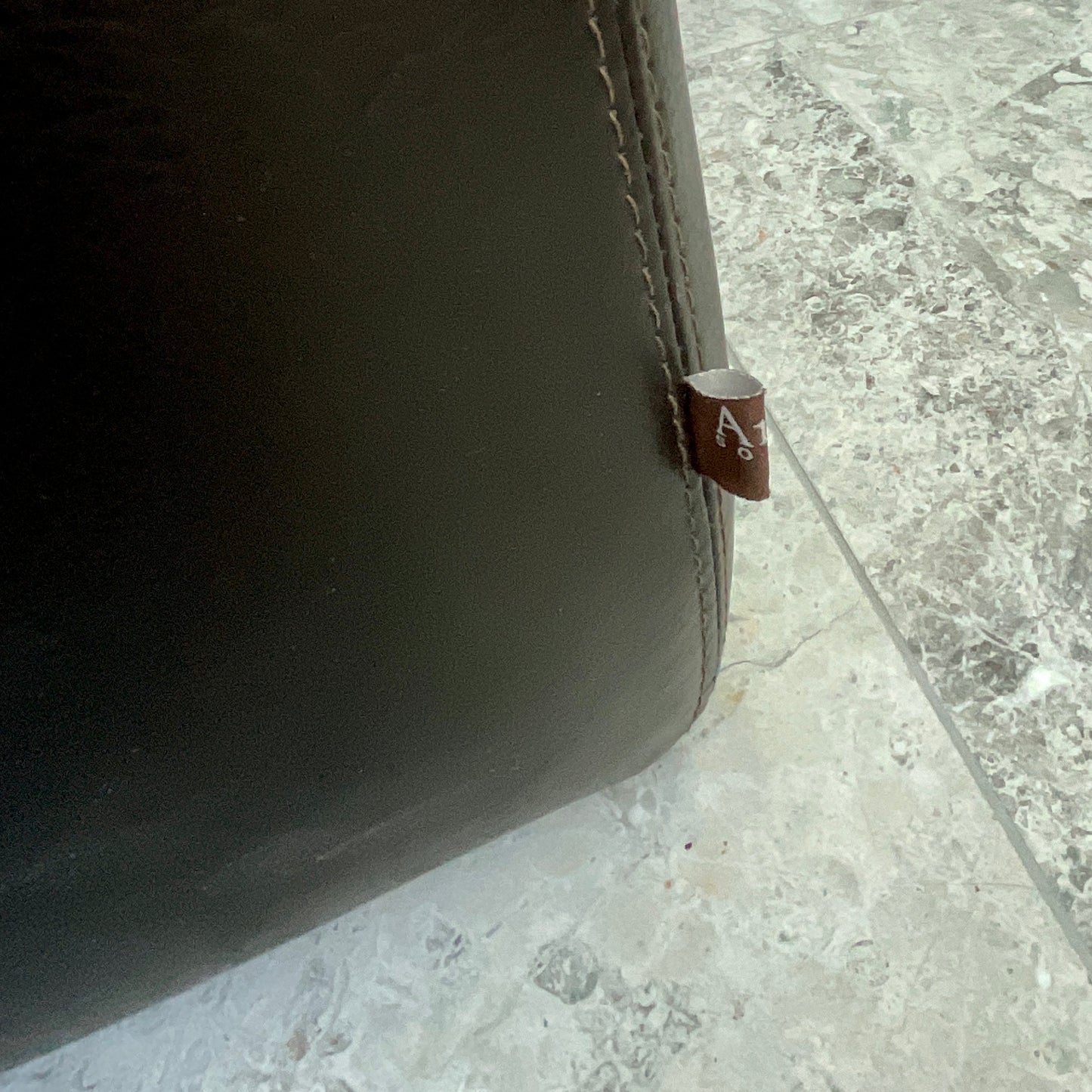 Large square leather ottoman. The item we have on offer is a very dark brown.