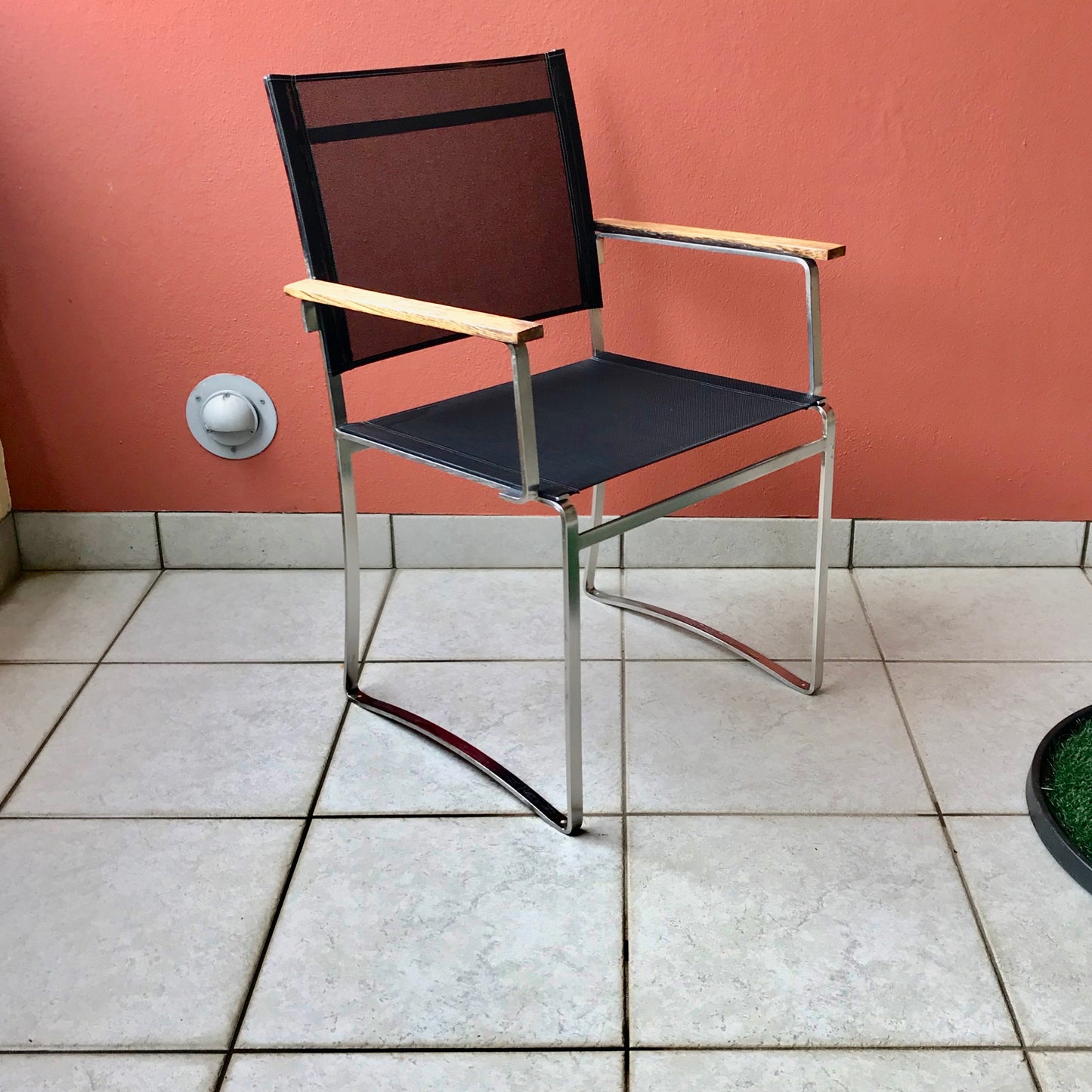 The O-Zon Dining Table range is impeccably styled and created to withstand the test of time in the outdoors. With numerous options, they are available in an electro-polished stainless steel frame. Options for tabletops include glass, ceramic and teak. Table frame options include electro-polished stainless steel and also powder-coated aluminium. The six dining chairs have a stainless steel frame with timber armrests and black mesh seat and back.
