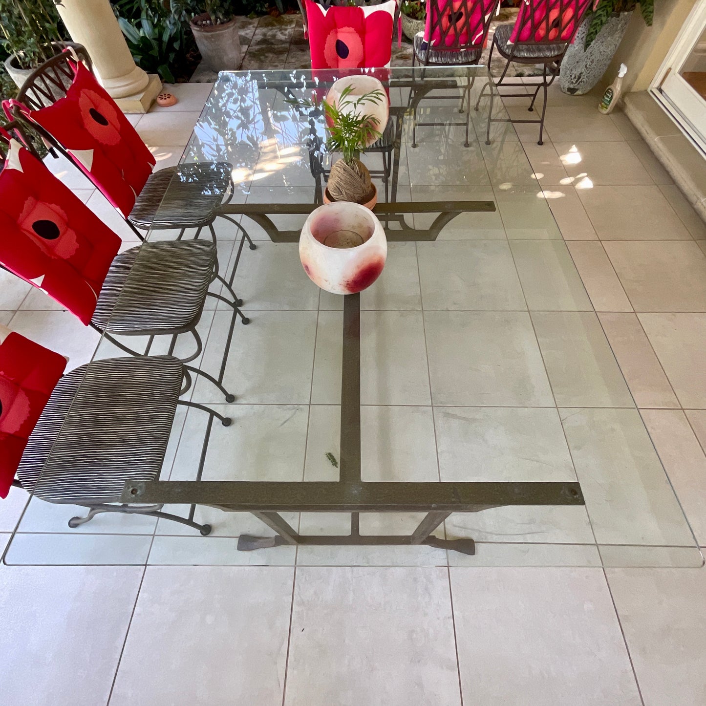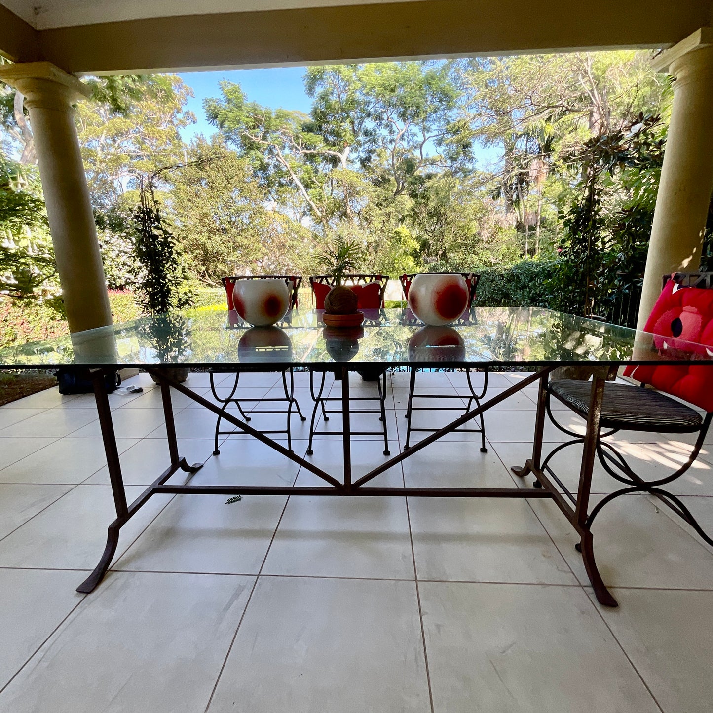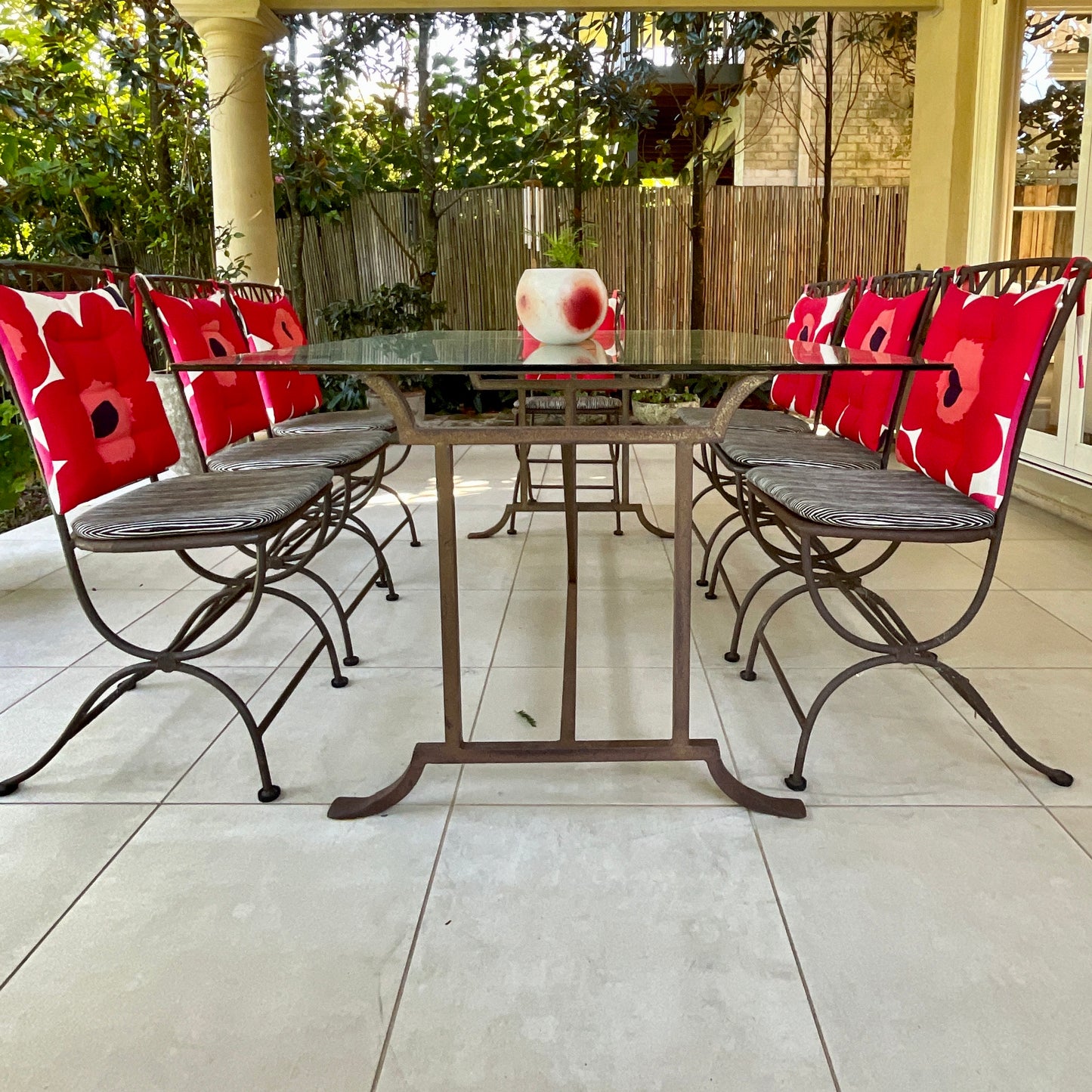 Each piece is individually hand forged by skilled craftsmen for Australian conditions. It's been treated and hand finished with a lovely patina and any slight difference in the final finish is due to the hand forged process which we consider to be merits in workmanship. It’s a quality piece you will be able to keep forever. This prestigious and original Le Forge hand crafted steel table base is available with a glass top.
