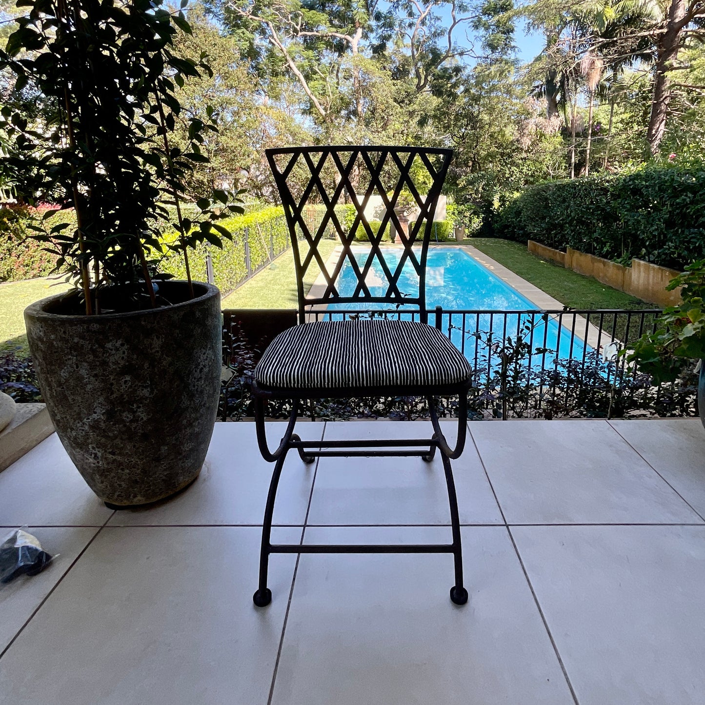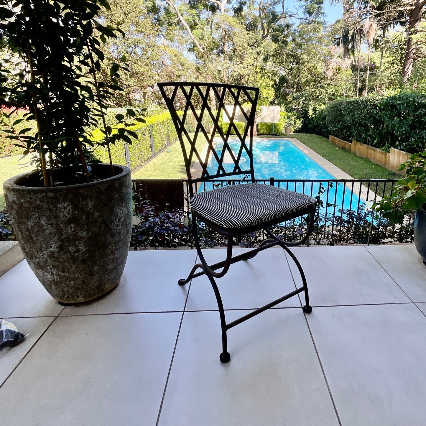 Our Galvanised Tuscan Garden Chair with it's Lattice back suits any Cushion option: All our cushions are made in Sydney using quality Sunbrella Fabric.
