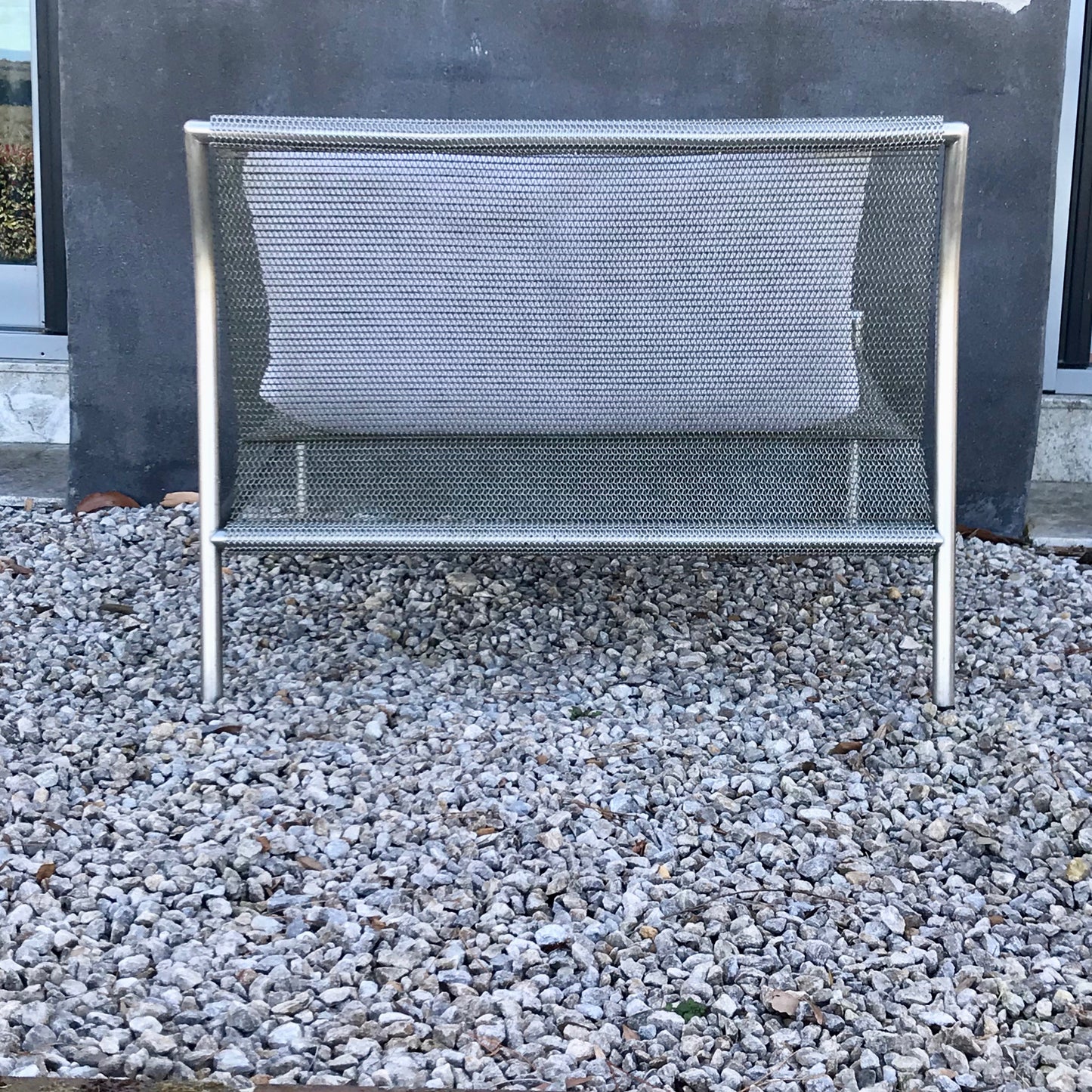 Flexible feet in nylon. Upholstered in AISI 316 stainless steel mesh.