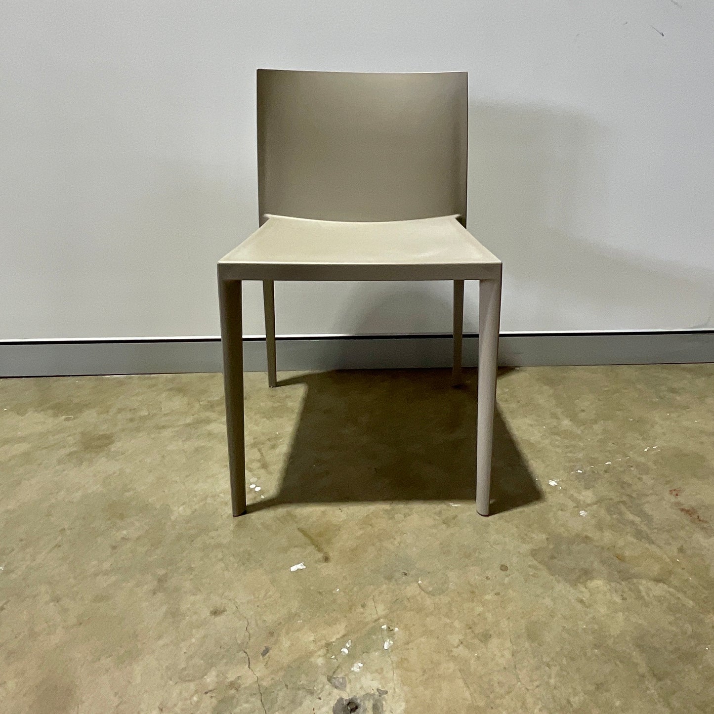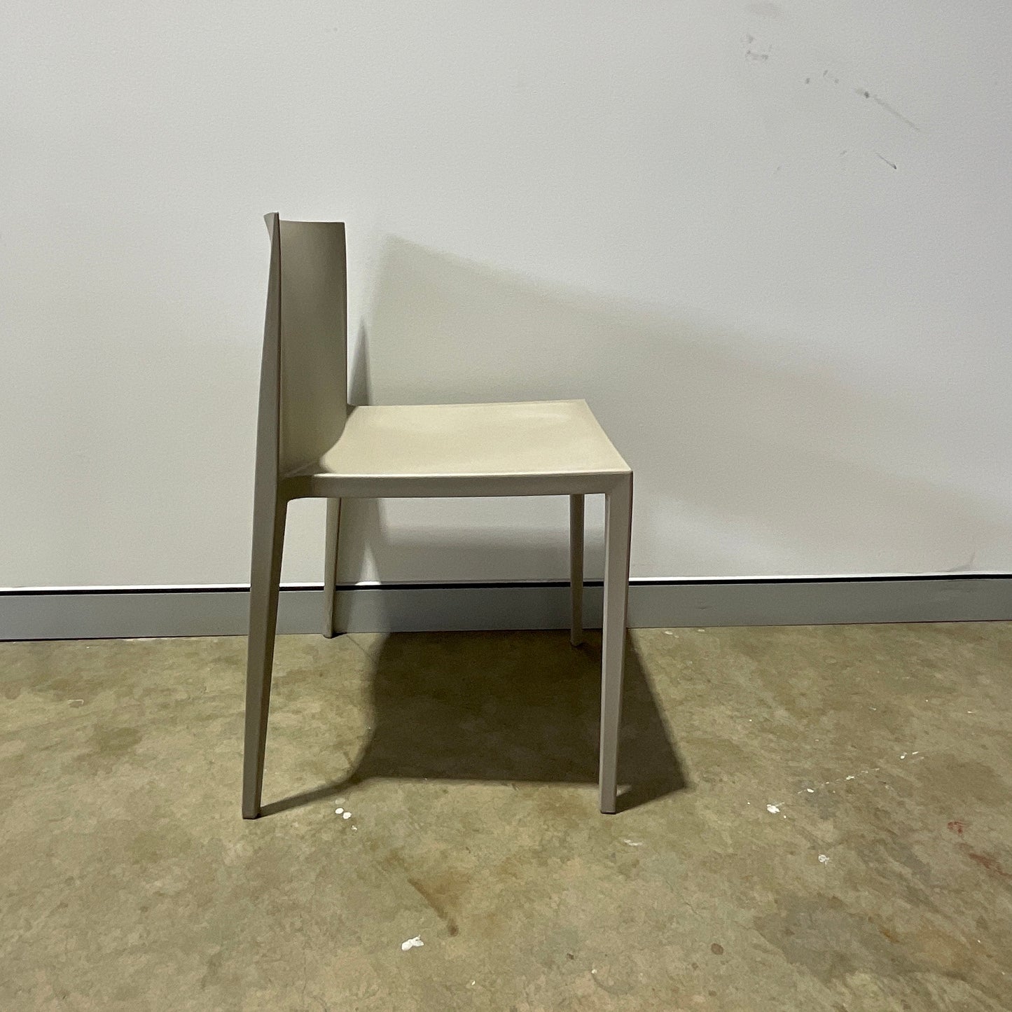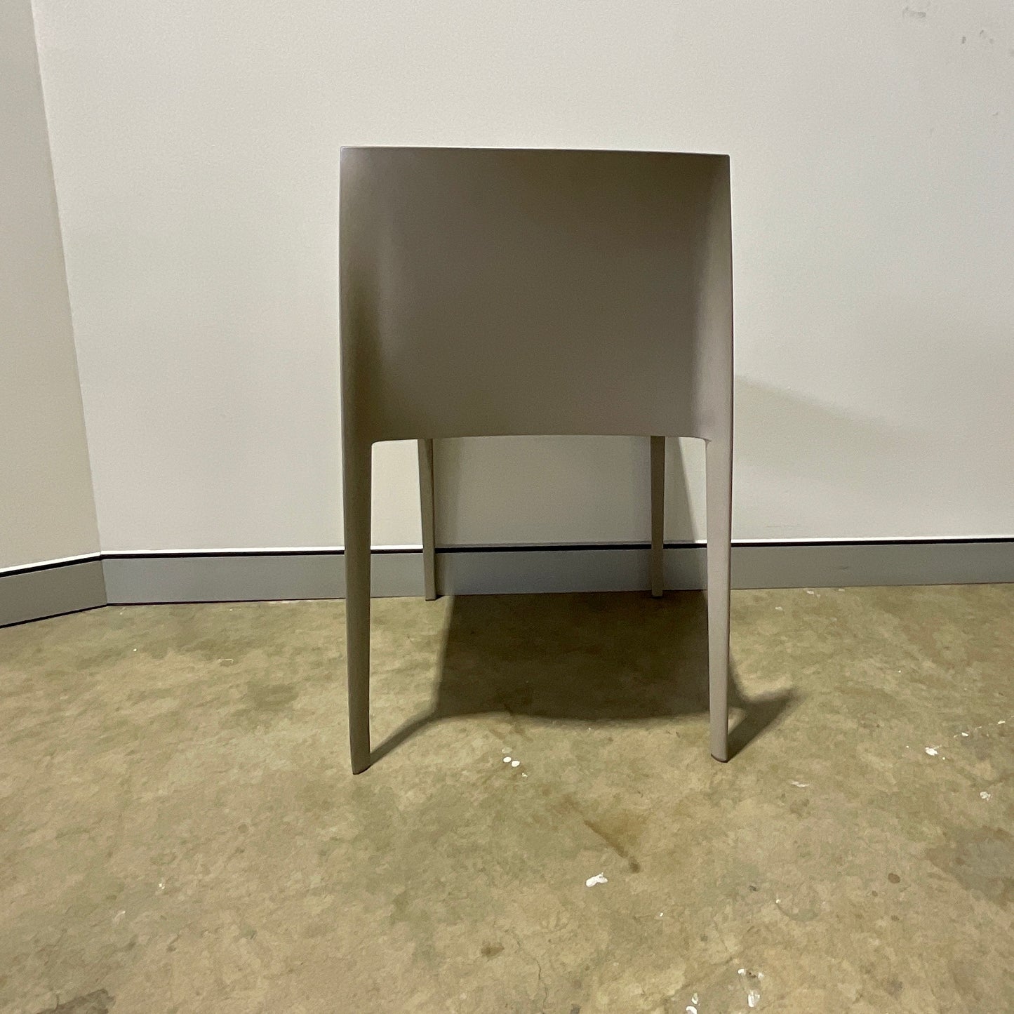 Technology reached its highest quality in the manufacturing of Sail, Sail Wood and Sail Leather. The result is a lightweight but structurally strong chair that is both comfortable and functional. Sail arises from the desire of Piergiorgio and Michele Cazzaniga to create a paradigmatic chair, a perfect combination of versatility, strength and elegance in a seemingly simple form The subtle curvature of the back, contrasts and complements its support from the seat and legs, as if there was a light breeze that has been gently waved. This essential quality of the design does not disappear in any of the versions, regardless of the material or coating used. The chairs we have on offer afre in taupe polypropylene. The chairs are stackable and can be used outdoors.