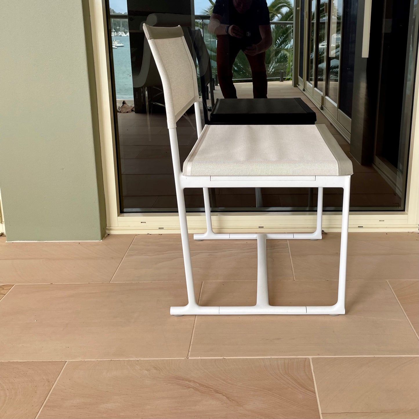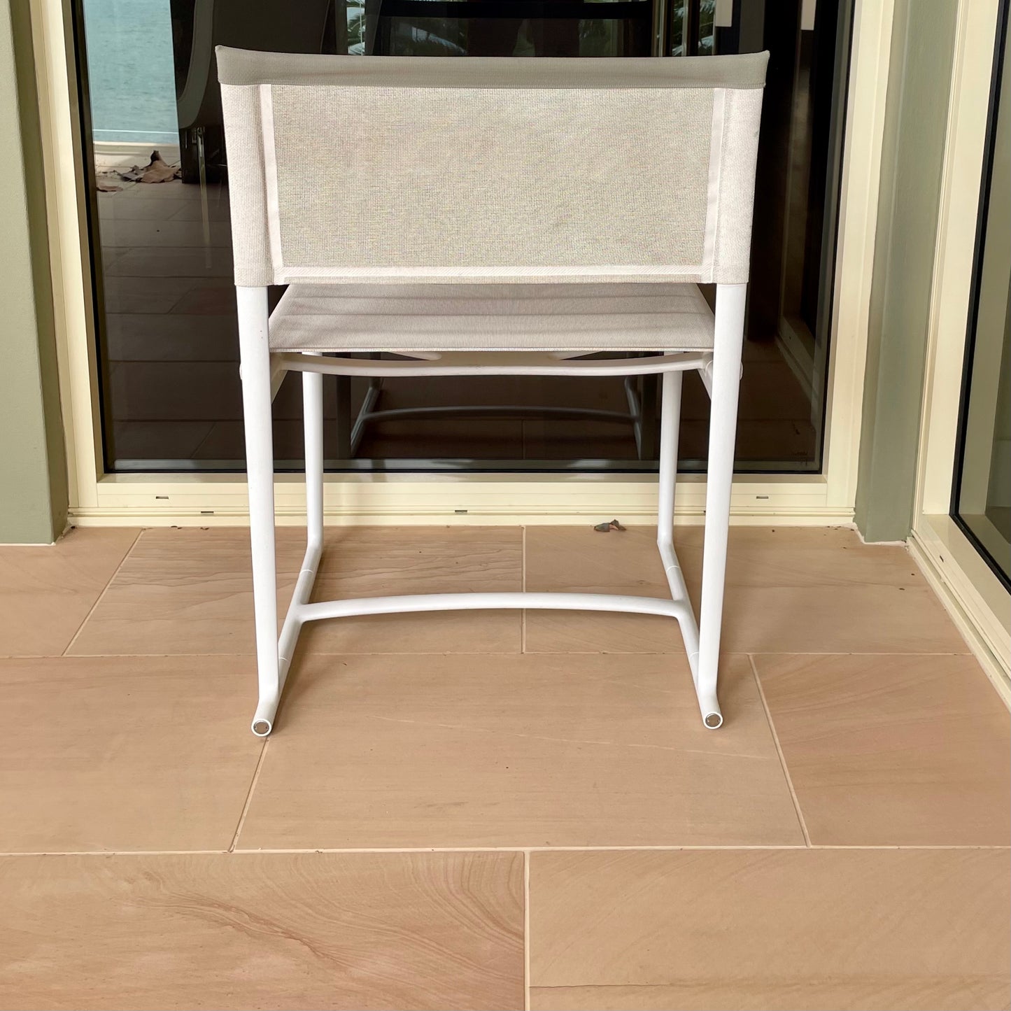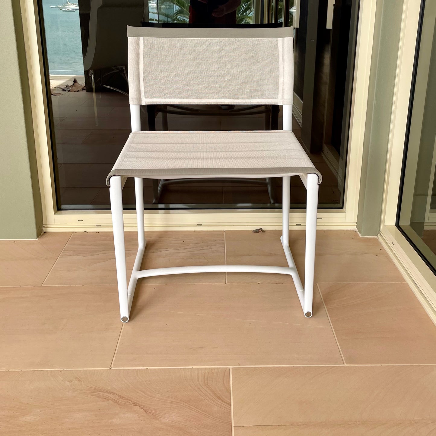 MIRTO OUTDOOR Chair upholstery STIGE 2445102 White Cat Super w/ White Painted Aluminium Frame 186V w/ Tortora Profile 280T (Std) 57.5Wx53.5Dx46SH/80.5Hcm