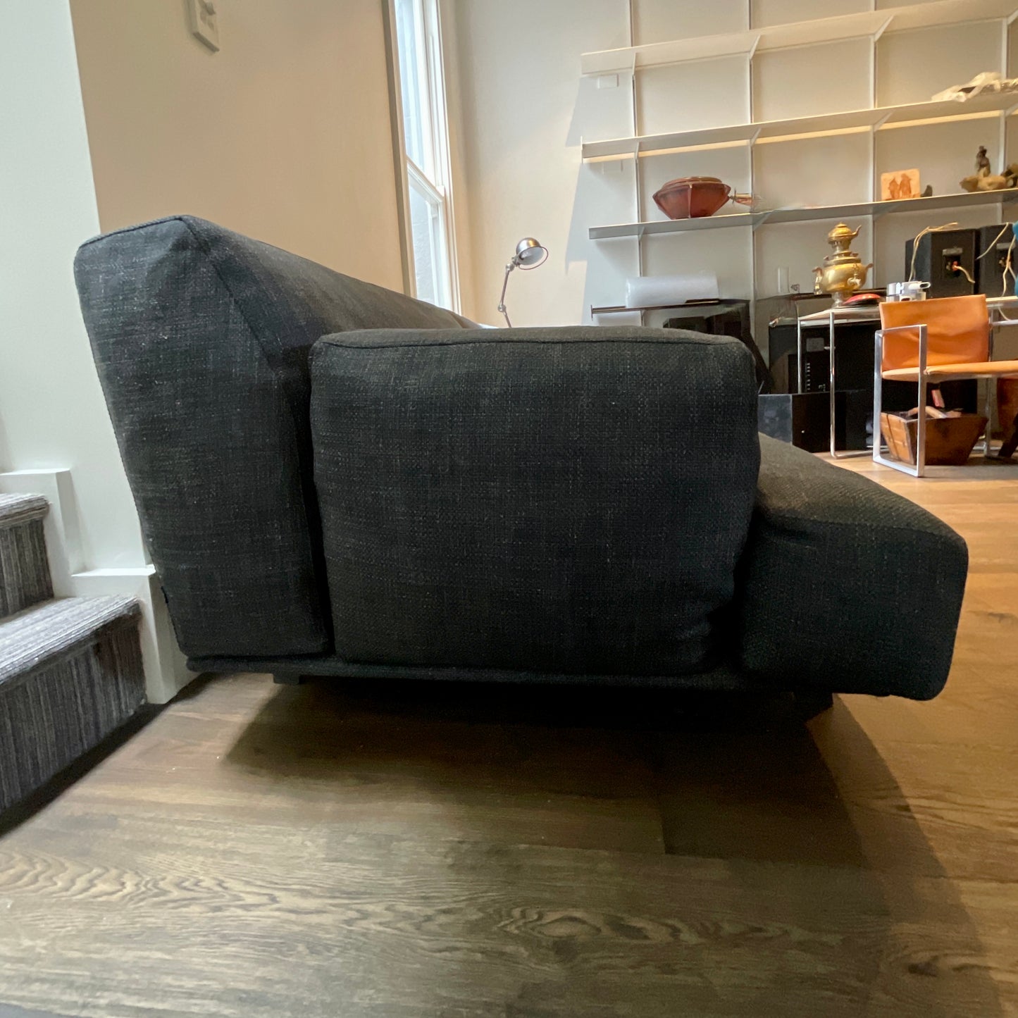 Tribeca is a creation of visual impact by Jean-Marie Massaud. The linear shapes of this sofa are enriched by the stylistic detail of the structure. This harmonious combination makes it the protagonist of the living area. The sofa we have on offer is in grey fabric Berlino 109 the feet are bronze painted metal.