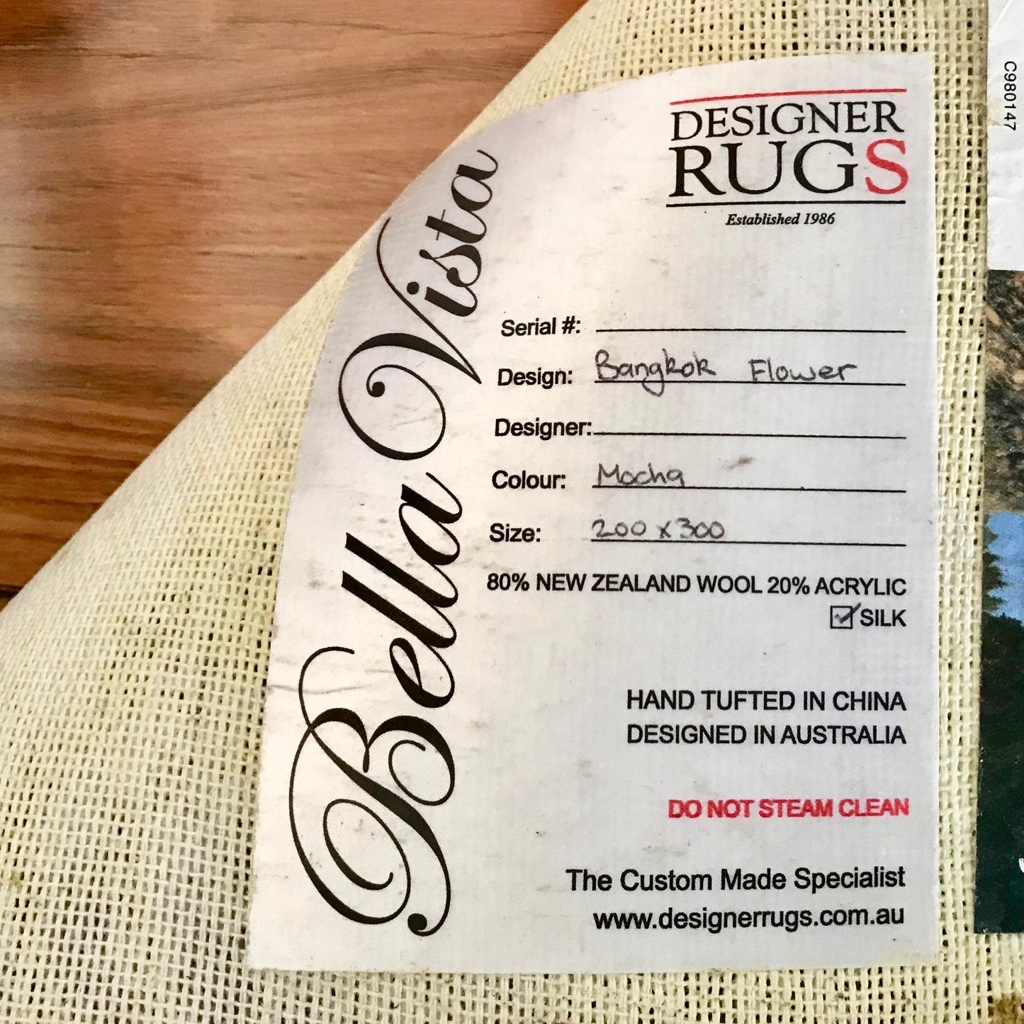 The Bangkok Flower Area Rug by Designer Rugs is hand tufted. The rug is made from 80% Wool 20% Acrylic / Silk. Colour Mocha.