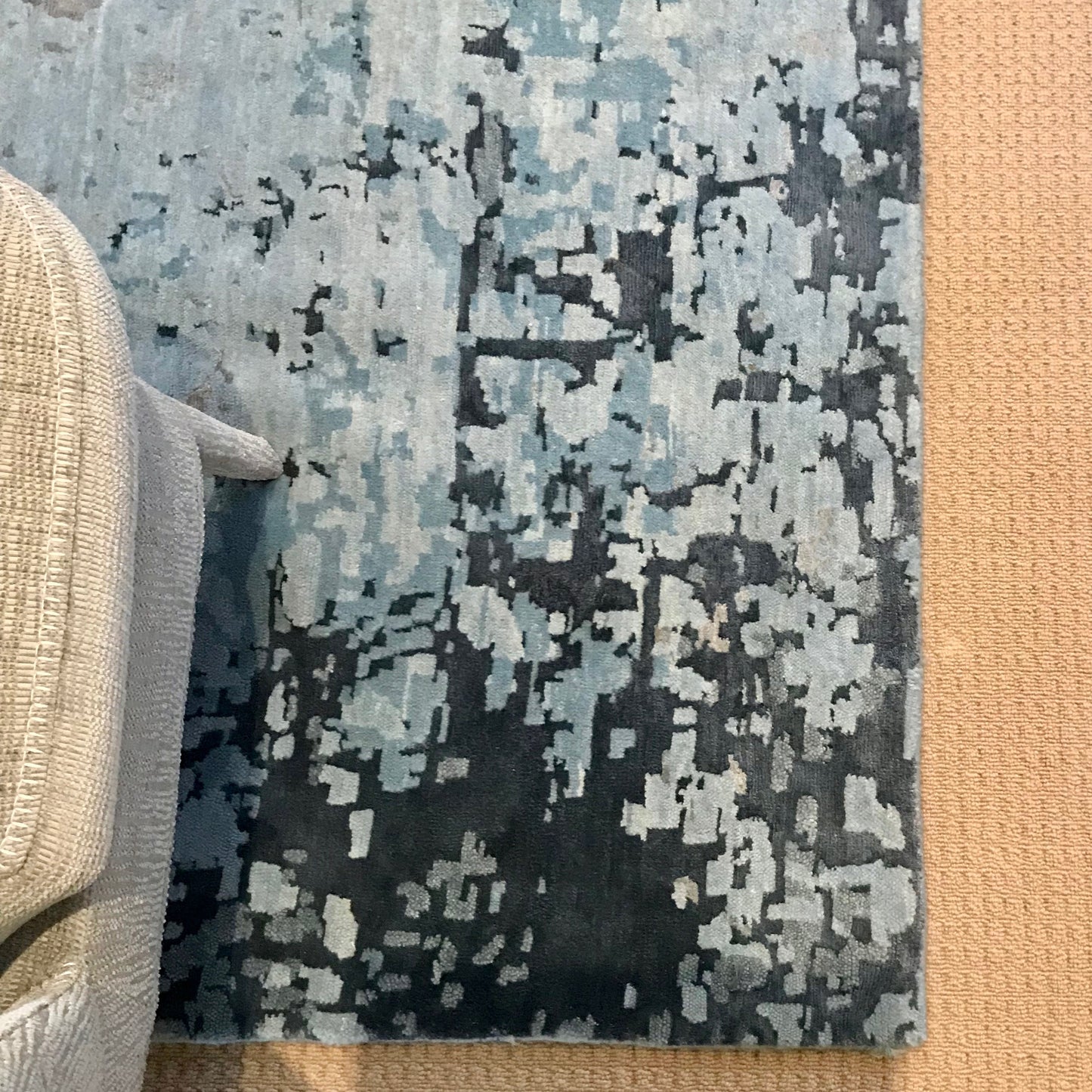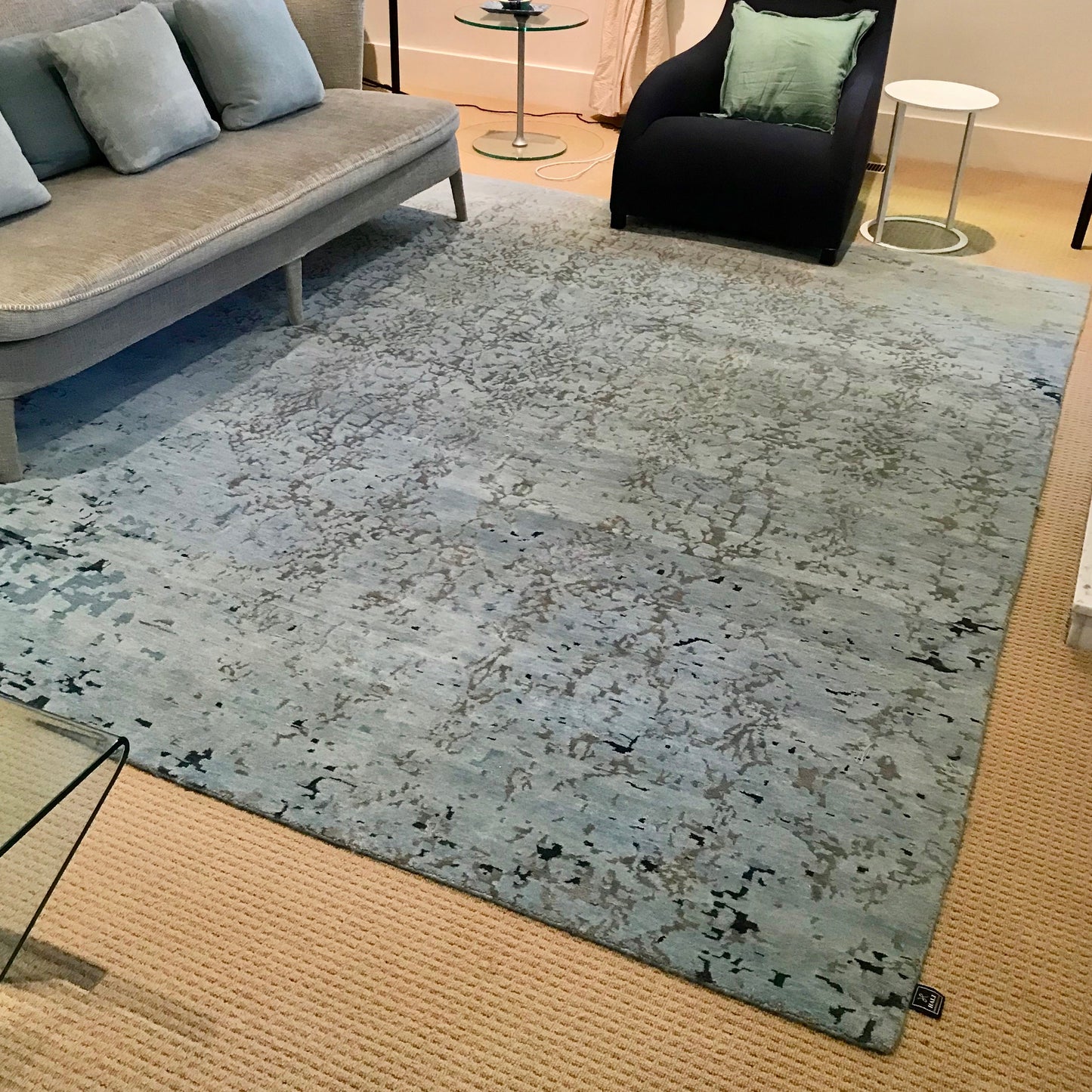 Our unique Everest rugs set a telling scene where the old style Persian rugs is being stripped away by modern shades and colours to create an artistic yet somewhat classic conception. These rugs are used mainly in modern settings with Danish or minimalist furniture so that the rug will stand out as the hero of the space. The rug we have on offer is in blue MD-808.