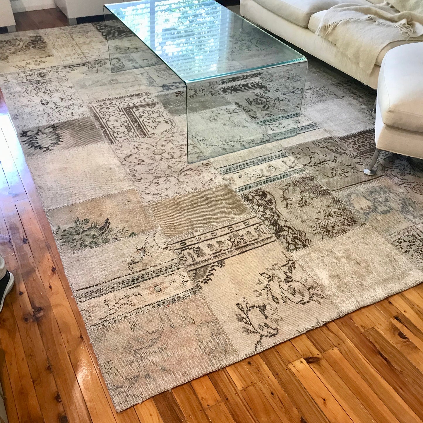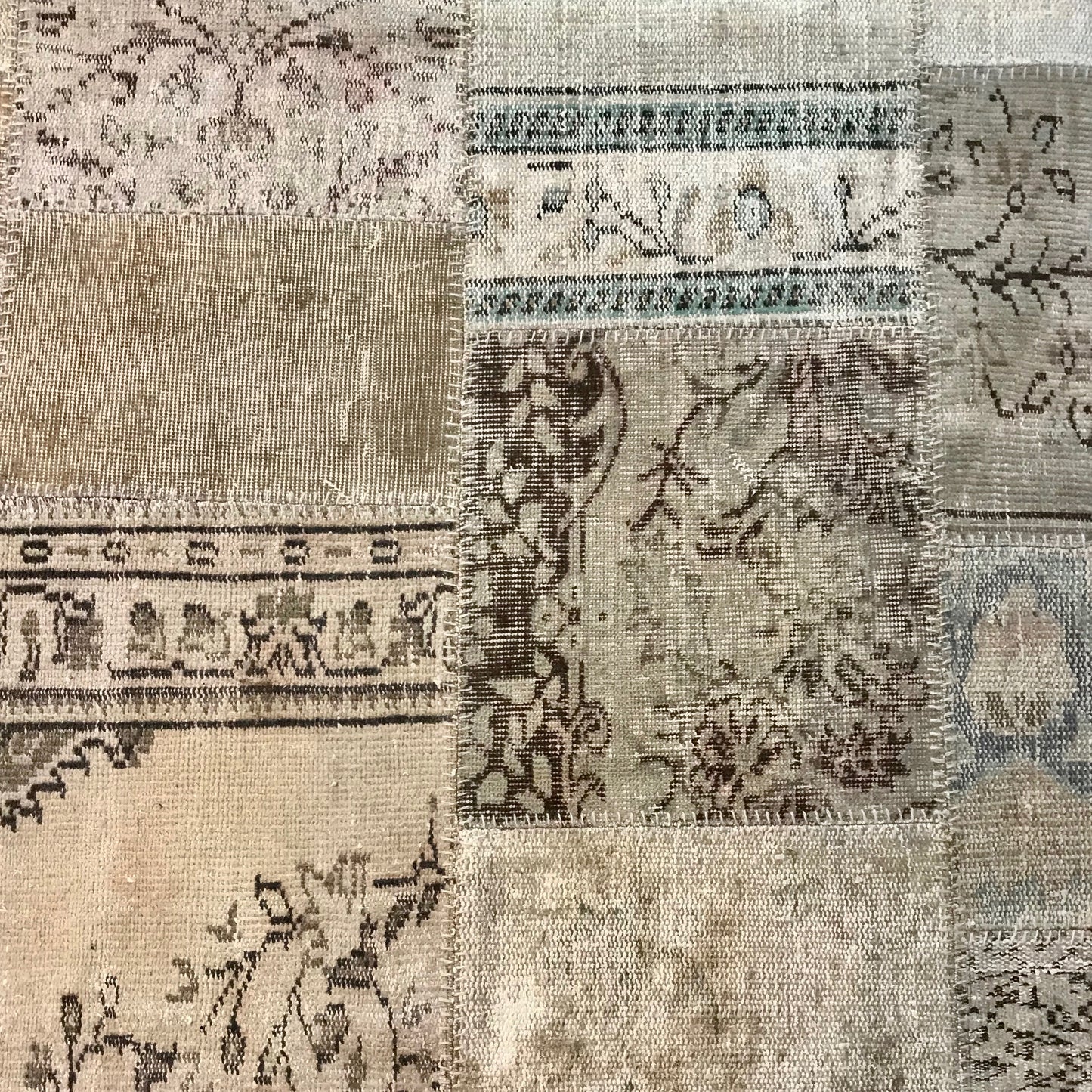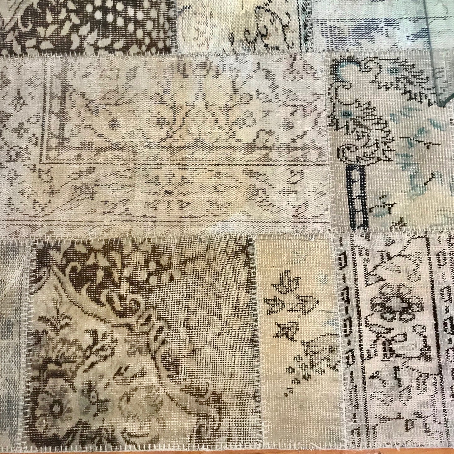 The area rug we have on offer is patchwork style from 100% wool. The area rug has a blanket stitch edge.