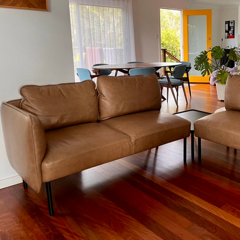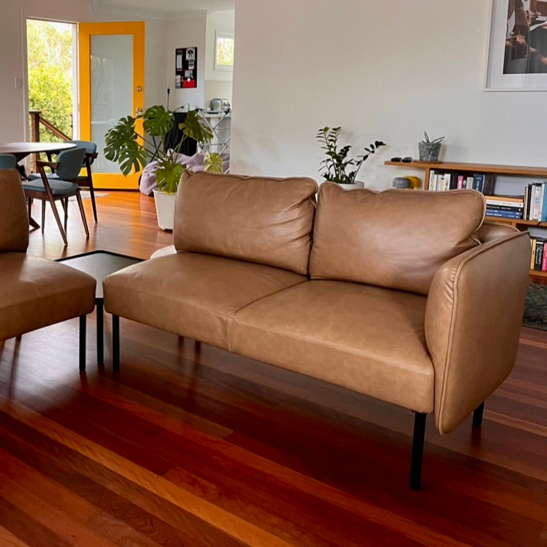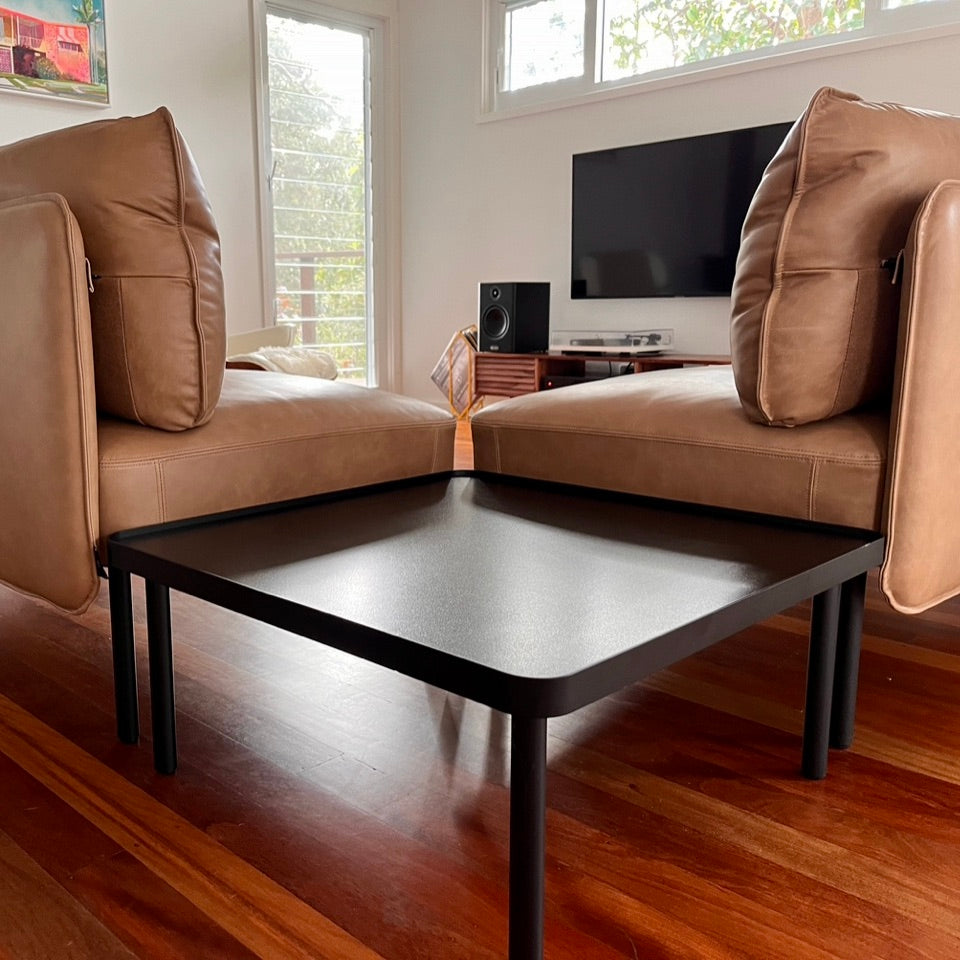 The sofa and table we have on offer is made up of two two seat sections and one side table. It could be configured in a four seat sofa, four seat sofa with centre table or corner sofa with corner table (as shown)