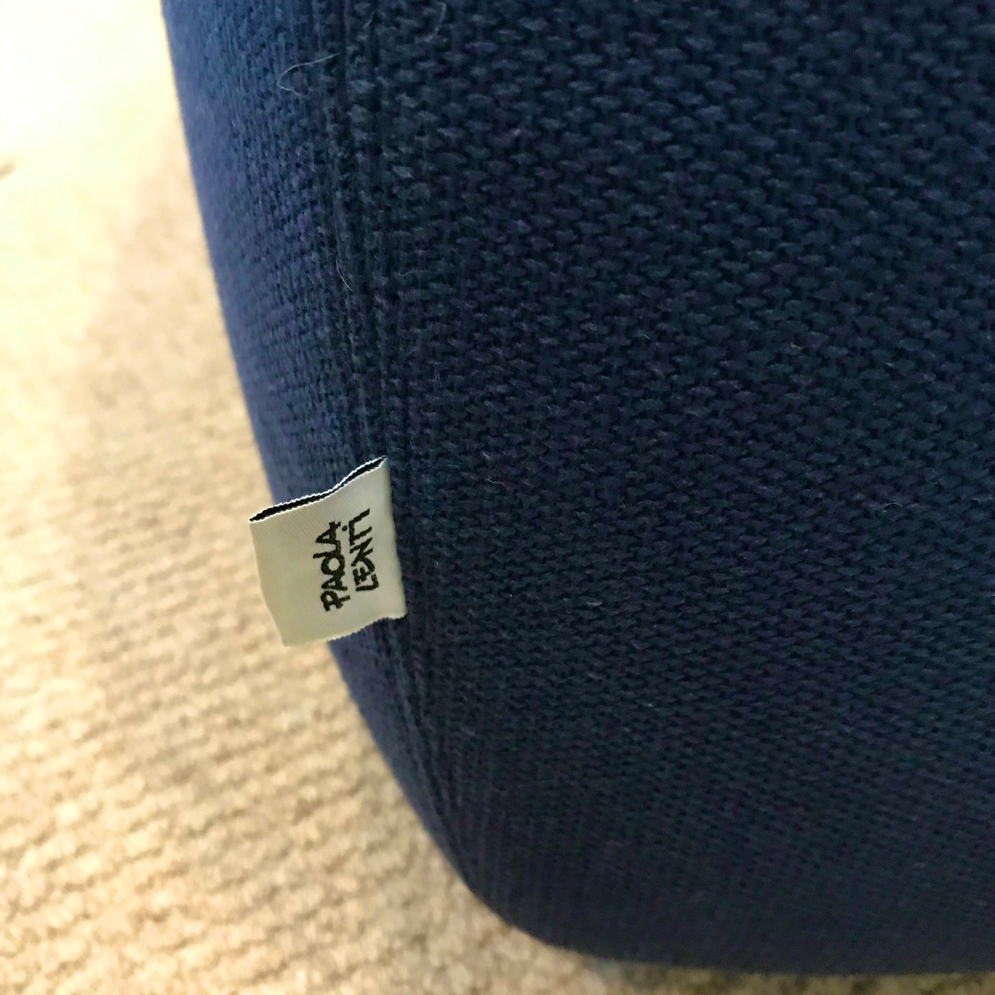 Modular sofa for indoor environments with removable cover, composed of central, corner and chaise lounge elements. The structure, made of polyurethane foam, is covered with a layer of washed and sterilised down. The sofa we have on offer is in three modules. The sofa is a deep blue colour.