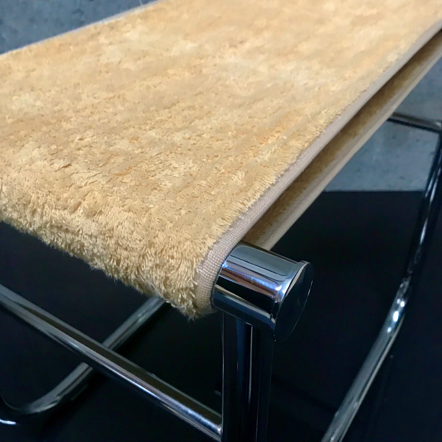 The design classic LC9 Bath Stool was designed in the year 1928 by Le Corbusier, Pierre Jeanneret and Charlotte Perriand for the label Cassina. The square LC9 Bath Stool is wonderfully suited for your exclusive bathroom and is a true design collectible! The LC9 Bath Stool by Cassina convinces with the highest quality and its classic and timelessly beautiful design. The frame of the Cassina LC9 Stool is made of chrome-plated stainless steel. The seat of the Bath Stool is covered with a soft terrycloth fabric in yellow and is removable.