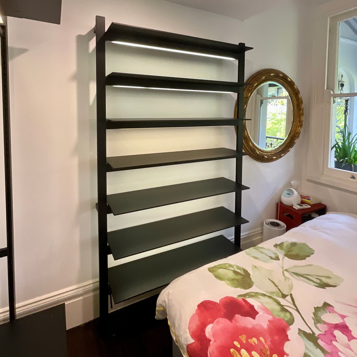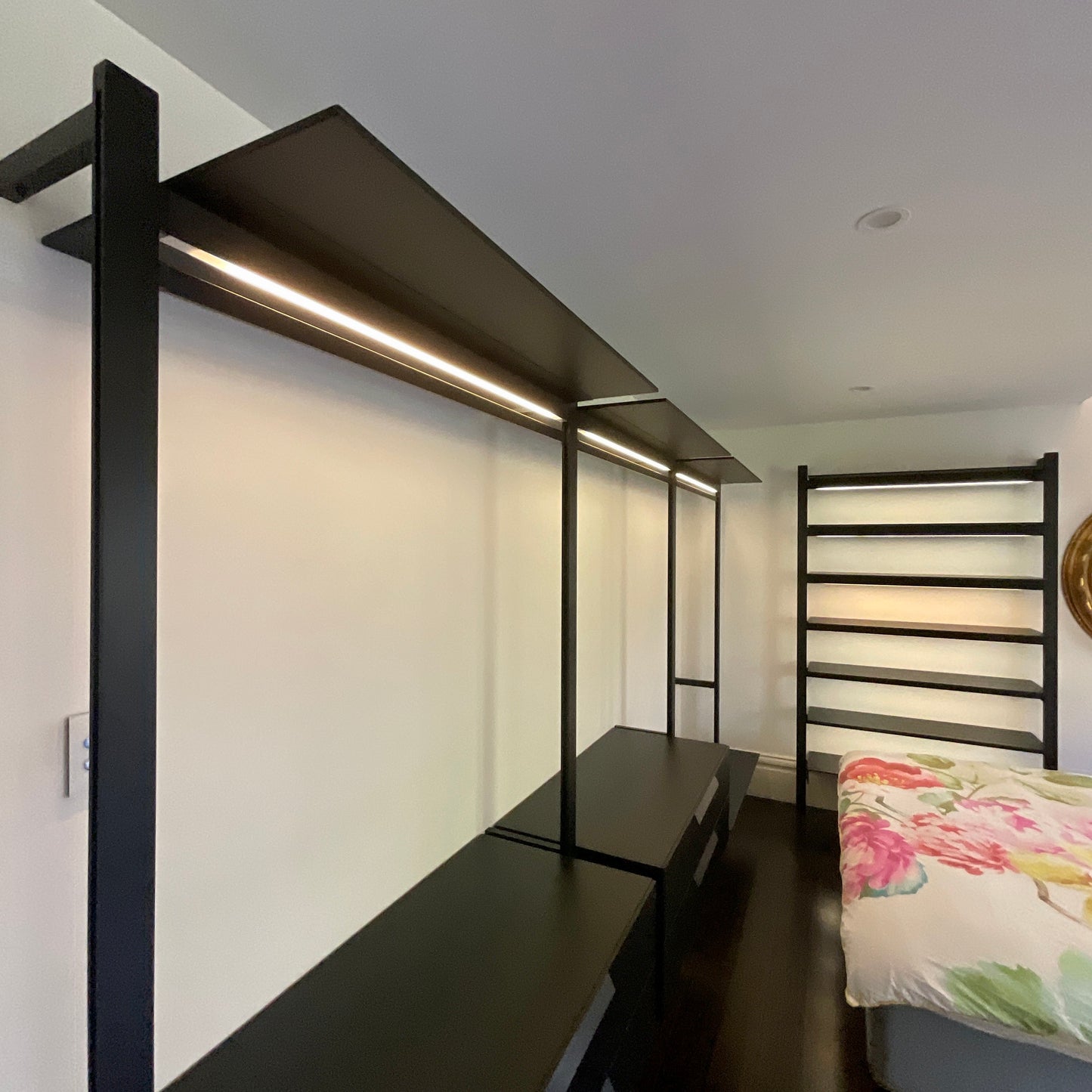 6 x 1200mm wide flat shelves in matt lacquer with LED