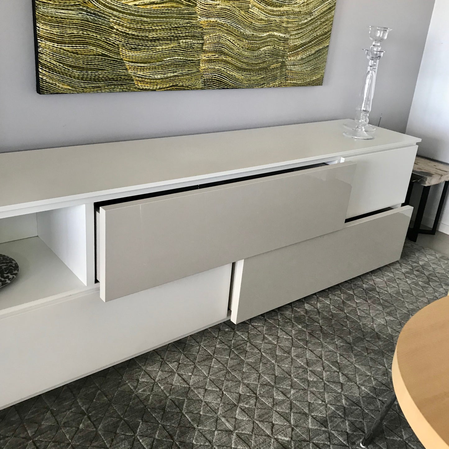 The sideboard we have on offer by Jesse furniture has four pullout drawers. The unit is finished in matt white and gloss tortora lacquer.