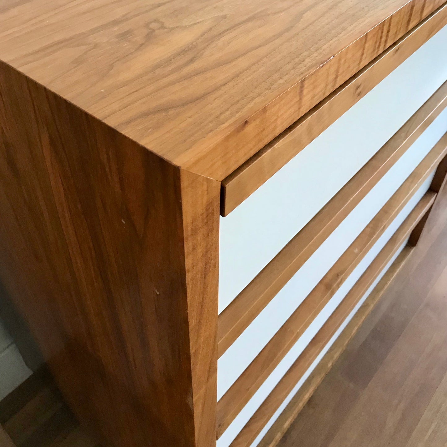 The chest of drawers we have on offer were purchased through Spence & Lyda. The chest has four drawers with a white 2 pack finish. The frame is solid timber.