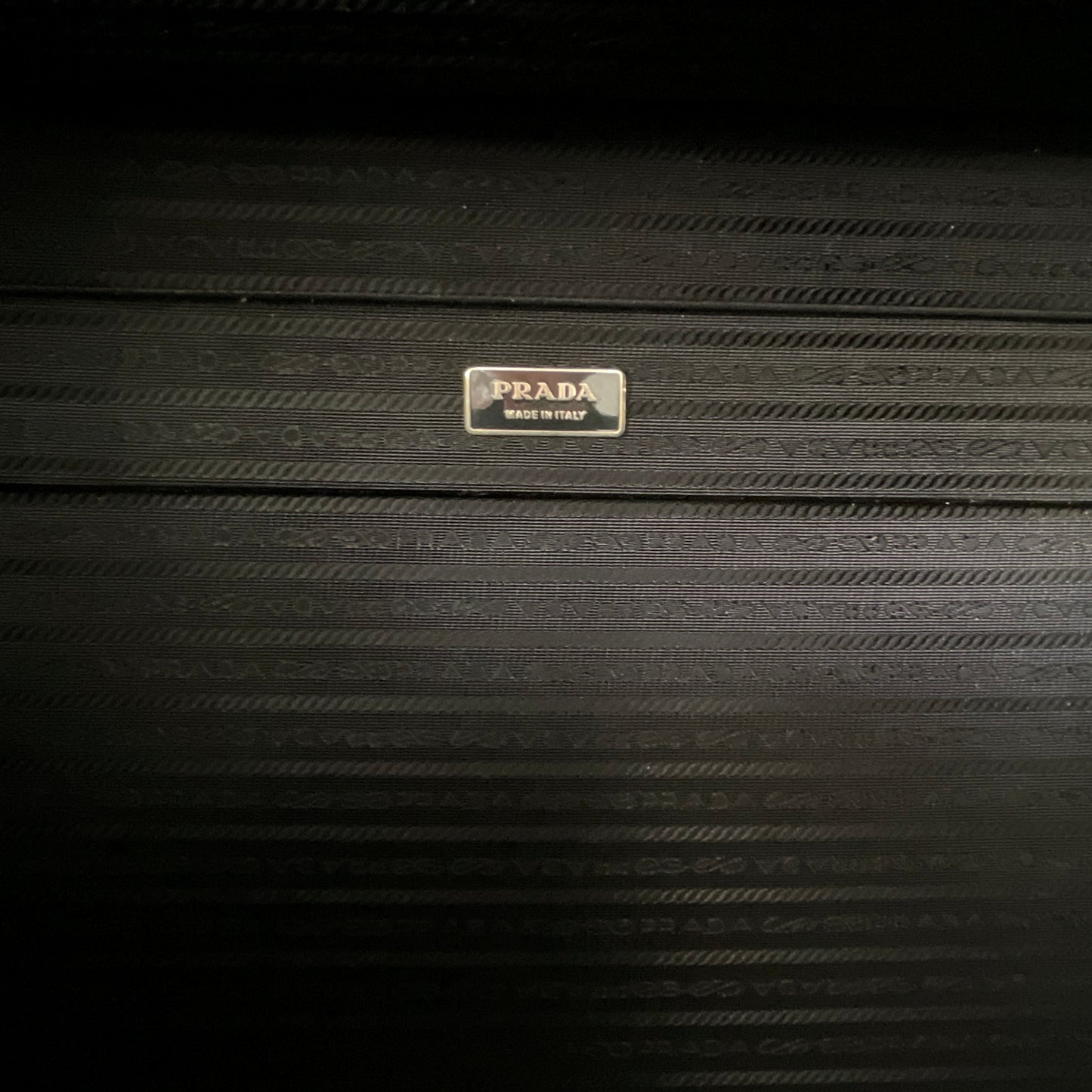 Black leather wardrobe trunk by Prada. This item would be great at the end of a bed or as a coffee table. The drawers are missing which is reflected in the price.