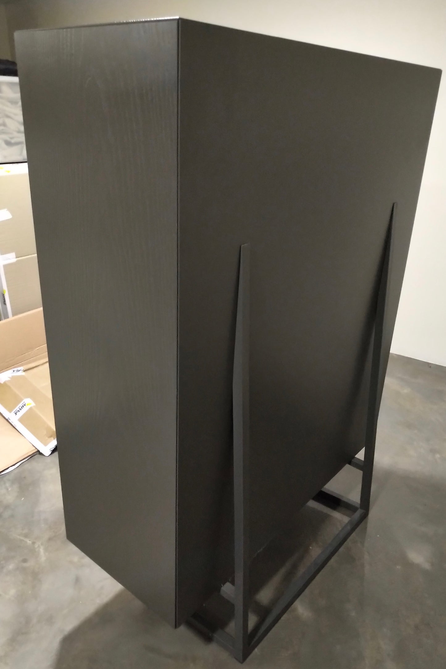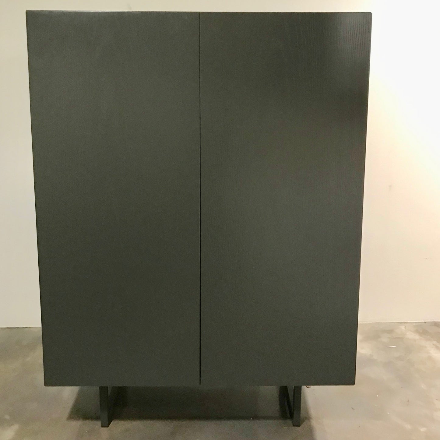 QB (Quanto Basta) designed by Saverio Incombenti for Mogg is a cabinet. Cabinet in ash lacquered opaque pore opened with shutters and 2 internal shelves. The bottom and the shelves are horizontal. Disposable in all the colours as samples. Base in painted metal of the same colour of cabinet. The cabinet we have on offer is in shadow grey.