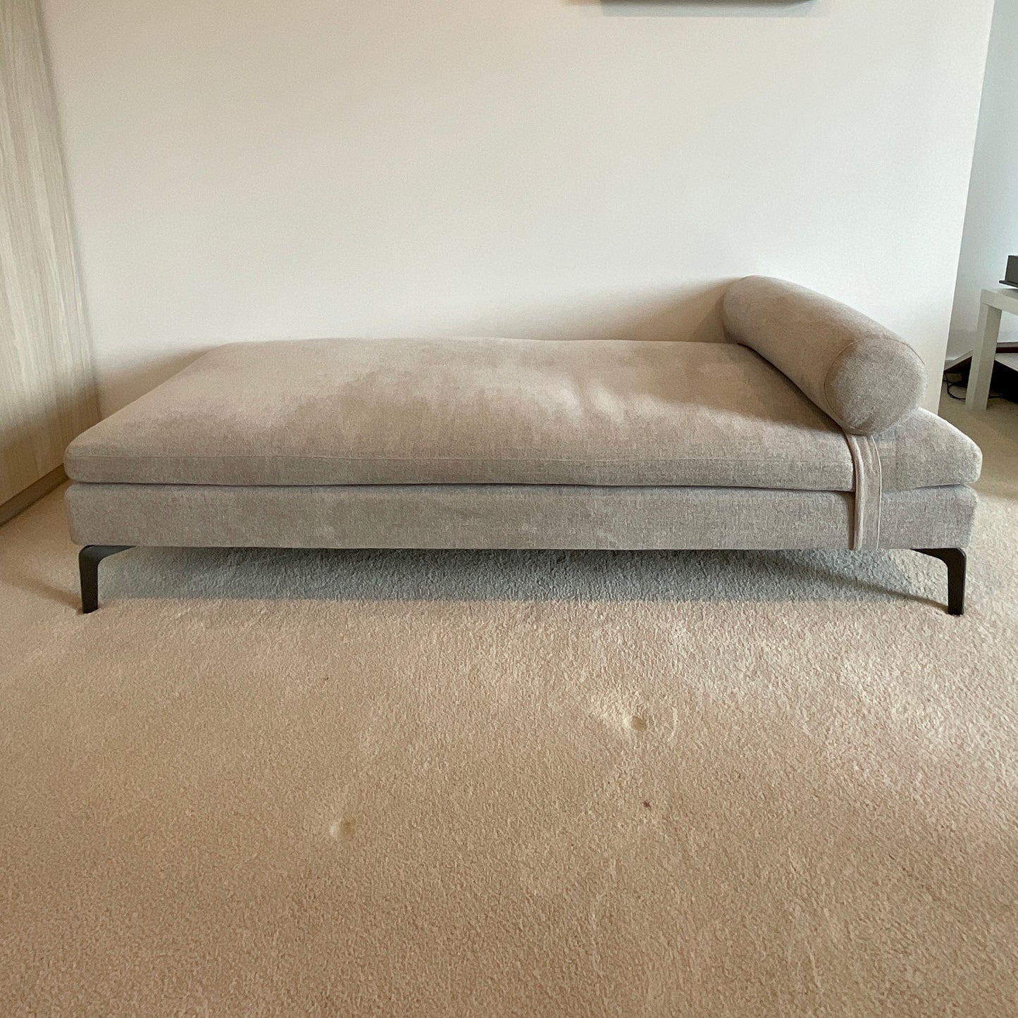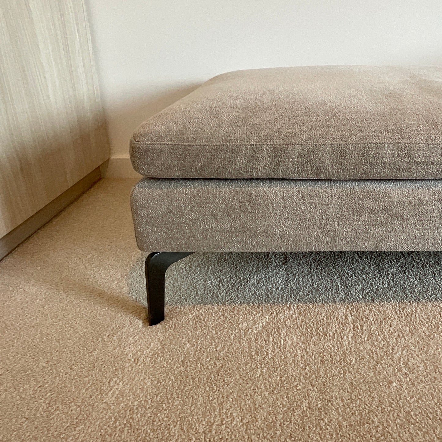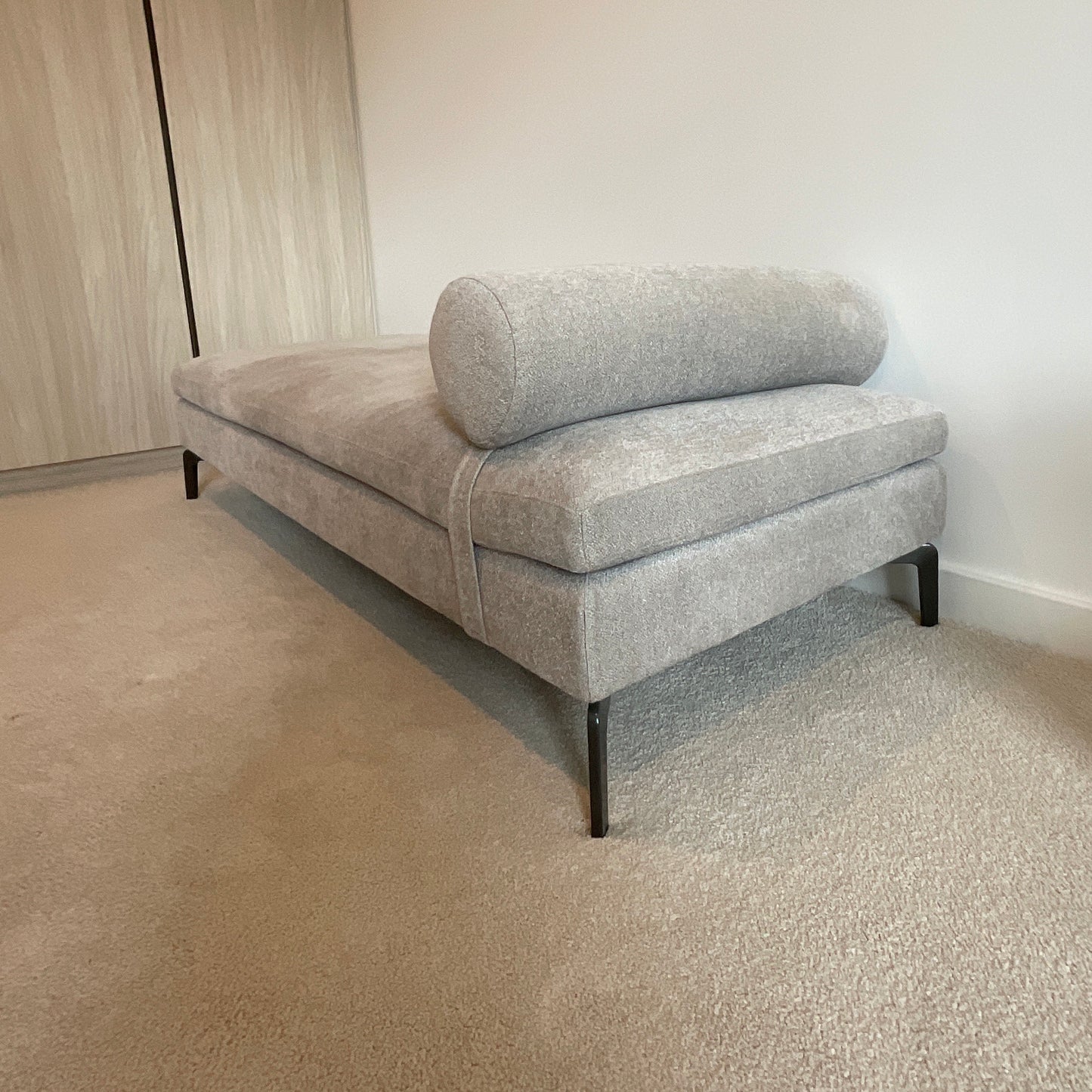 The Alison sofa comprises beautifully tapered arms, elegant chrome legs and linear styling to bring you modern yet timeless piece. The bench we have on offer is upholstered in a grey fabric with black powdercoated leg.