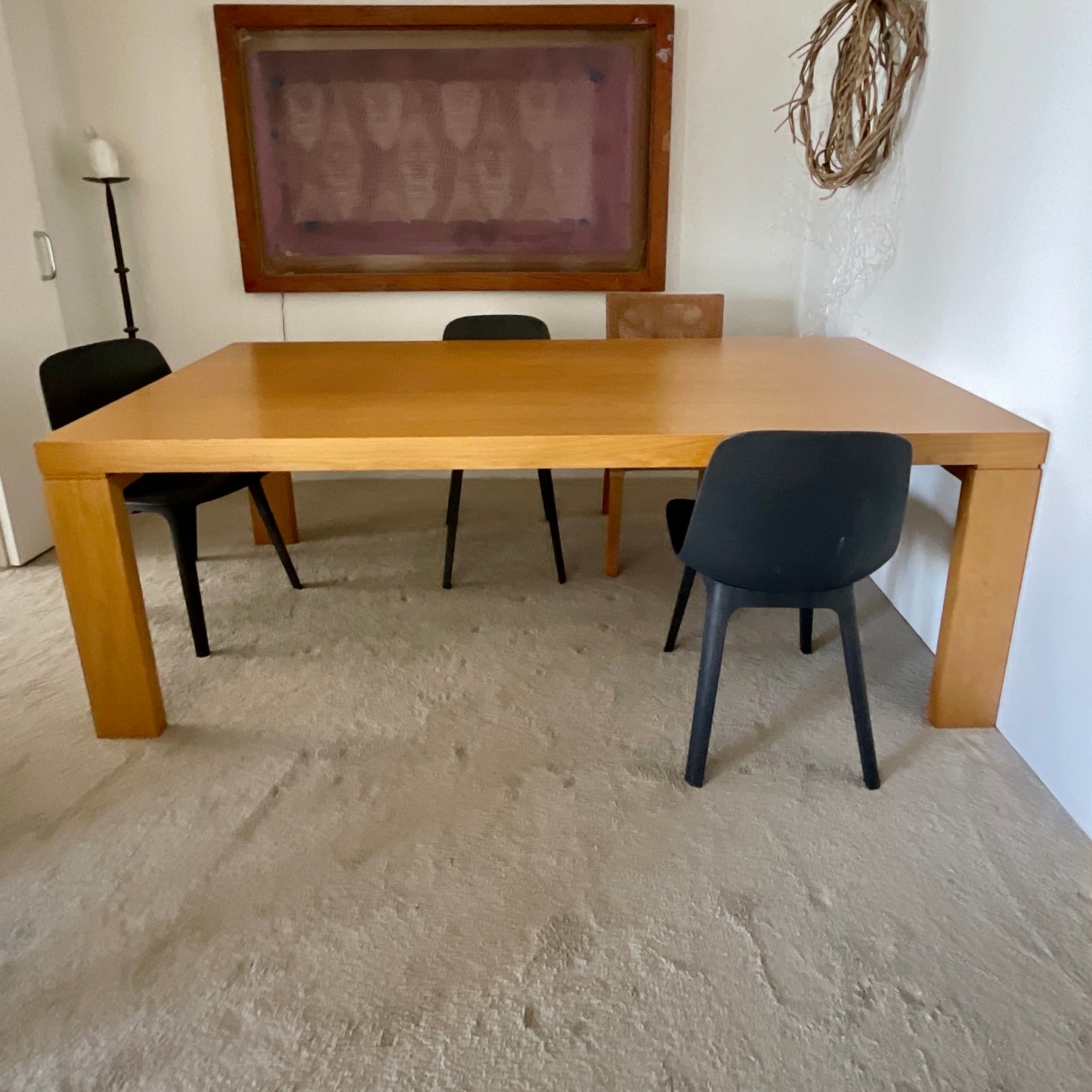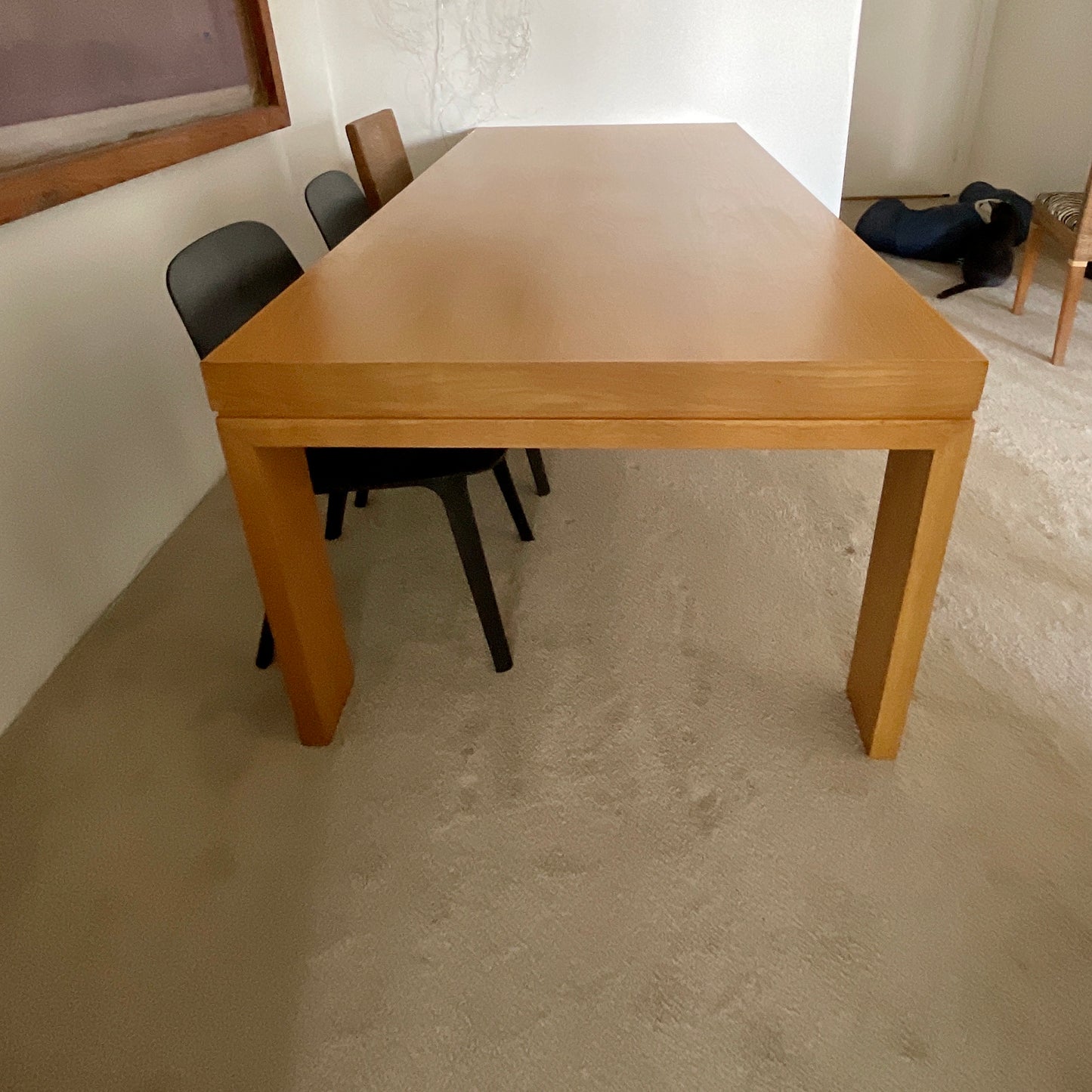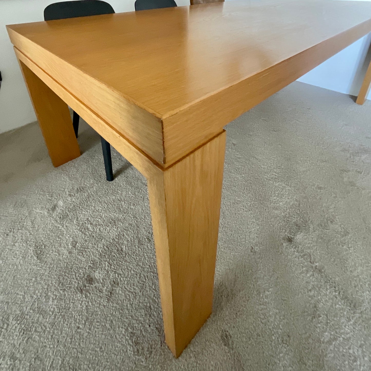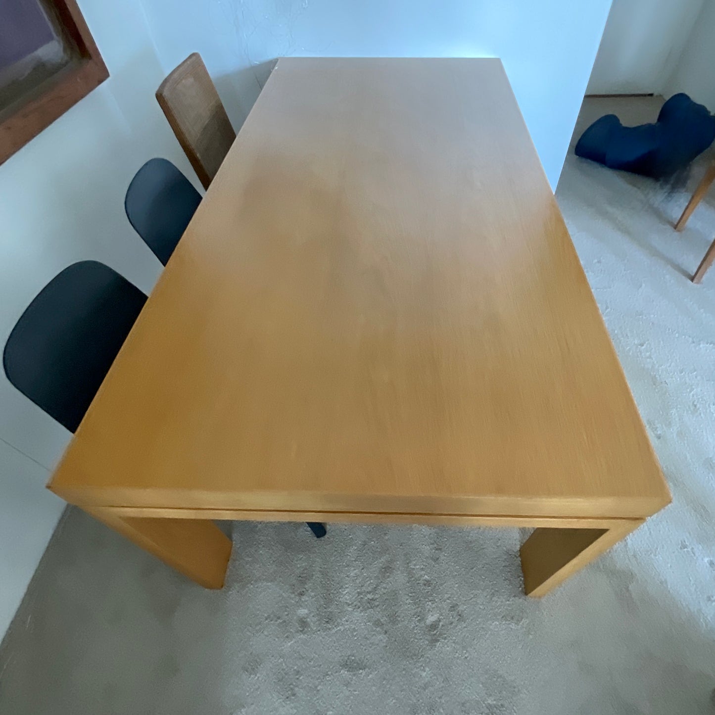 The April Dining Table with a solid Oak rectangle table top and shadow line join to cross bar with mitre joined legs.