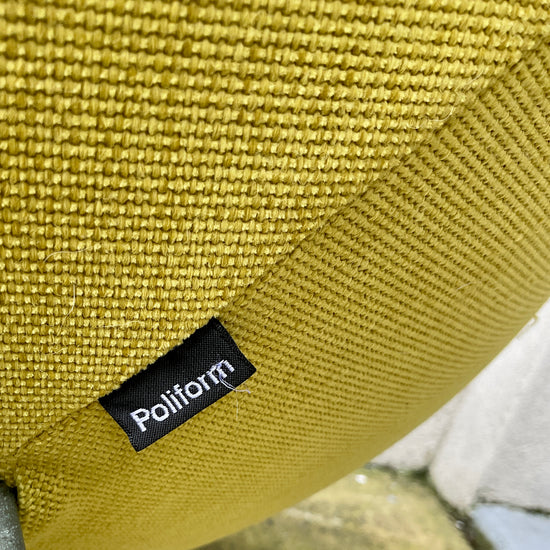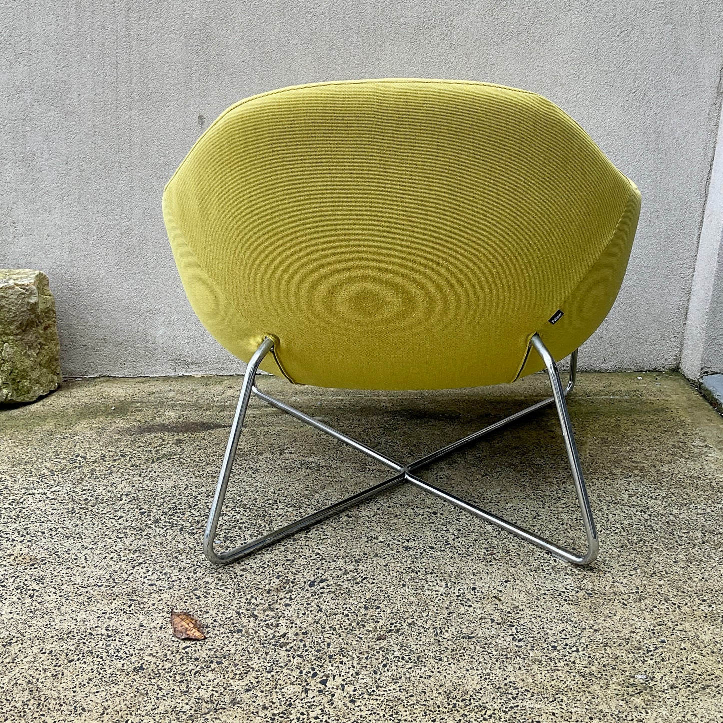 An armchair, designed by Carlo Colombo, that offers relaxation according to the most recent aesthetics. The design couples big dimensions and smooth forms, thanks to the metal structure. The chair we have on offer is in a yellow/green fabric.
