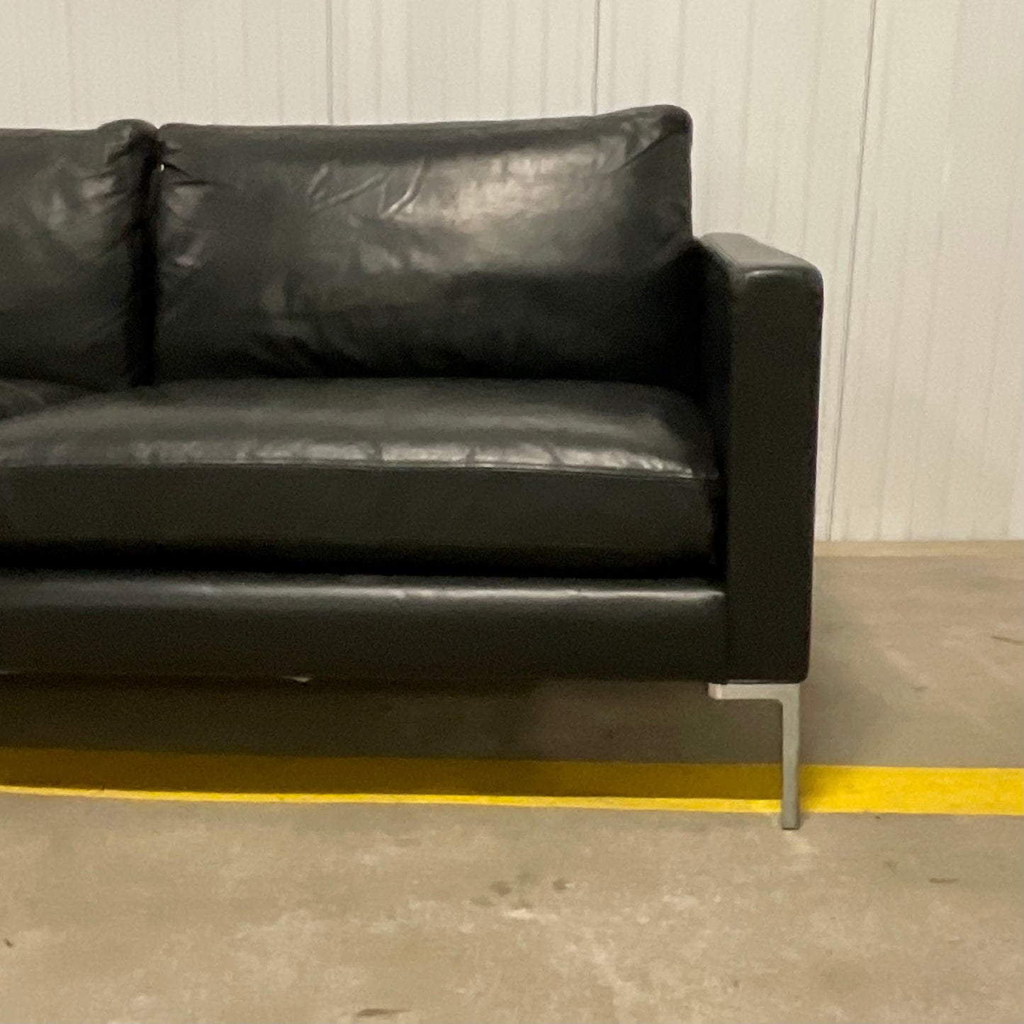 The Banc sofa by Fanuli is like the 'Little Black Dress' of sofas. The sofa has a hardwood frame with steel springing, enduro foam core & feather wrap. The sofa we have on offer is in Pelle Uno Black Ebony.