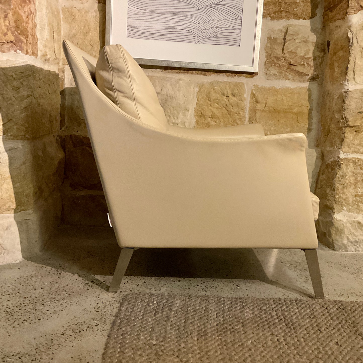 BOSS is the armchair par excellence. Impressive, structural, with soft down cushions for the seat and back, wrapped in a rigid chassis, leaving the armrests as light lateral presences. The metal foot on a swivel base makes BOSS into a managerial armchair, when used in an office. The metal base with four legs is more suitable for use in the home. The outstanding comfort encourages reading, in a special quiet corner of the living room, or placed alongside a linear sofa. Also available in the compact, elegant settee version, to discreetly furnish a waiting area or become a charming companion for a larger sofa.
