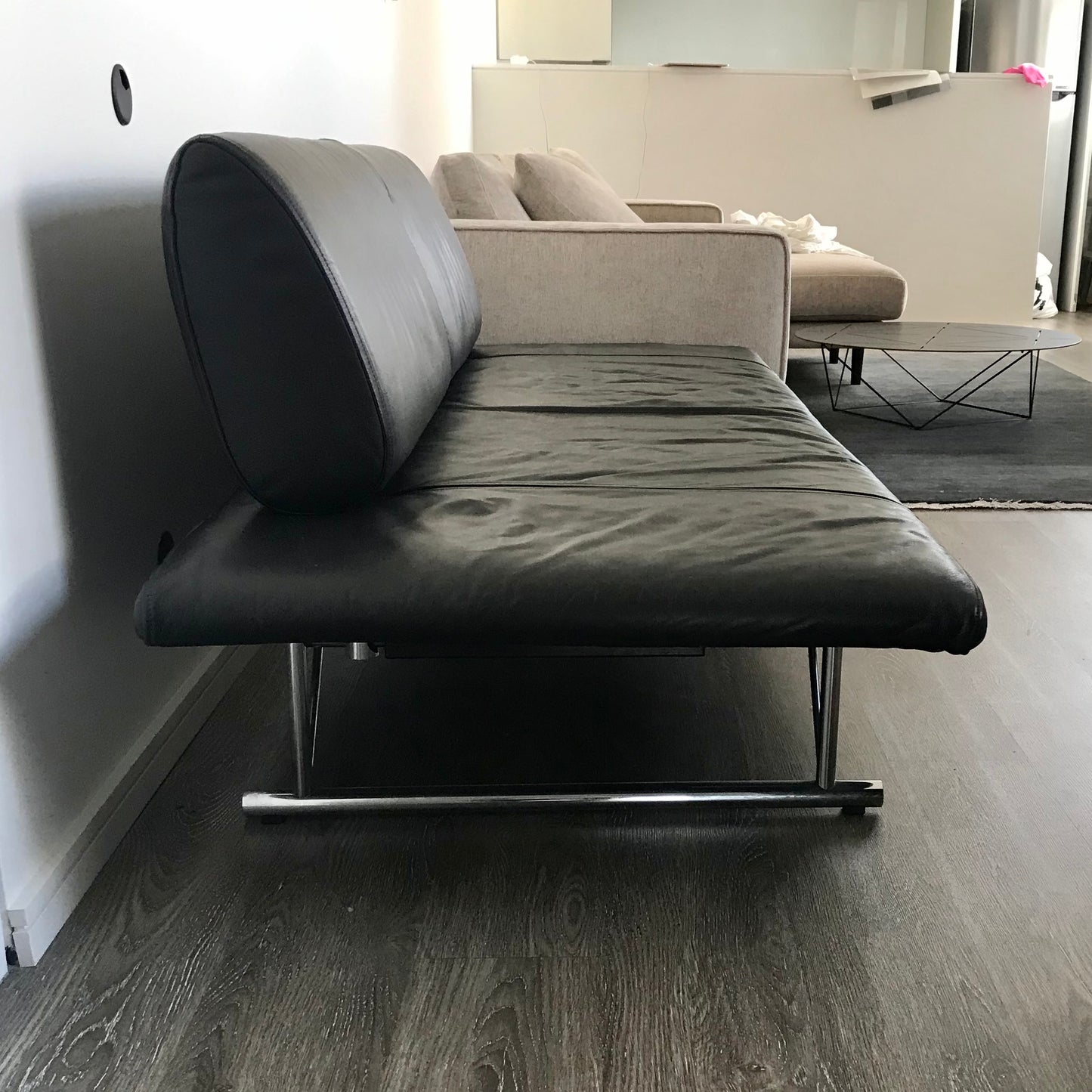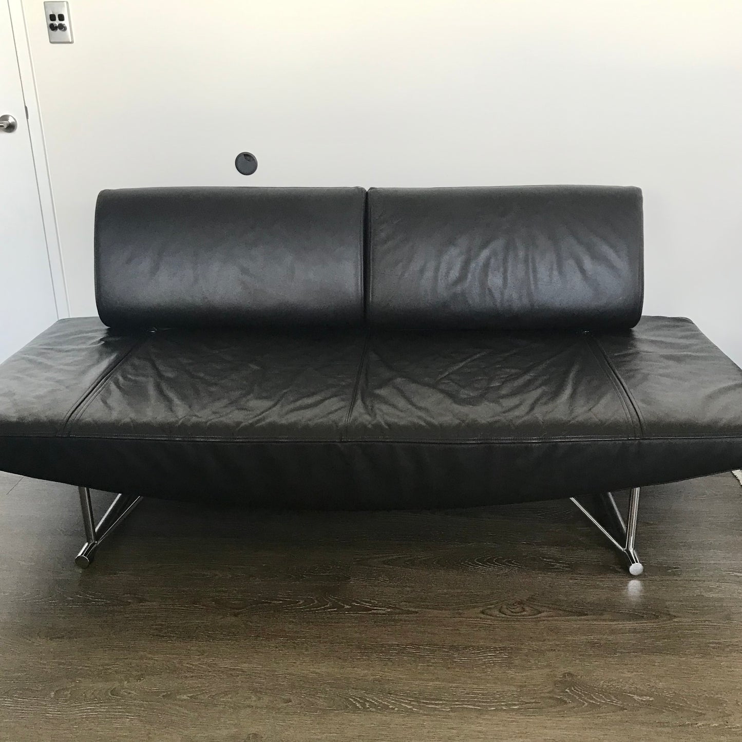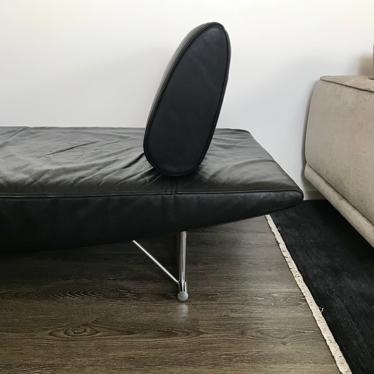 The Cor Circum is covered with black leather and stands on a aluminum frame. The seat depth can be increased and the backrest can be adjusted.