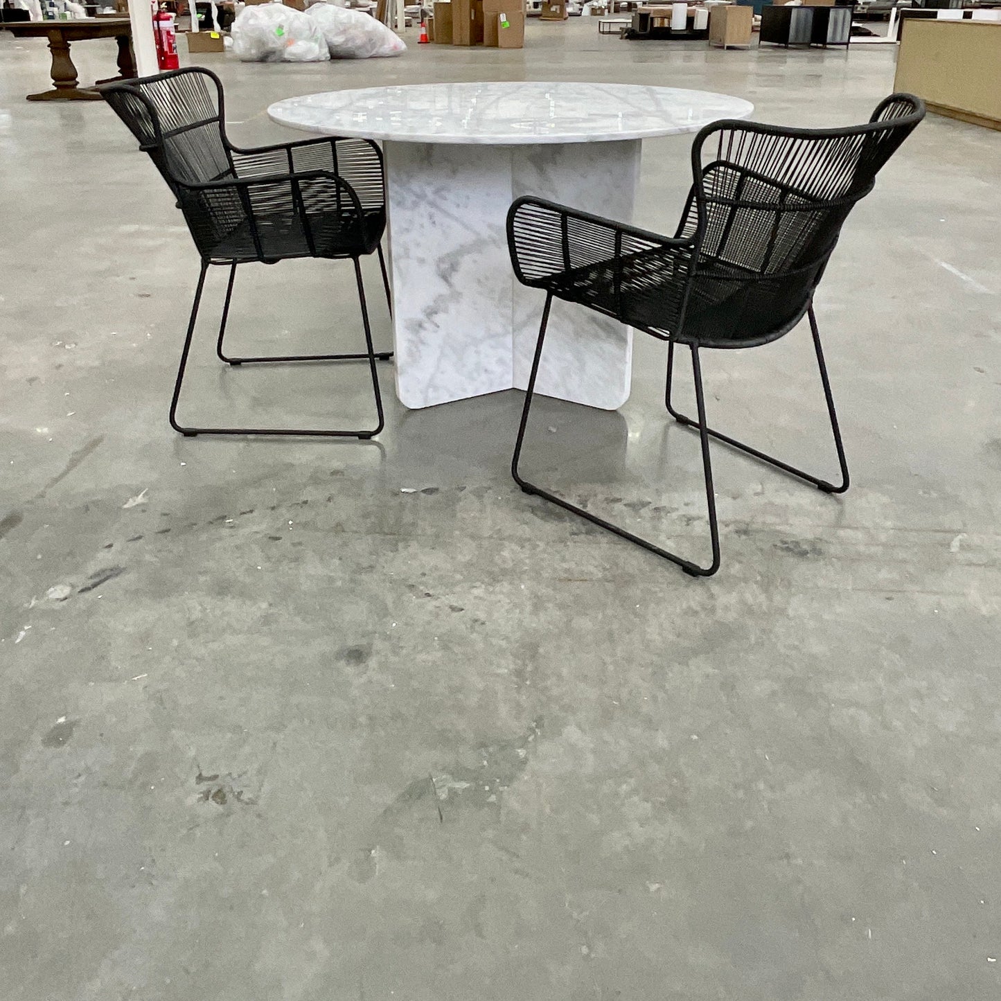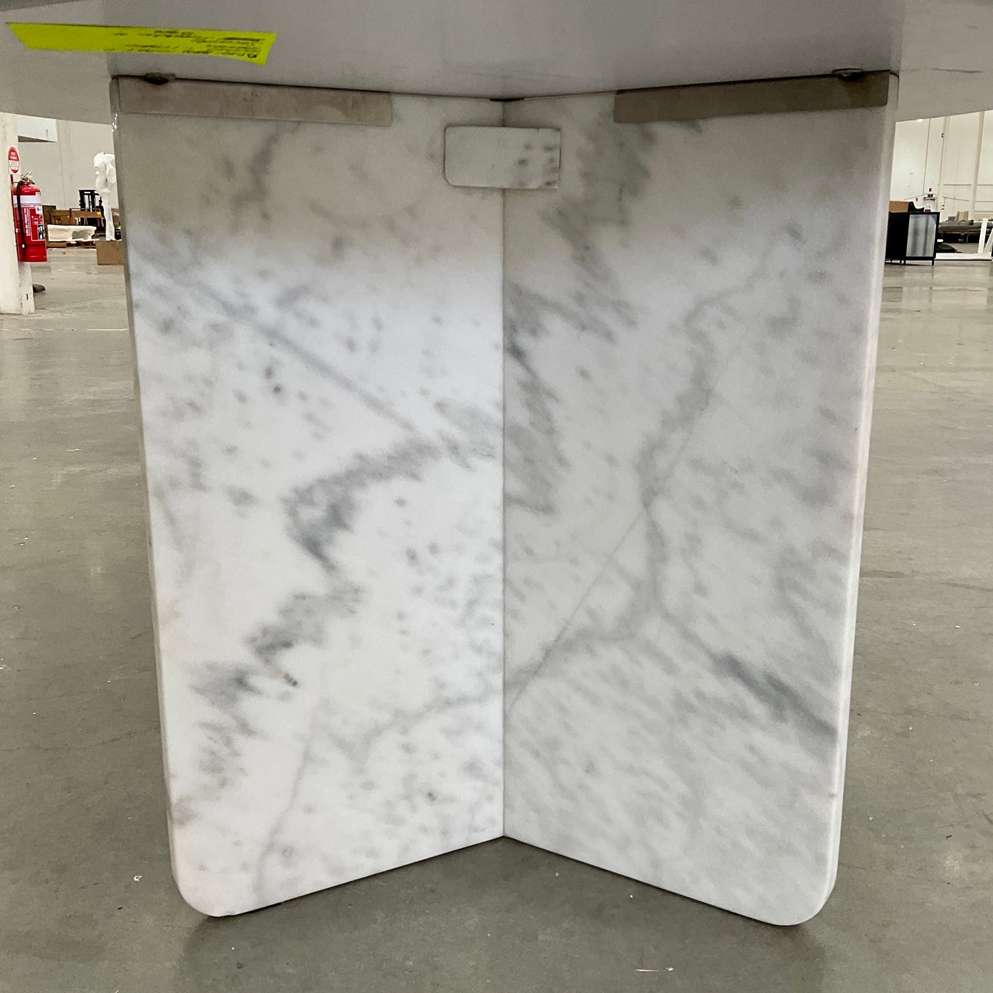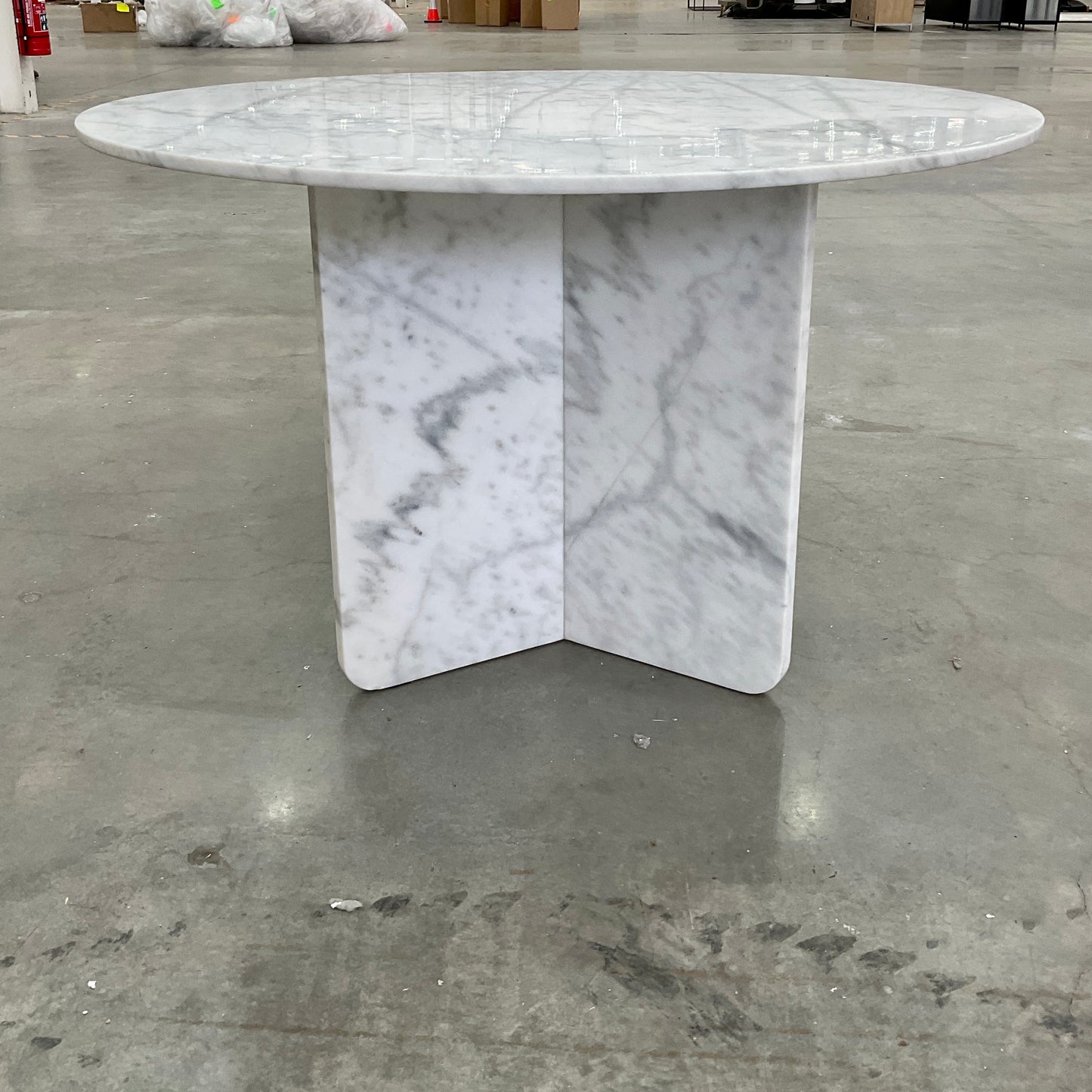 Crafted from honed marble set atop a tri base, the Como Marble Dining Table offers a sophisticated spot for daily dining or entertaining. Ideal for the modern eat-in kitchen or the petite dining room. This handsome round dining table has an intriguing pedestal base and looks great paired with fabric or leather-upholstered dining chairs.