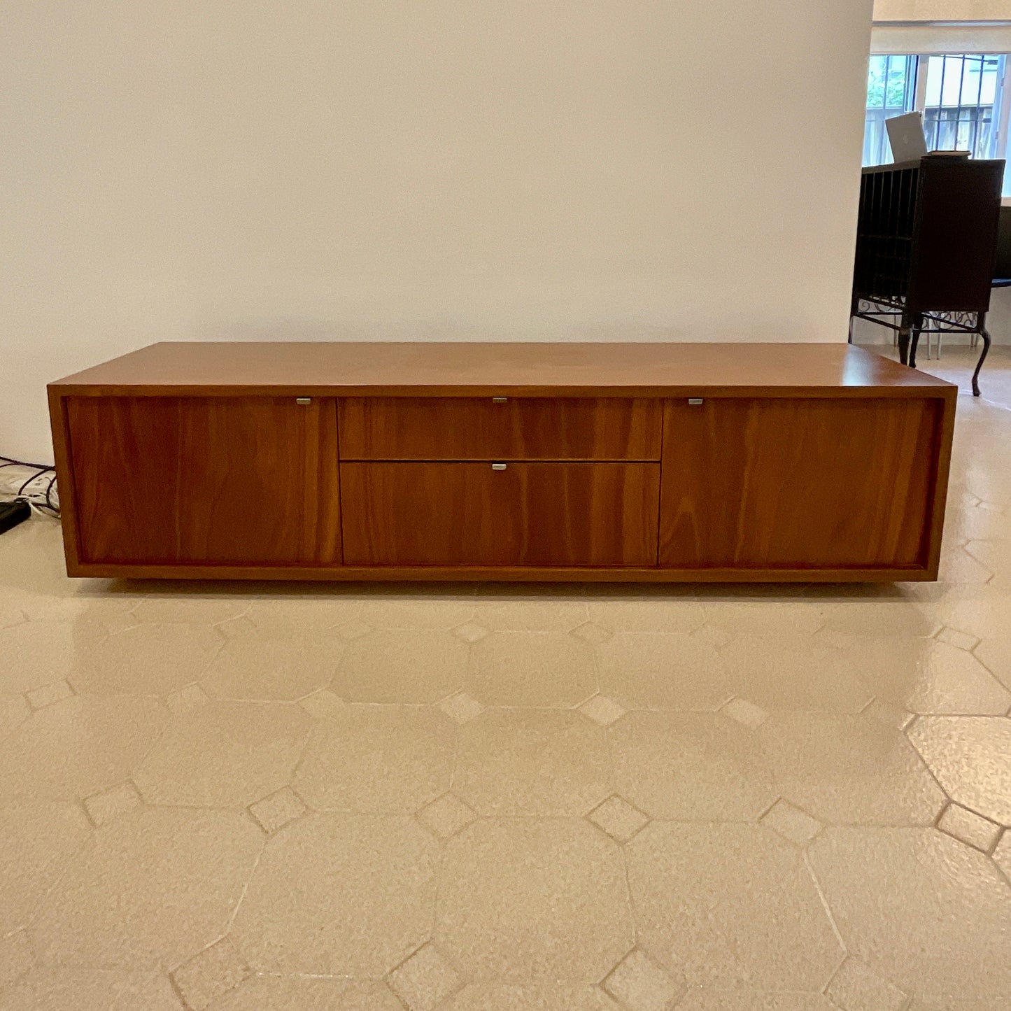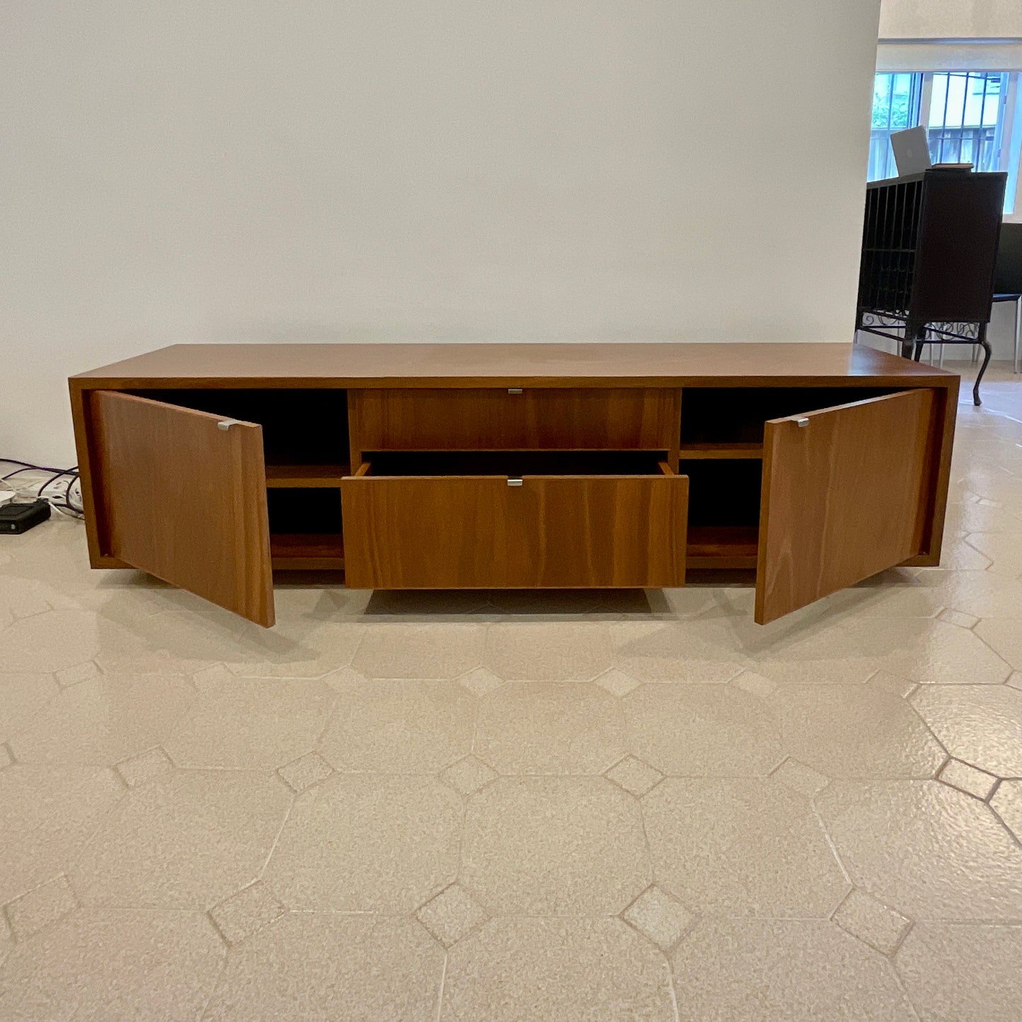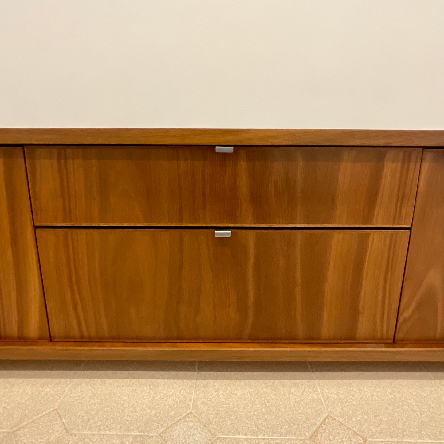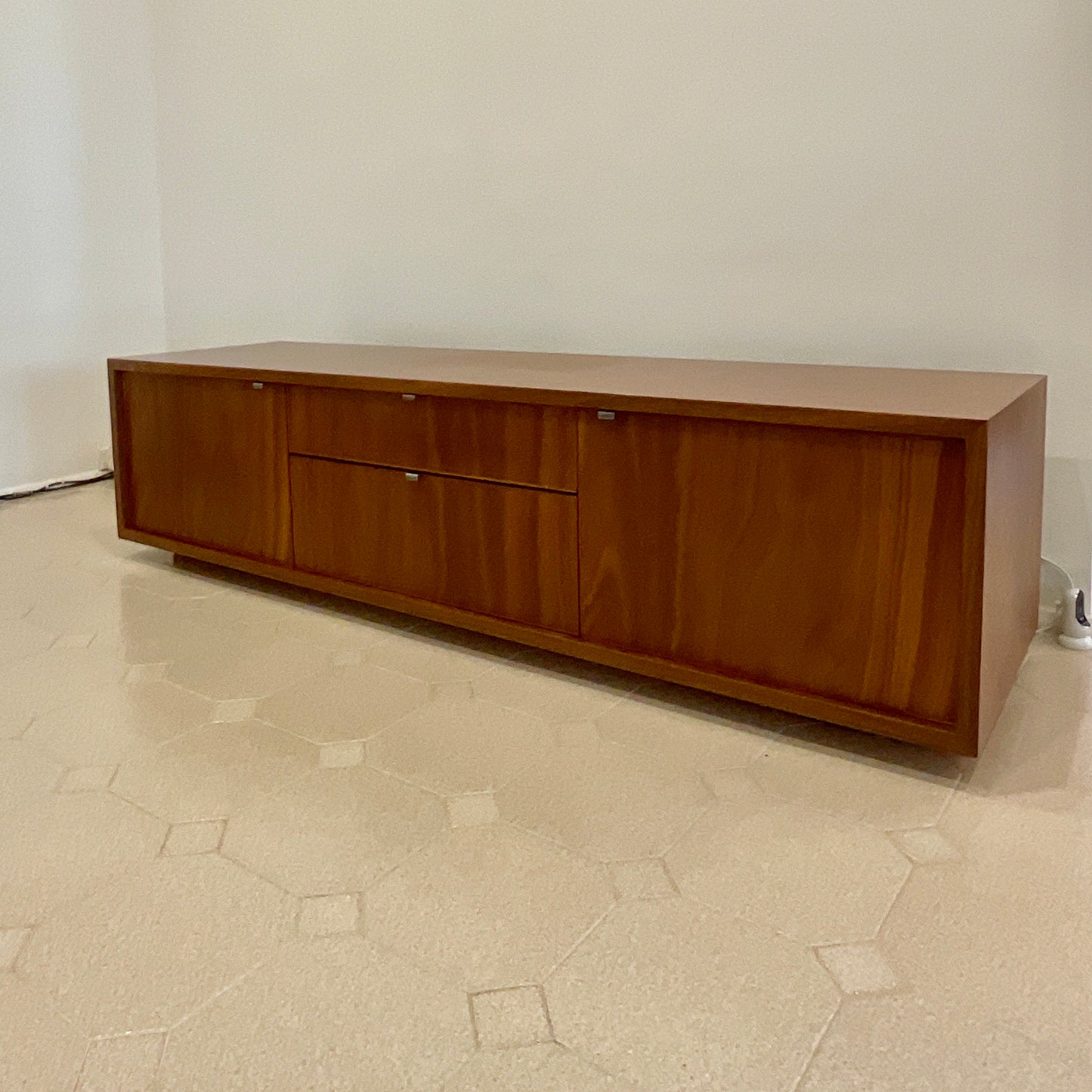 The entertainment unit we have on offer by Planet is beautifully crafted in Spotted Gum. The unit has two end cabinet doors and two centre pull out drawers.