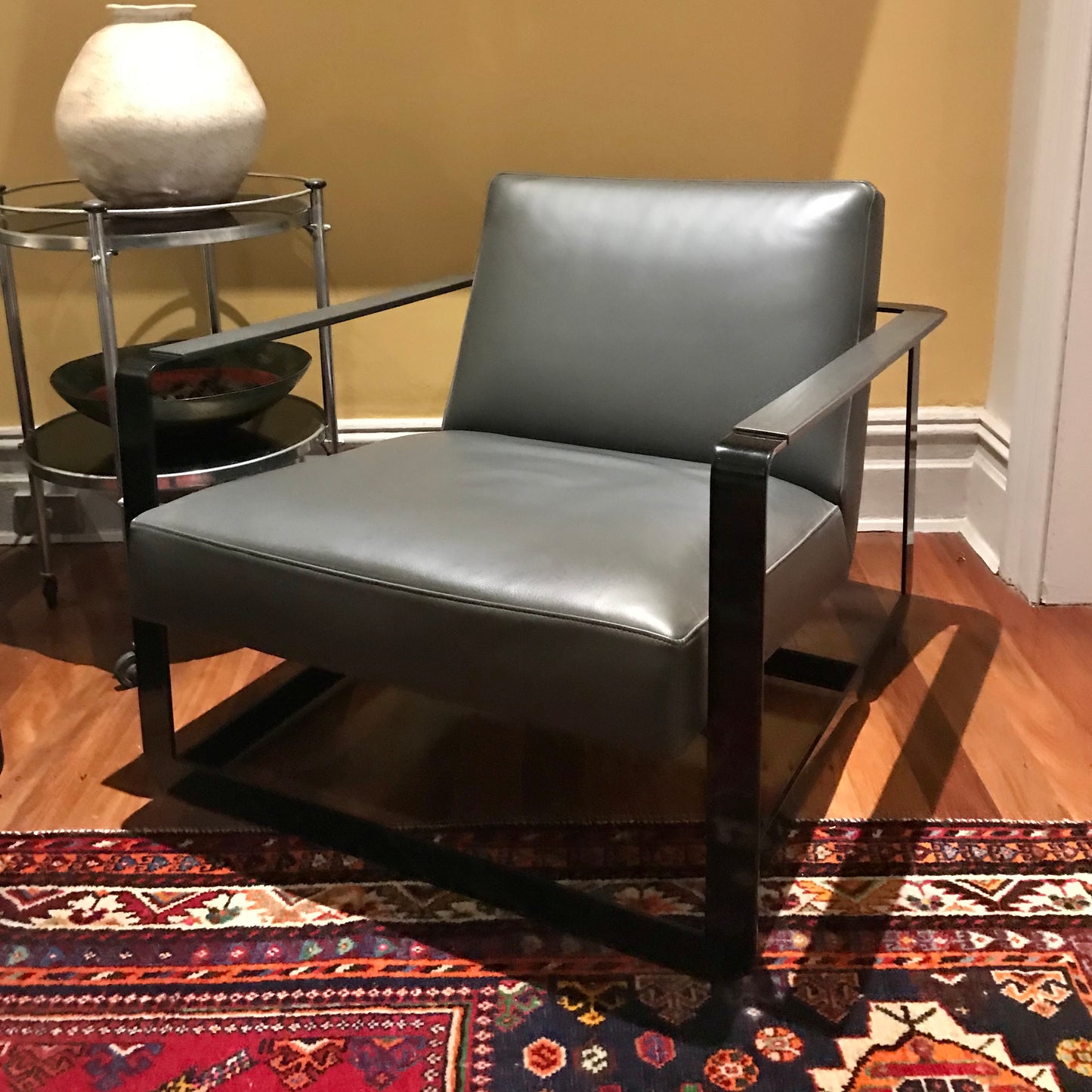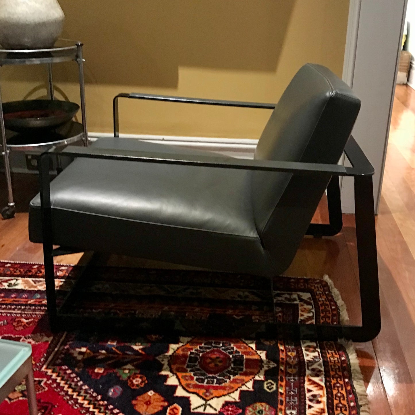The Gaston Armchair, with its gentlemanly name, and elegant features is a result of Poliforms collaboration with Vincent Van Duysen. Evoking a sumptuous style, it is available with covering in leather or fabric, appealing to a range of stylistic tastes and tailored to suit a range of interiors. The chair we have on offer is upholstered in PELLE SUPER 7 Grey with 03 black glossy metal frame.