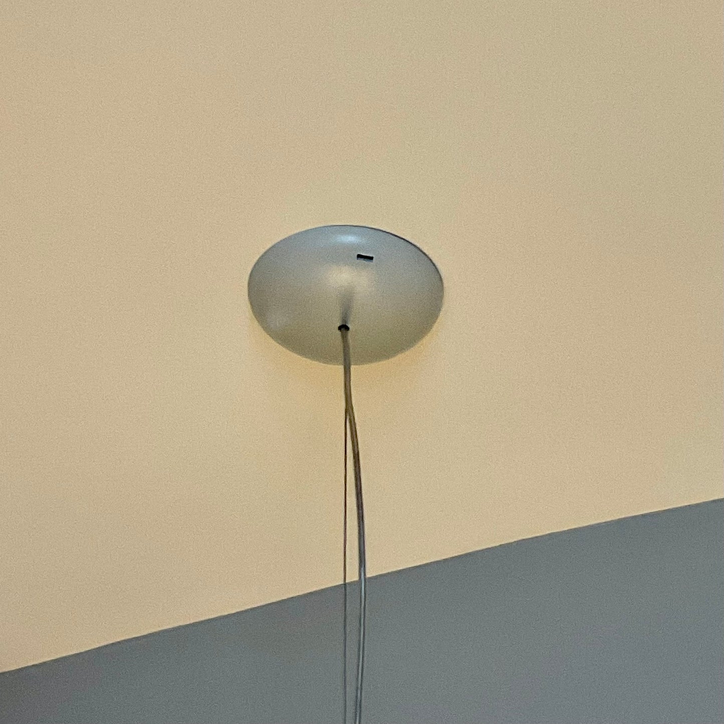The spherical shade maximises the diffusion of light while minimising the light's profile: the light appears as a flat glowing disc when illuminated and issues a soft and clean white light. Morrison designed this lighting series to invoke radiant calm reminiscent of the full moon.
