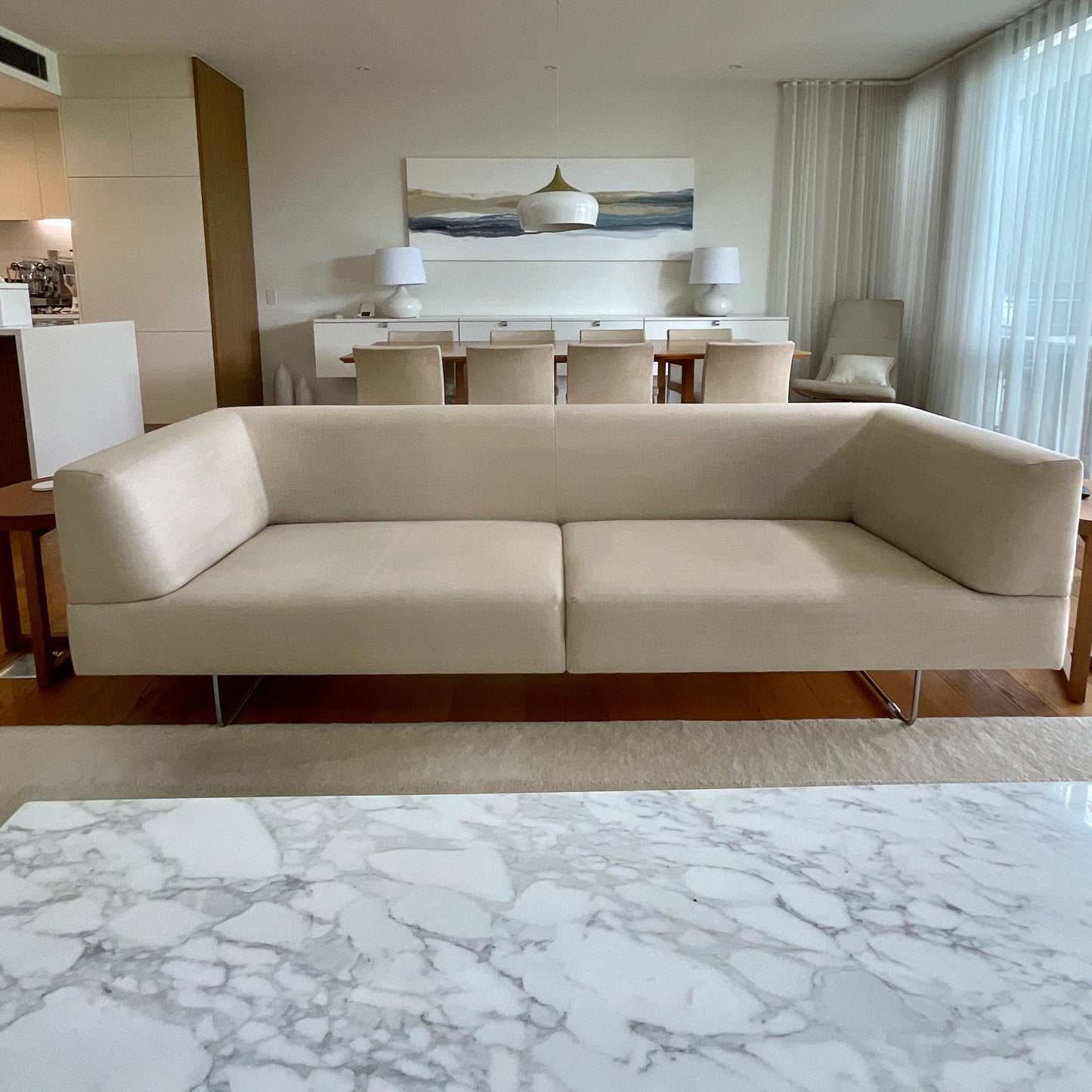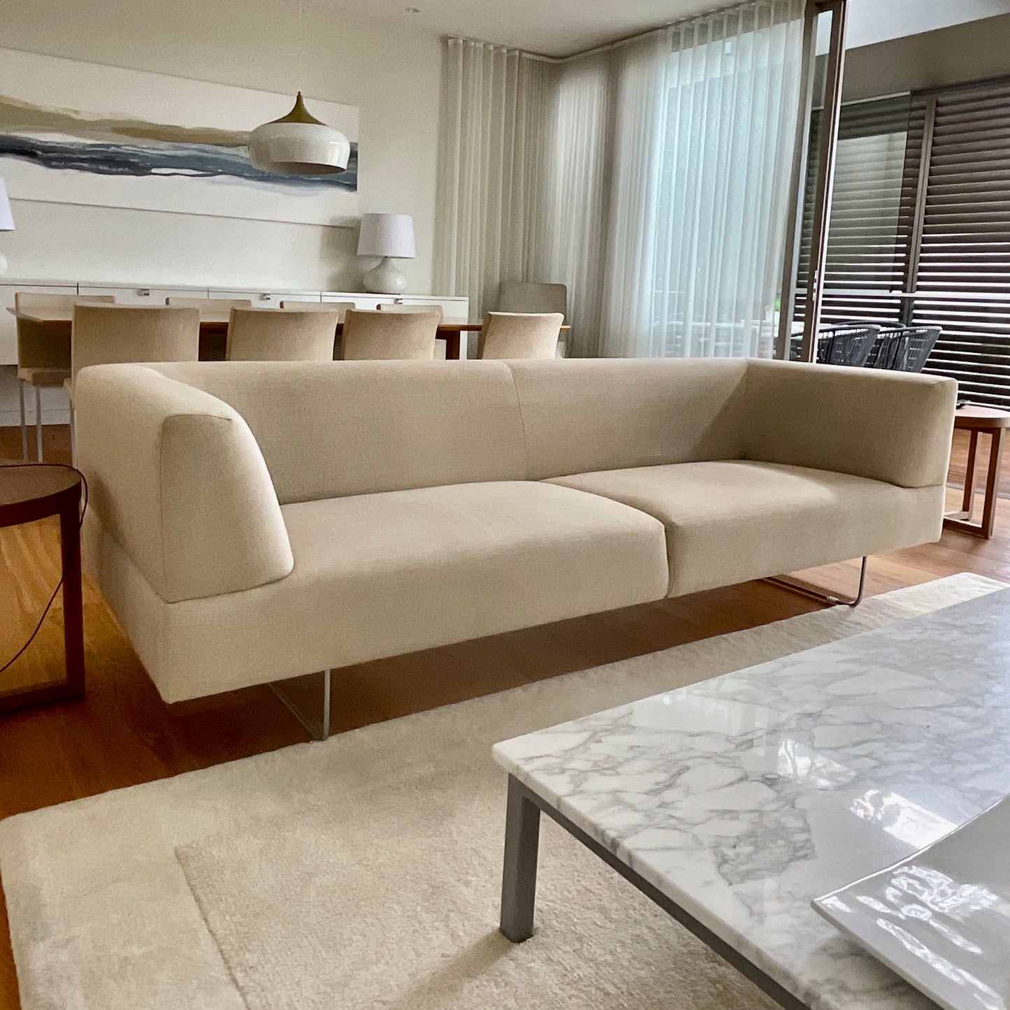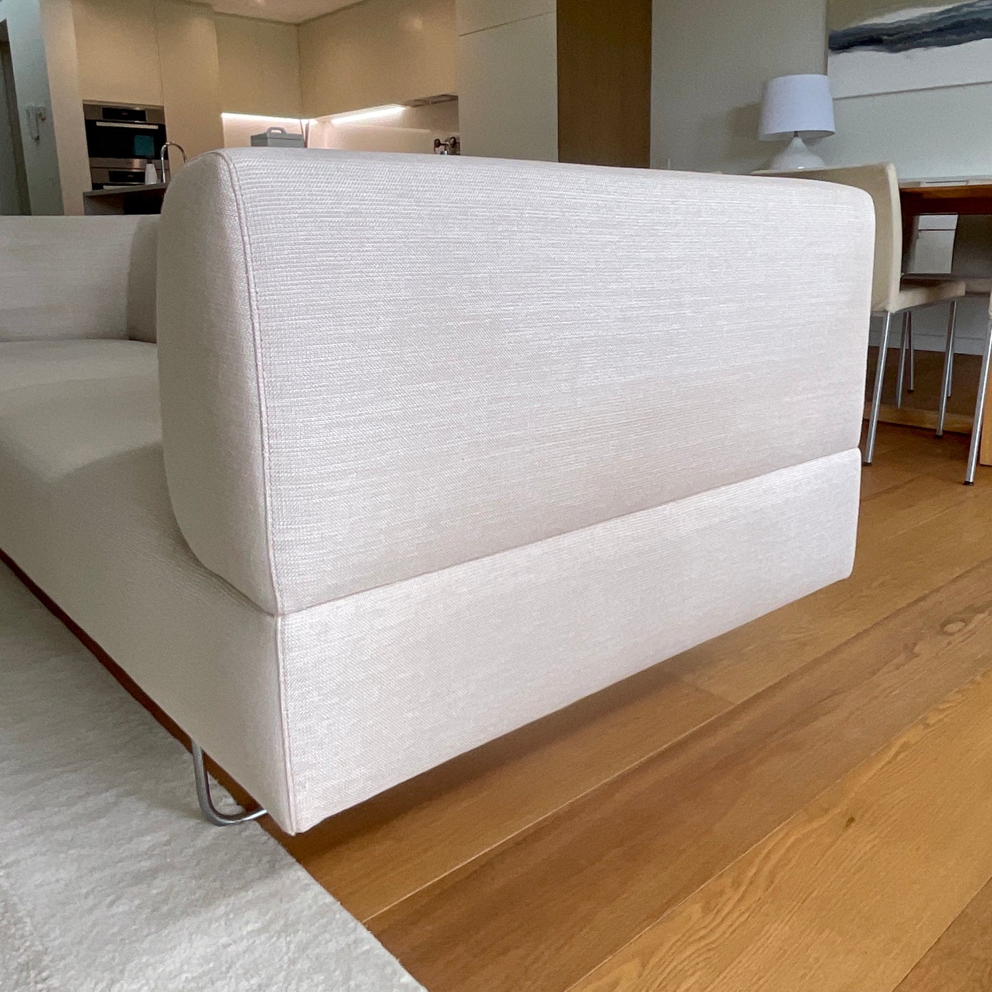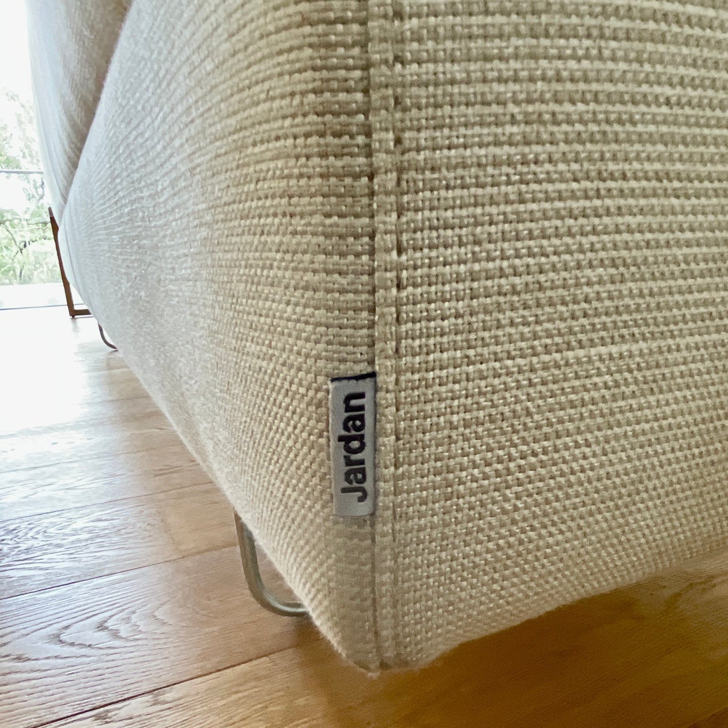 Upholstered hardwood frame, high resilience foam seat and powdercoated steel base. Jardan foams are all GECA certified and timber is sourced from sustainably managed forests. Designed by Jardan Lab, our furniture takes shape at our Design + Manufacturing HQ in Melbourne, Australia. The sofa we have on offer is upholstered in Unique / Natural.