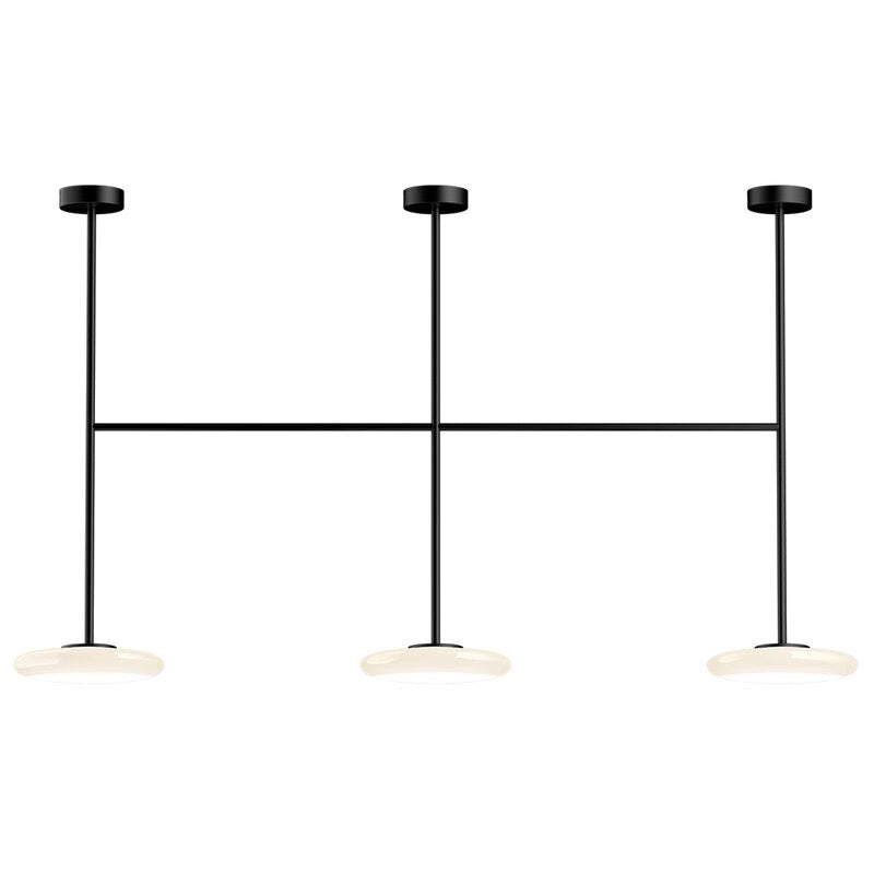 Ihana x3 is a modern high ceiling light with a timeless design that hangs elegantly from the ceiling. The black steel structure is an excellent contrast to the three opal glass shades with LEDs there emit a warm and cosy light. The built-in LED is available with dim-to-warm, making the light colour even warmer and comfortable during dimming.