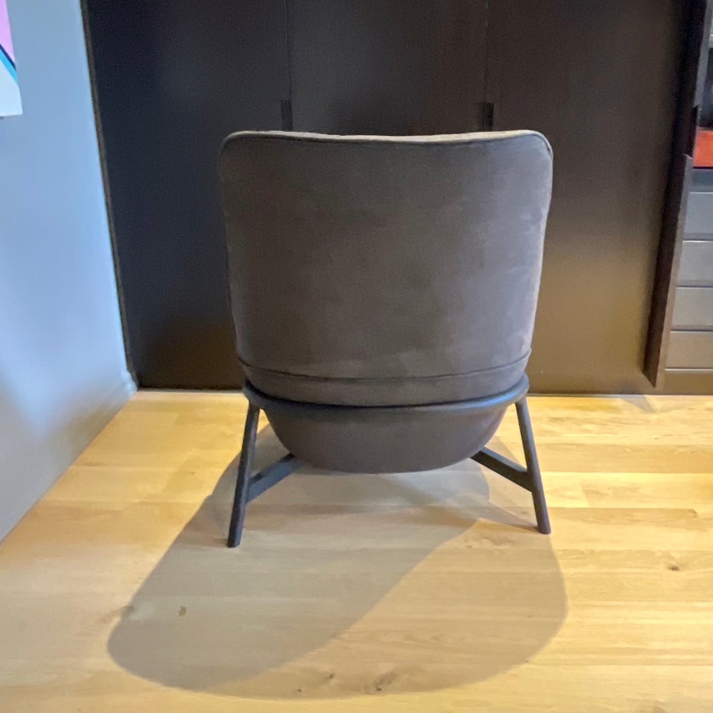 It is possible to create a very large possibility of proposals with a personal character, maintaining the aesthetical and functional point of view, that place themselves individually in very different spaces and atmospheres. Armchair 81 with metal base - Medium version. The chair we have on offer is upholstered in a grey fabric.