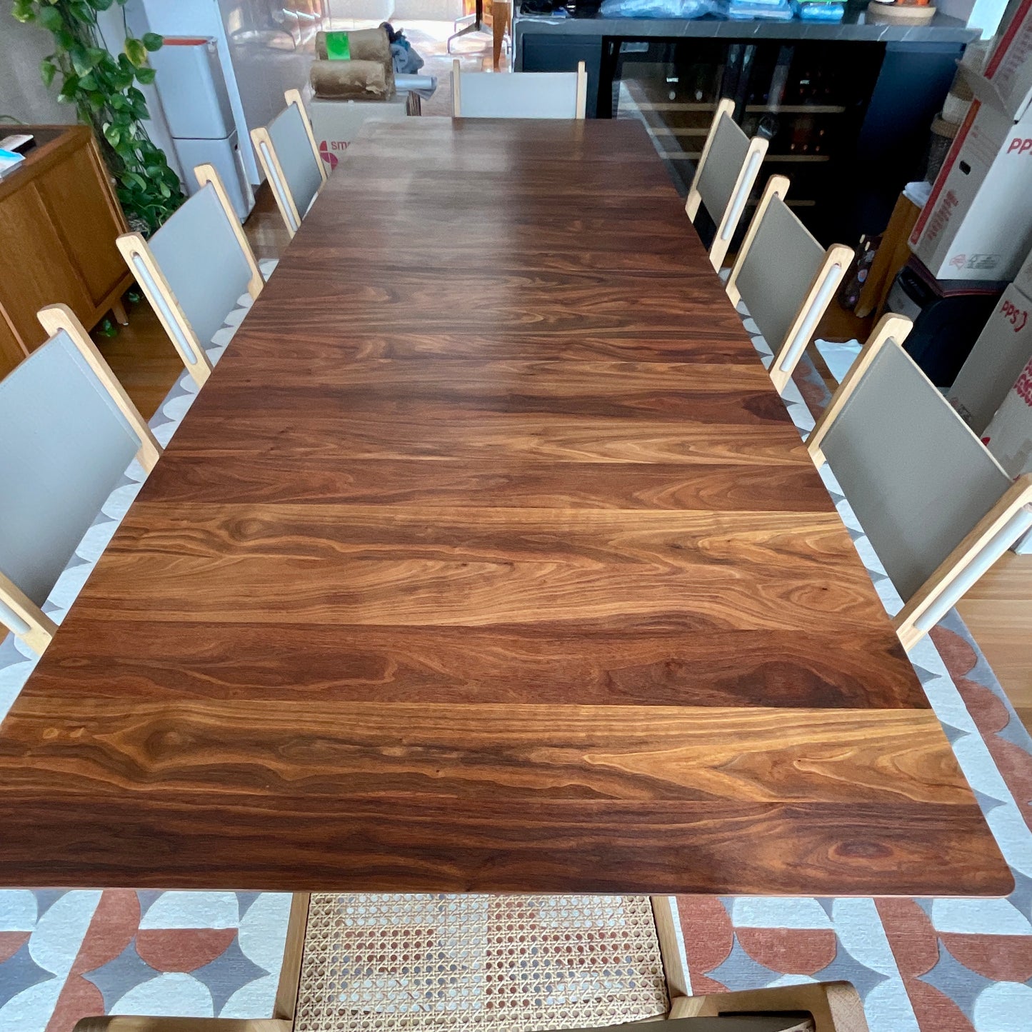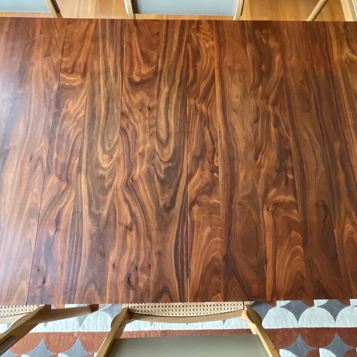 The Light Extending Table has a tabletop made from engineered solid wood: an advanced material that harnesses the beauty, strength and durability of solid wood, while increasing the design possibilities when used as a planar material.