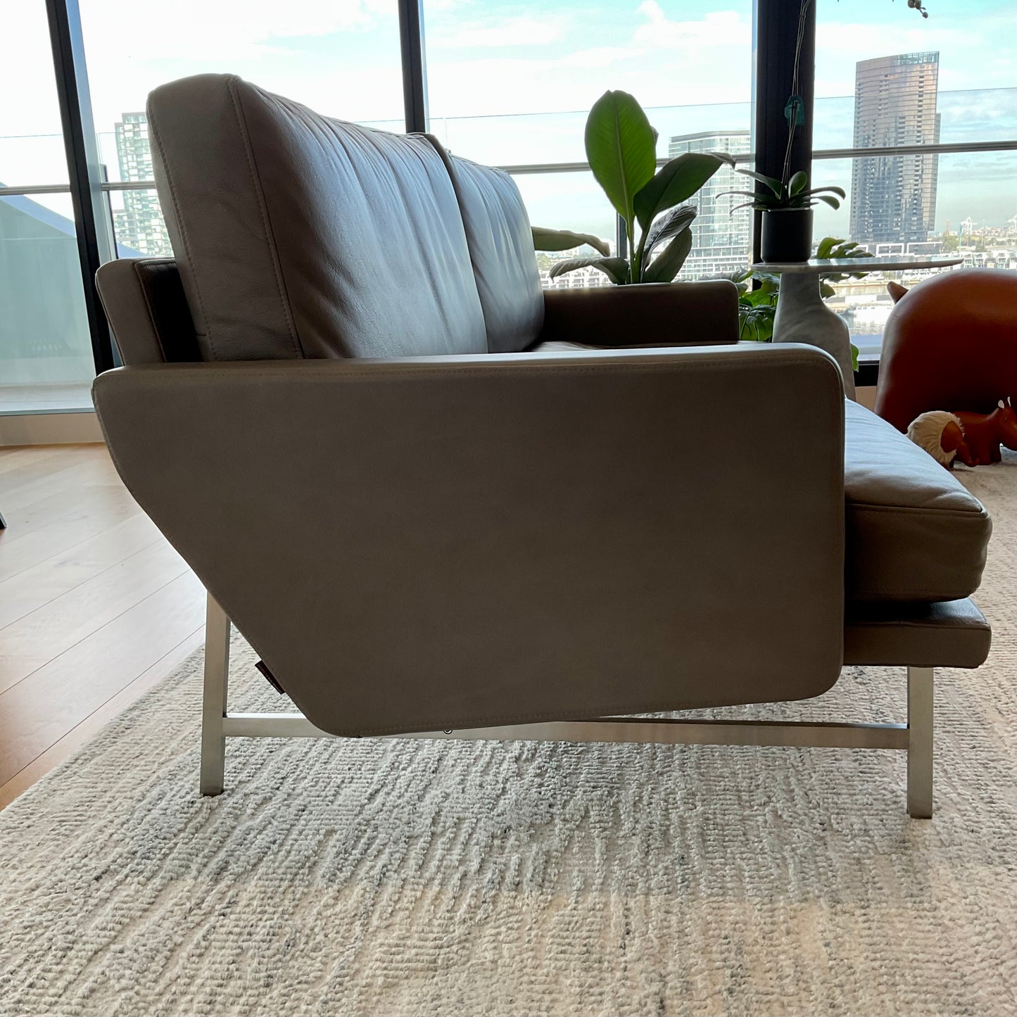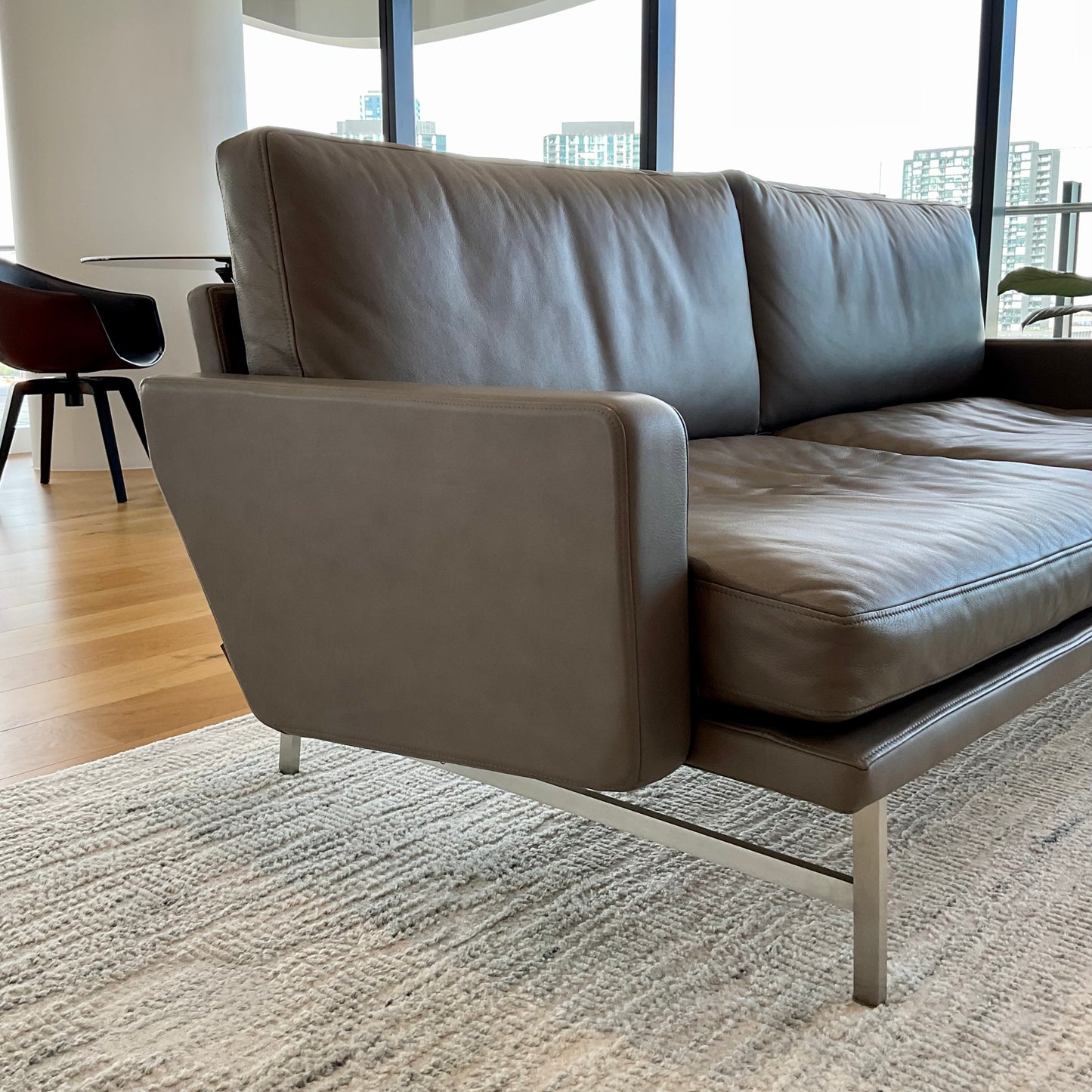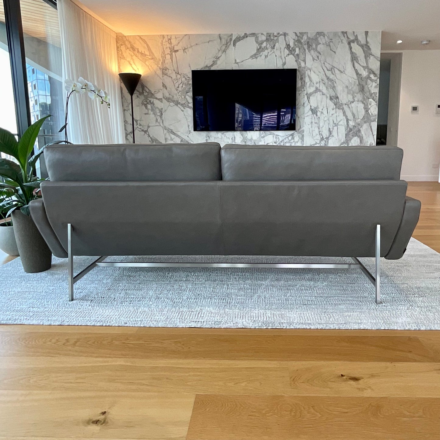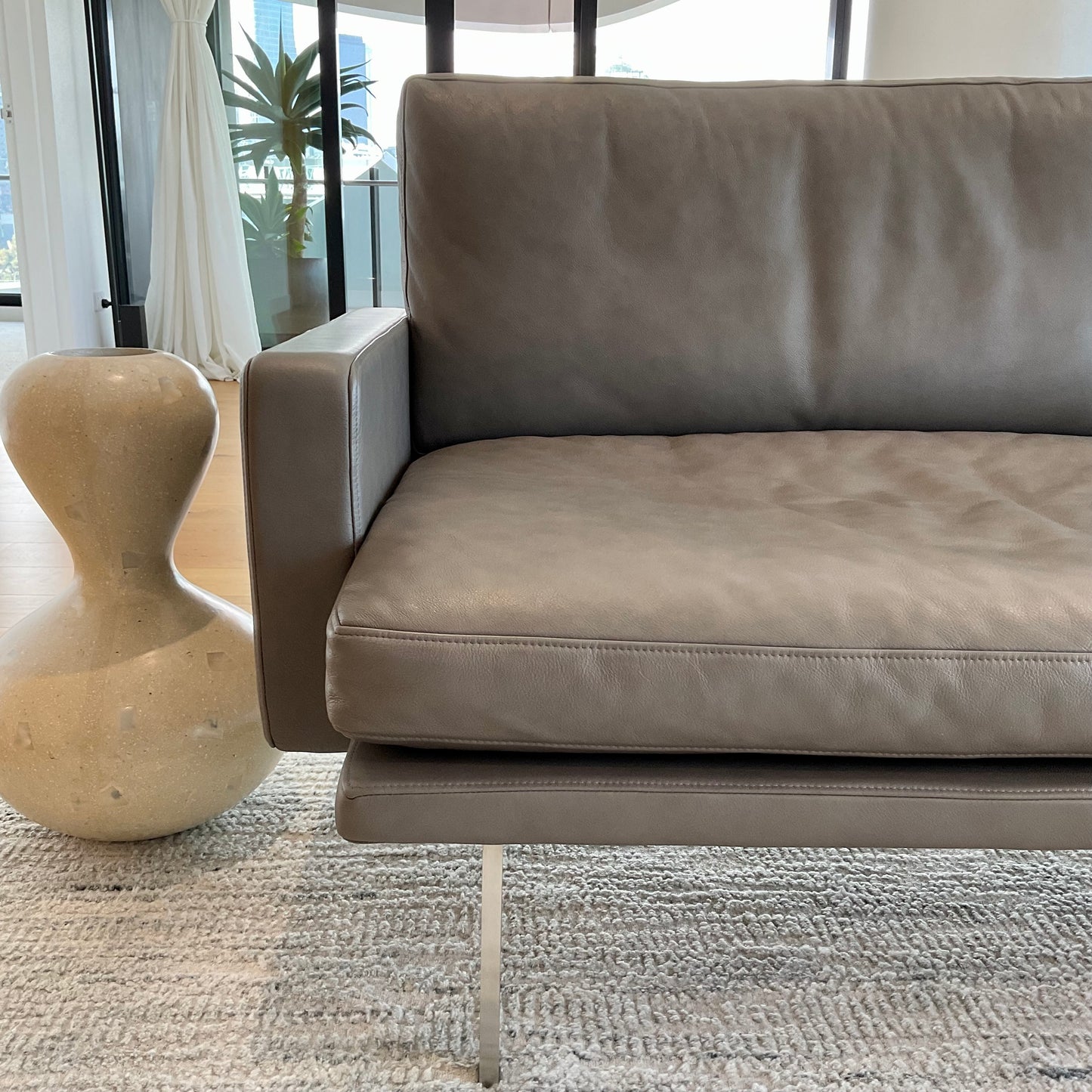 The Lissoni Sofa™ is a sophisticated, modern sofa that adds a healthy dose of comfort and luxury to everyday life. Characterized by clean lines and flawless attention to detail, this sofa by Piero Lissoni has a remarkably pronounced appearance that elevates and adds character to any room. The two-seat sofa has an understated sophistication that exudes quality through clear, elegant construction. This Lissoni sofa model is wider and deeper than many standard two-seater sofas. The sofa we have on offer is upholstered in - Nuance Leather - Smoked Grey.