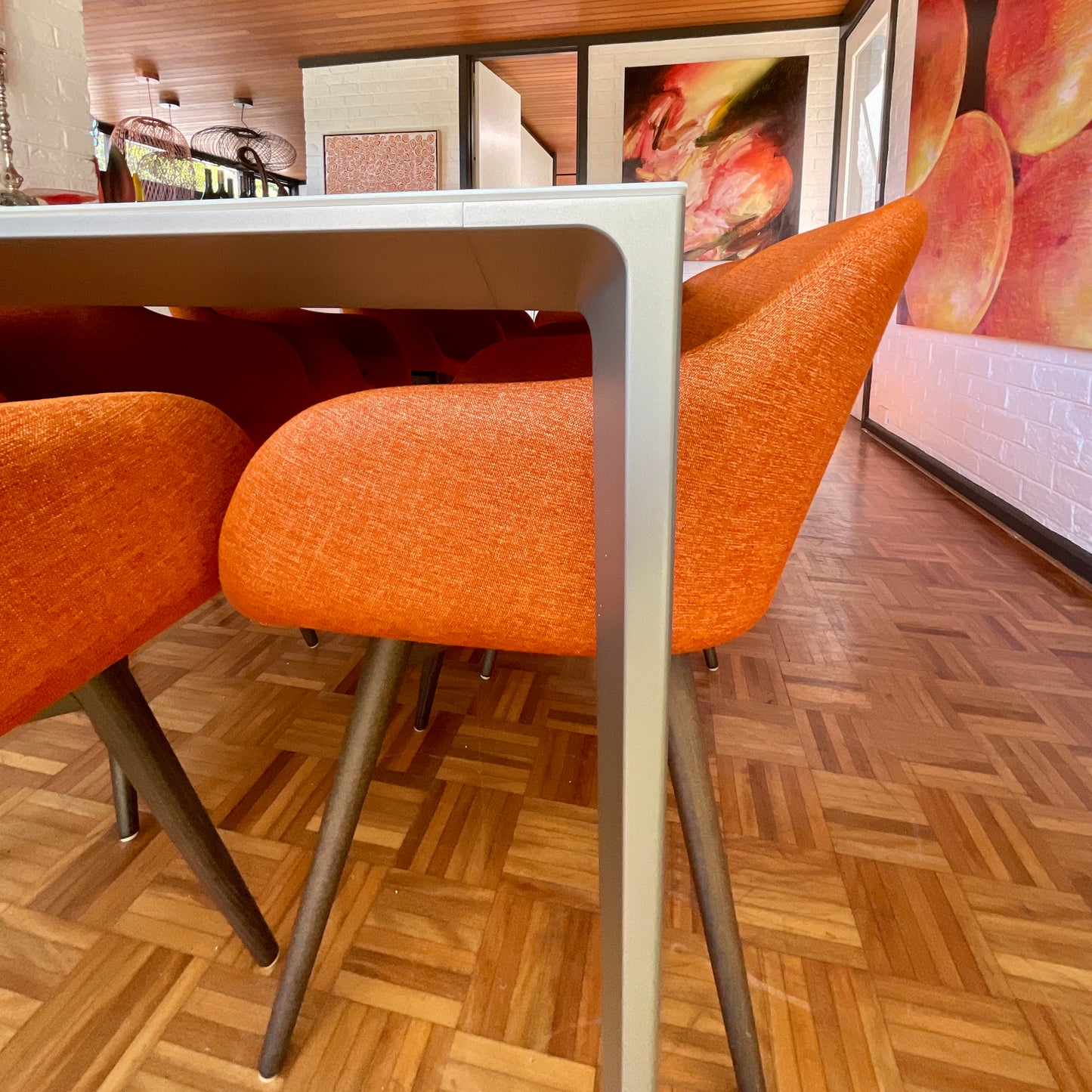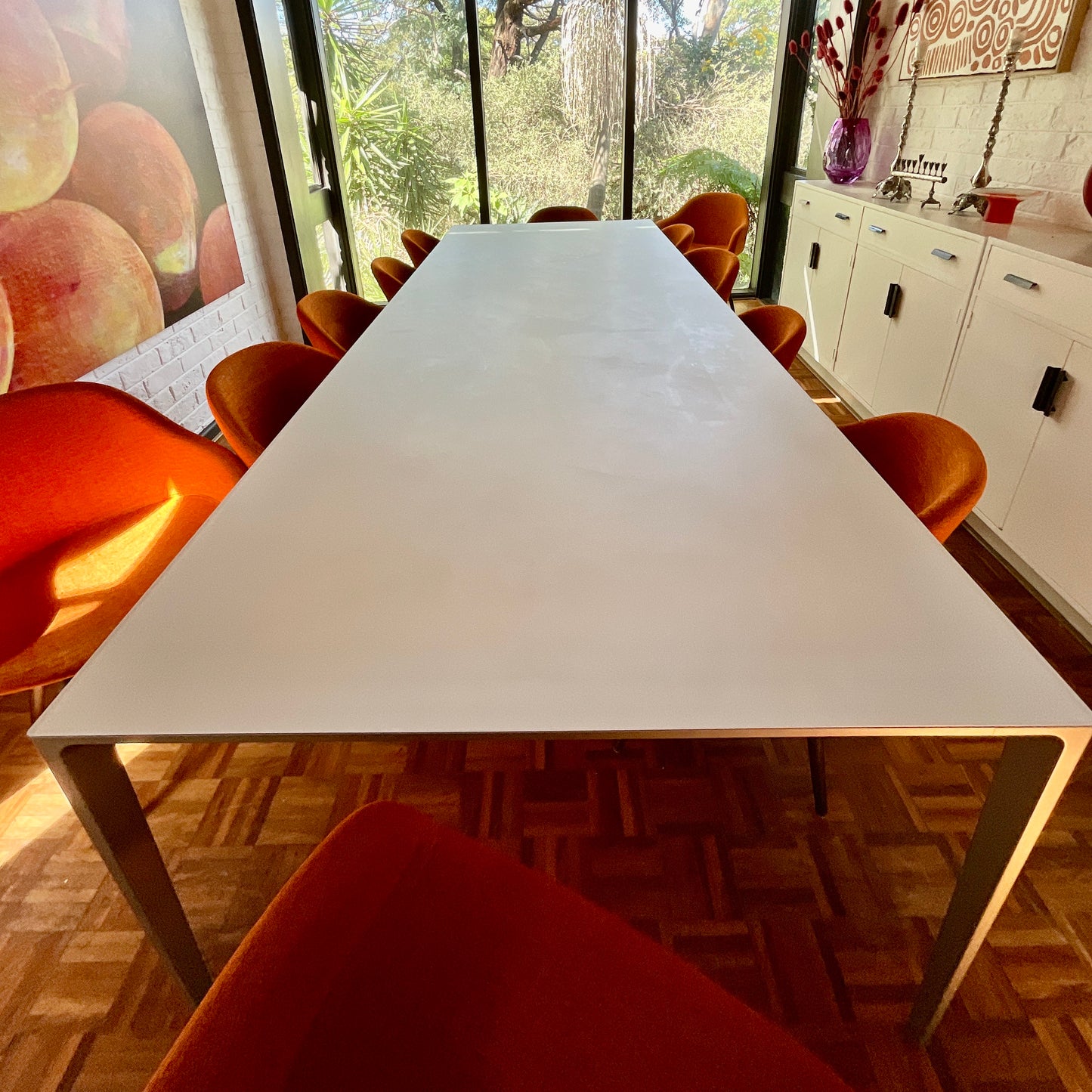 Long Island is a tailor made table characterised by a thin aluminium frame and table top. A system of tables with an essential and refined look, consistent with the unique Rimadesio philosophy. Available in different shapes and dimensions, as well as in the new extensible version, Long Island combines rigorous aesthetic, technological research, and expressive innovation. The unique variety of the available finishes allows a natural combination with the other proposals of the collection.