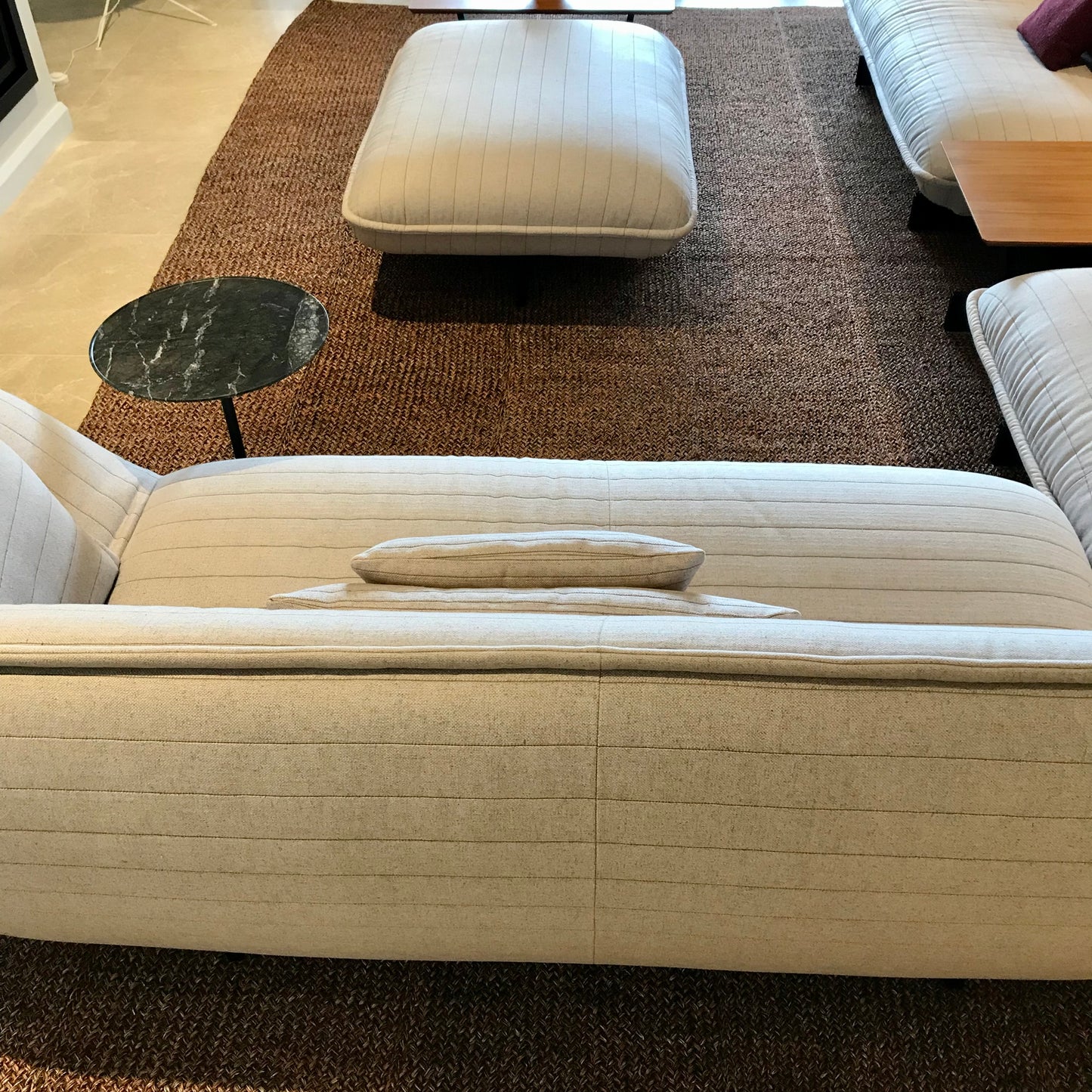 084 Maglia designed for Cassina is a rug made of Fique is a versatile and robust fiber, of Colombian origin, once used for the production of coffee bags and yarns for agriculture: today the natural material is hand-spun to be then knitted on special long needles to create unique beauty rugs. Not surprisingly, Maglia is the name of the collection, which is offered in five shades. The irregularity of the material, through craftsmanship, produces a splendid motif, full of authenticity. The area rug we have on offer is in colour 013 Salmon. The rug comes with certificate of authenticity.