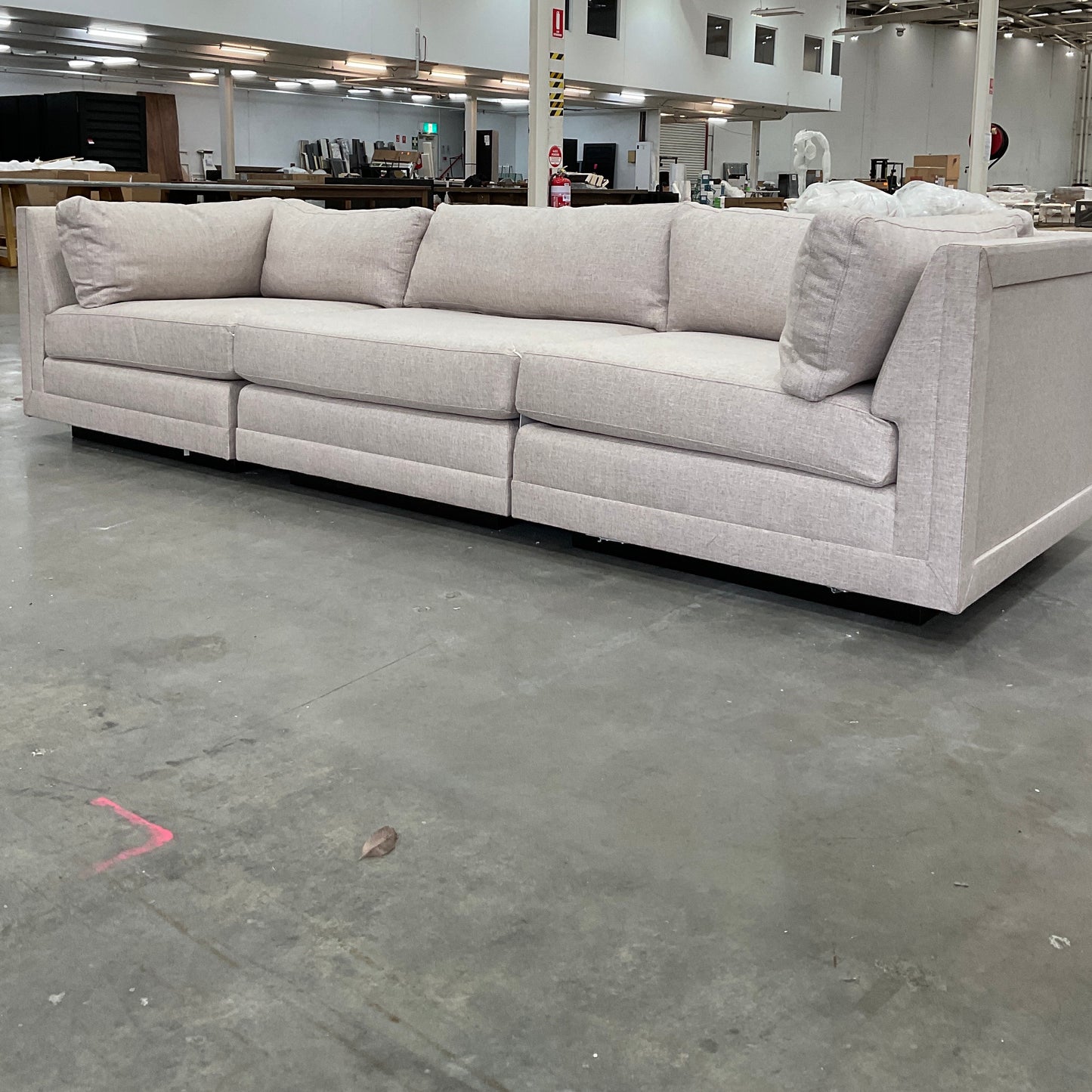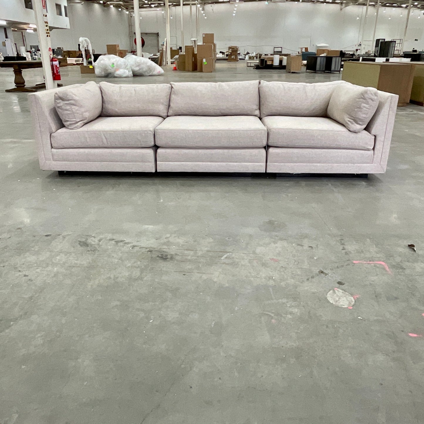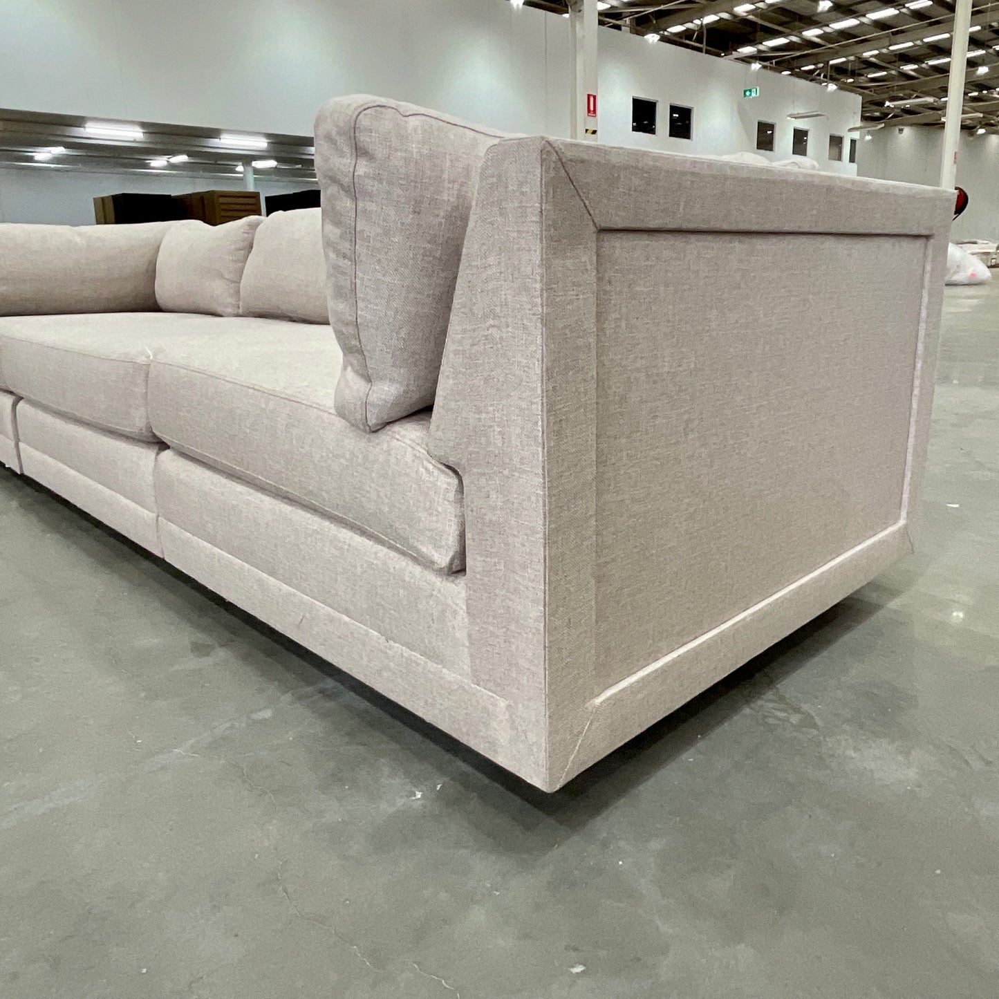 The Malibu Sofa by Coco Republic is a tailored yet versatile sofa. The sofa we have on offer is in three pieces; Left arm, Centre and Right Arm. It is upholstered in a neutral fabric.