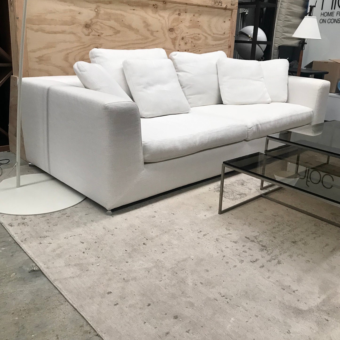 The Matisse Modern Sofa by Minotti has easy volume and simple lines. A great choice for modern interiors. The frame is made of natural wood, The upholstery is white fabric. The model is developed taking into account the needs of modern life.