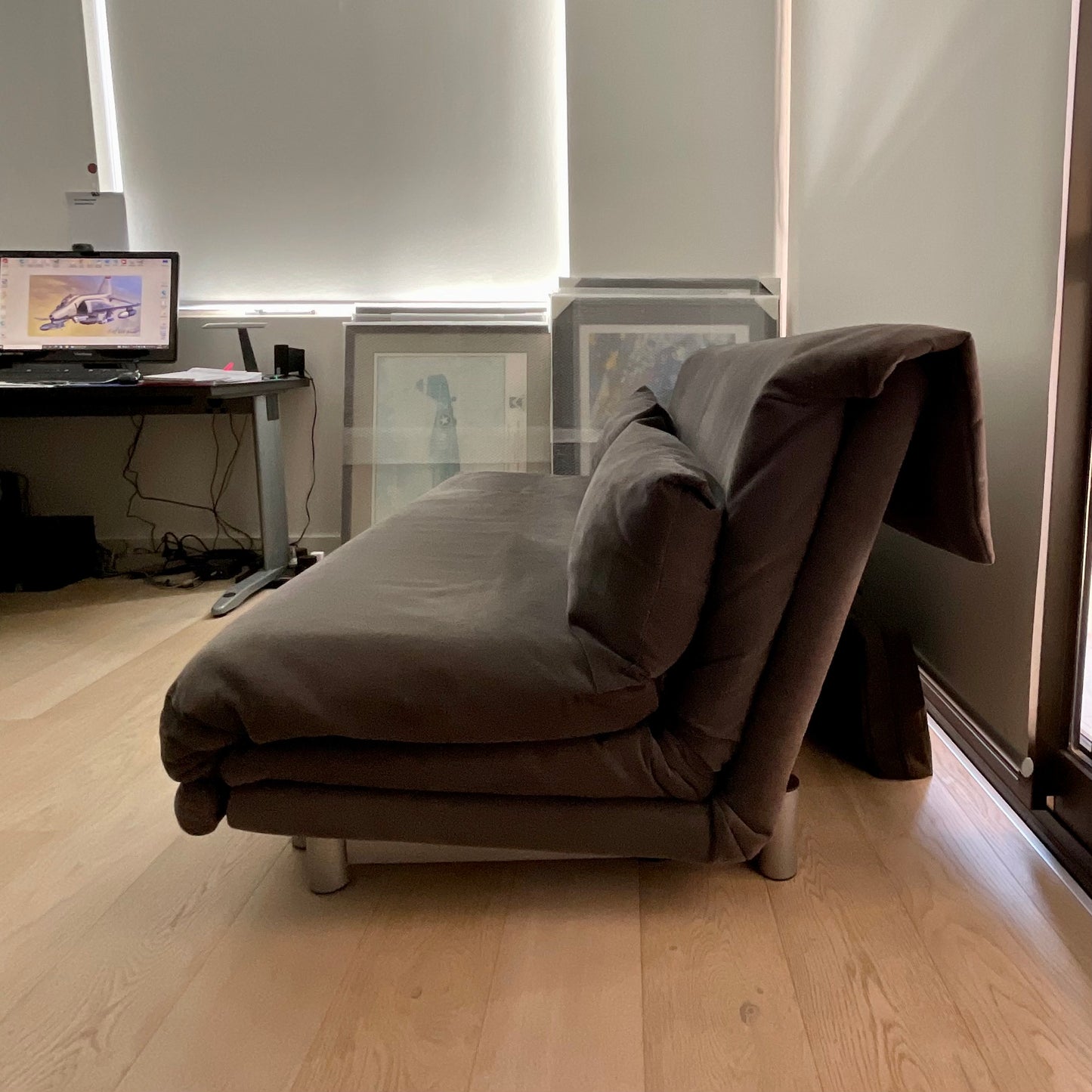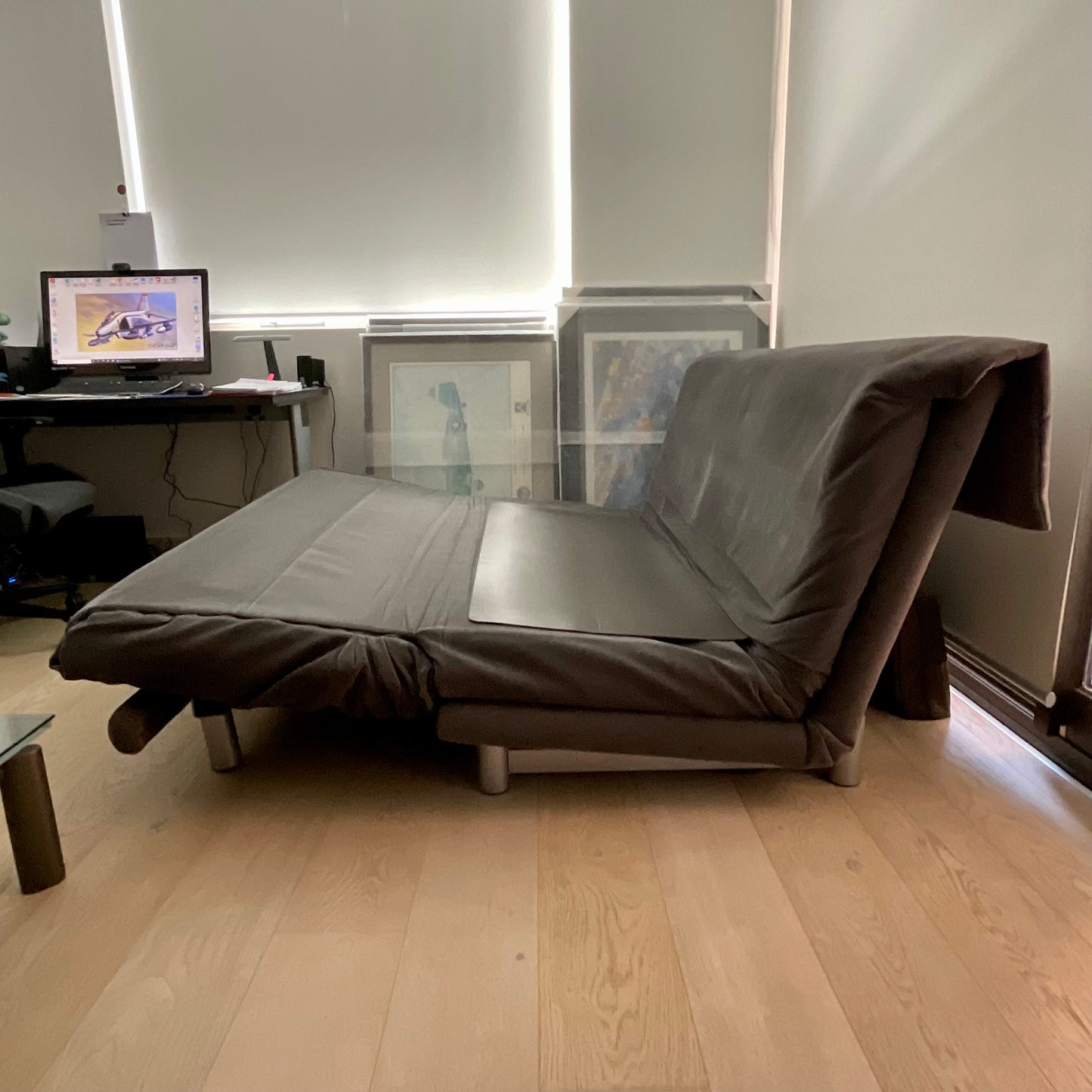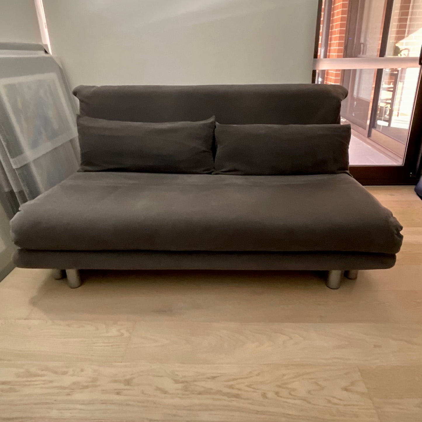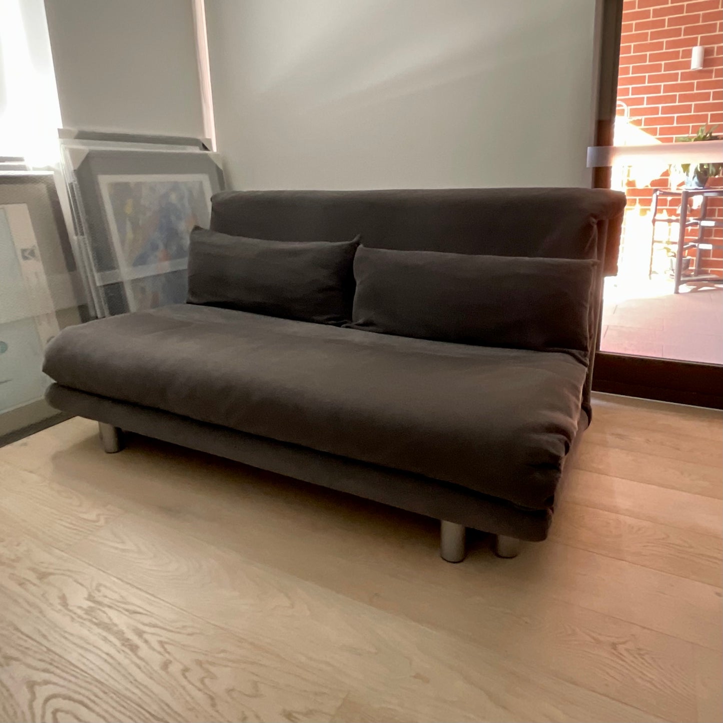 Ligne Roset’s Multy sofa bed is an indispensable piece for modern living. Designed by Claude Brisson, the Multy is truly versatile. As a sofa, the Multy is supremely comfortable and displays sleek lines; folded out to a chaise lounge, it offers luxurious space for repose; and laid flat, Multy transforms to a stylish bed for guests to offer a serene night’s sleep. Available in a range of varied fabrics and colours, the Ligne Roset Multy sofa bed can be customised to suit every home’s interior décor. MULTY has been specially designed for use as a bed on an everyday basis. MULTY offers three positions: sofa, chaise-longue and sofabed. Made in France. The Multy we have on offer is in a grey fabric. The base and back is polyether foam.