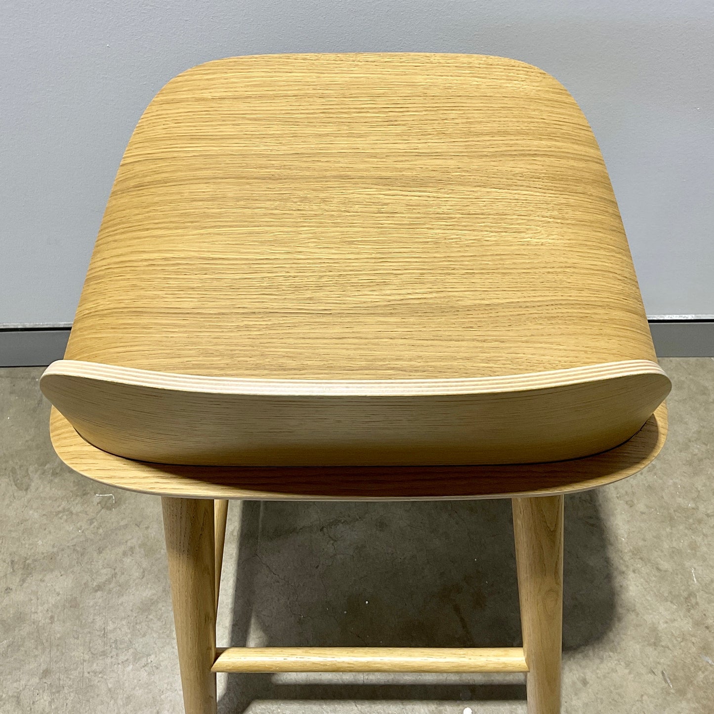 The Nerd Bar Stool is designed with a playfully contemporary expression, joined by its wooden Scandinavian materiality. The seamless integration of its back and seat makes for a characterful detail alongside the curved edges of its seat. The stool we have on offer is in natural oak.