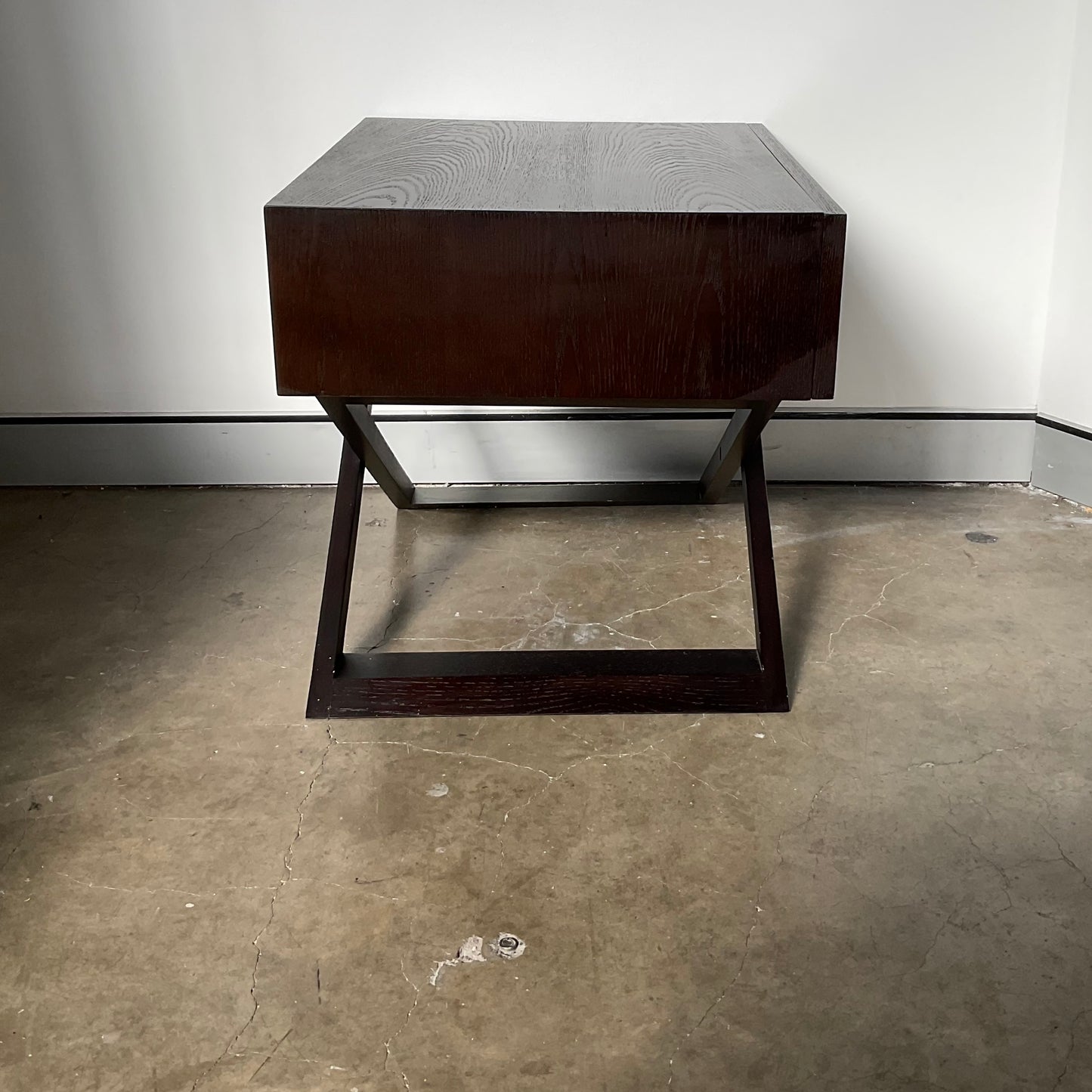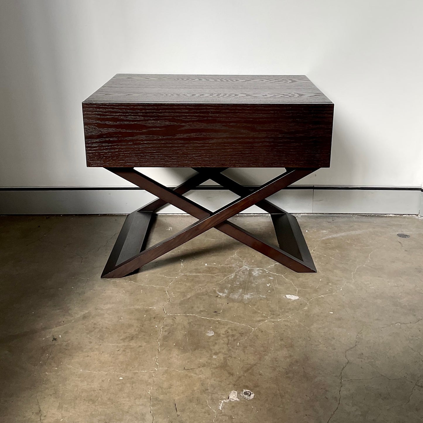 Enjoy a stylish visual treat as well as a functional storage solution. The Ascot Bedside table merges the classic charm and warmth of a wood finish with modern lines and a minimalistic style. Its cross-legged style adds a contemporary touch to your décor, and the single drawer offers more than enough room for all your nighttime keepsakes.