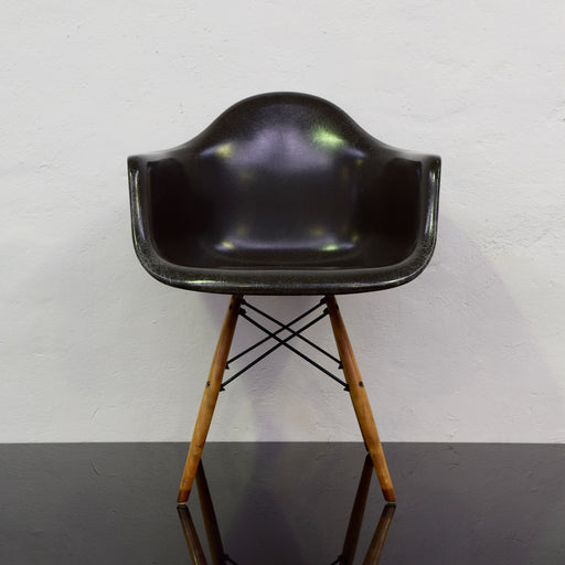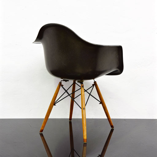 In the early fifties, fiberglass was considered an ultra-high tech material. Produced with a mixture of resin and glass fibers, it was lightweight, yet heavy-duty. Initial development and production was through Zenith Plastics—early pioneers of developing fiberglass for household and military applications. As for the chair bases, they were cleverly designed to provide a number of leg options that would be interchangeable within and between the arm shell and the side shell.