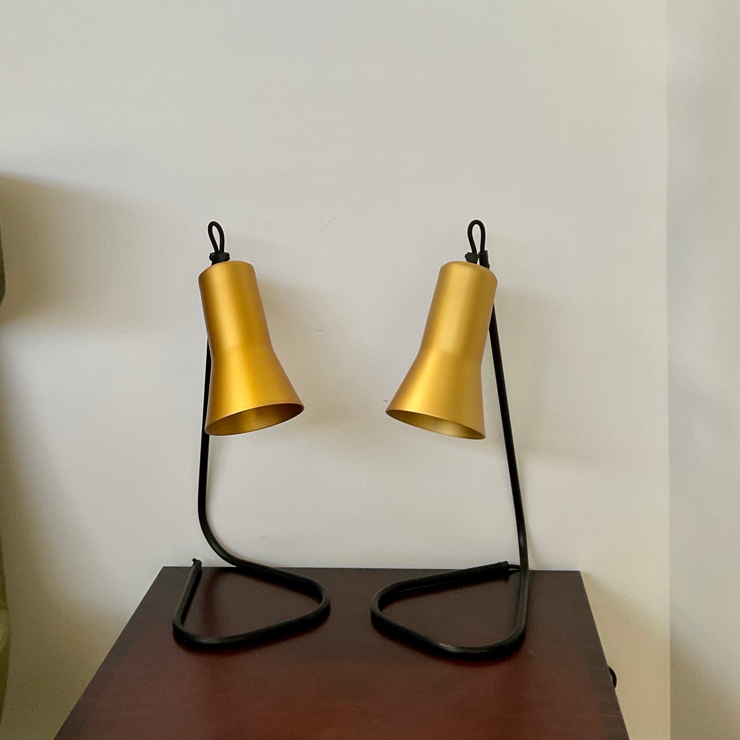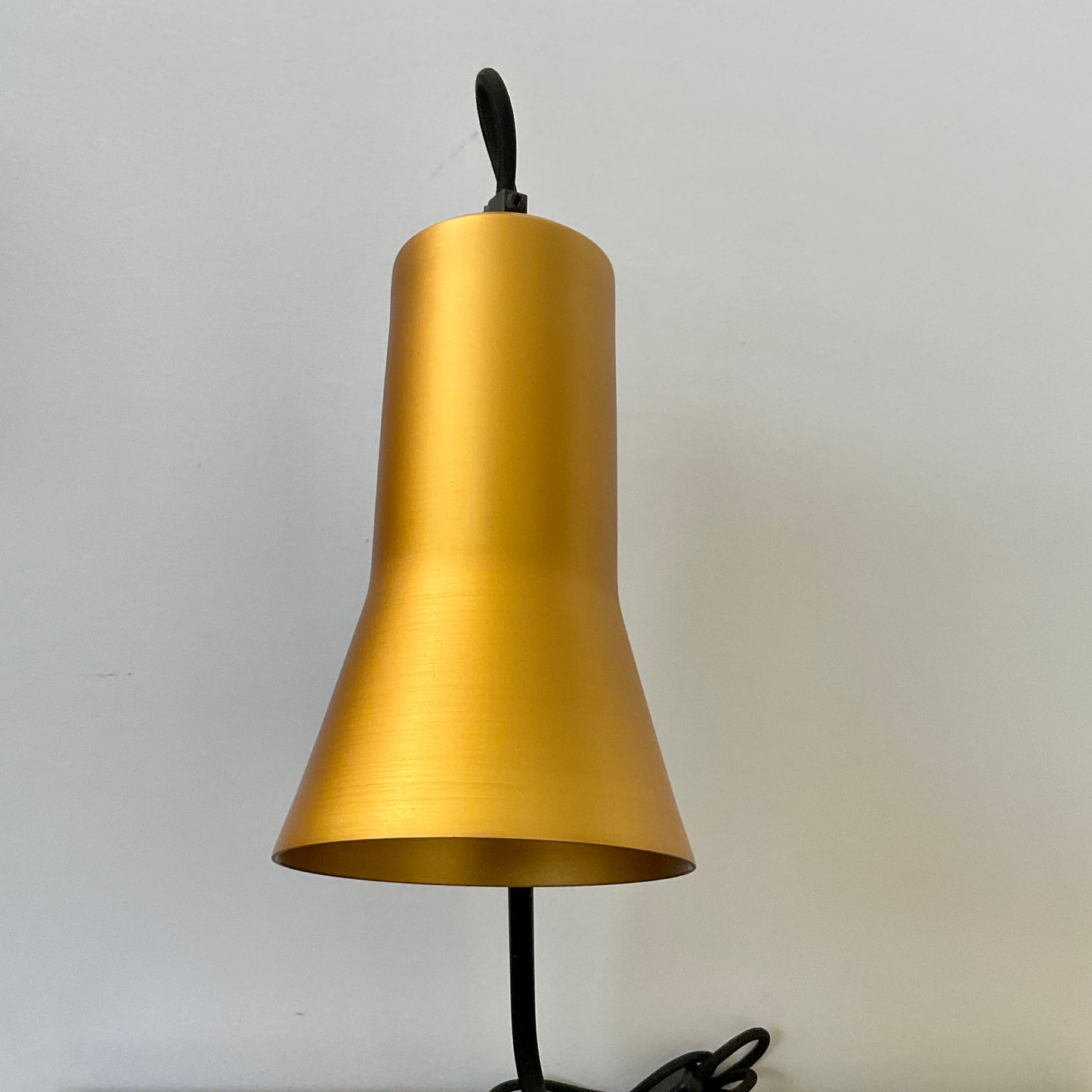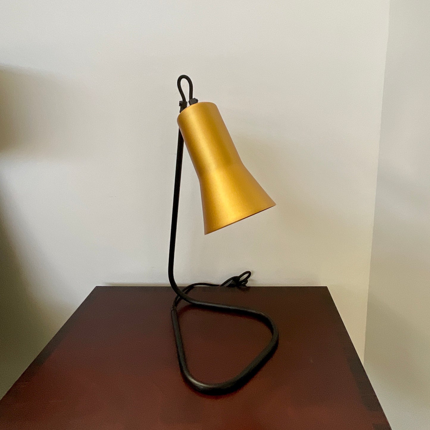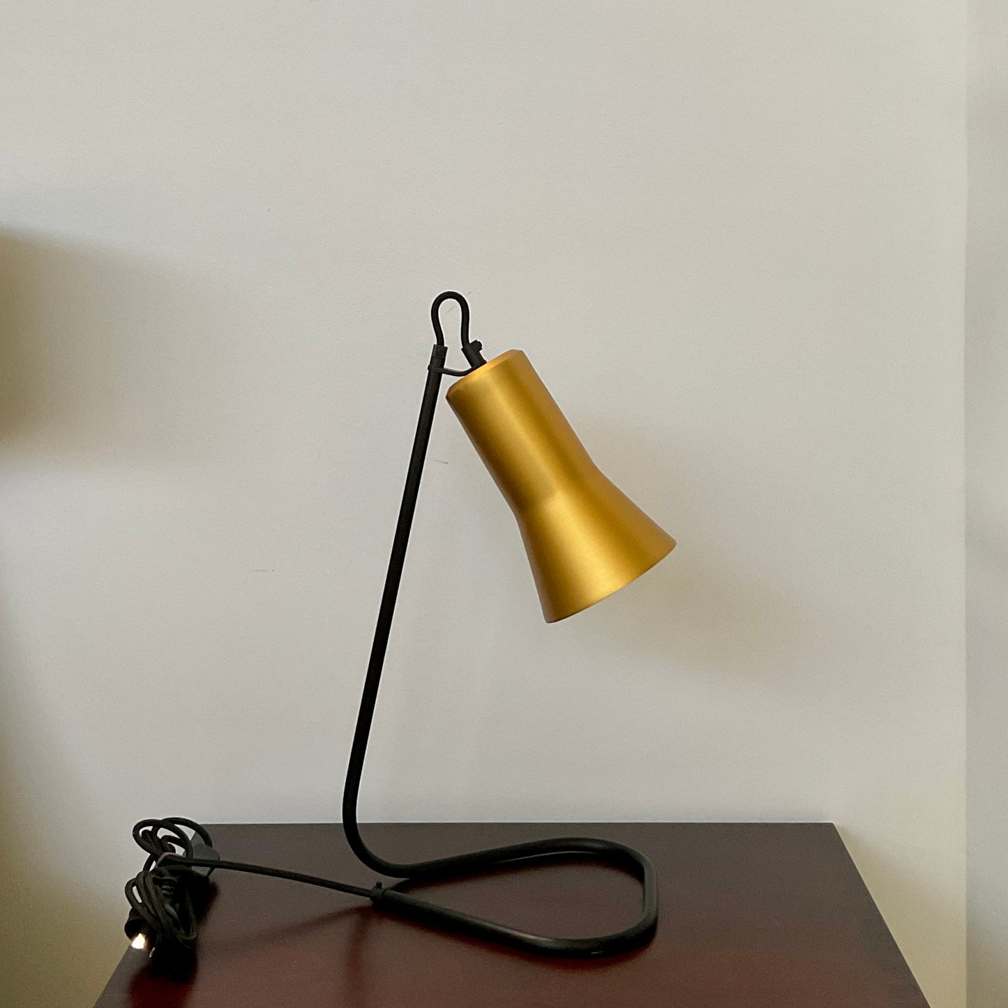 The Silhouette Desk Lamp’s bent metal stand is a playful continuation of the black cloth cord, which threads right up through and back down into the shade.