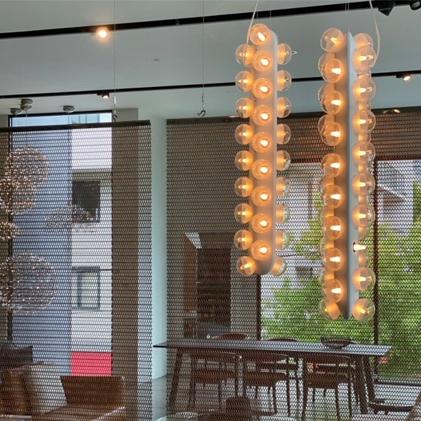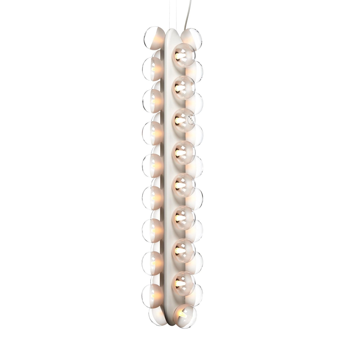 The creative experiment which resulted in this innovative piece being born during 2013 pushed lighting innovation to new levels. Glass bubbles cover each of the bulbs giving the structure a unique and space like appearance, like disks racing towards orbit. A flexible, stylish and standout solution for illuminating any interior, each individual piece is equipped with a warm LED source, which disperses light using a specially developed optic lens and saves on energy consumption too.