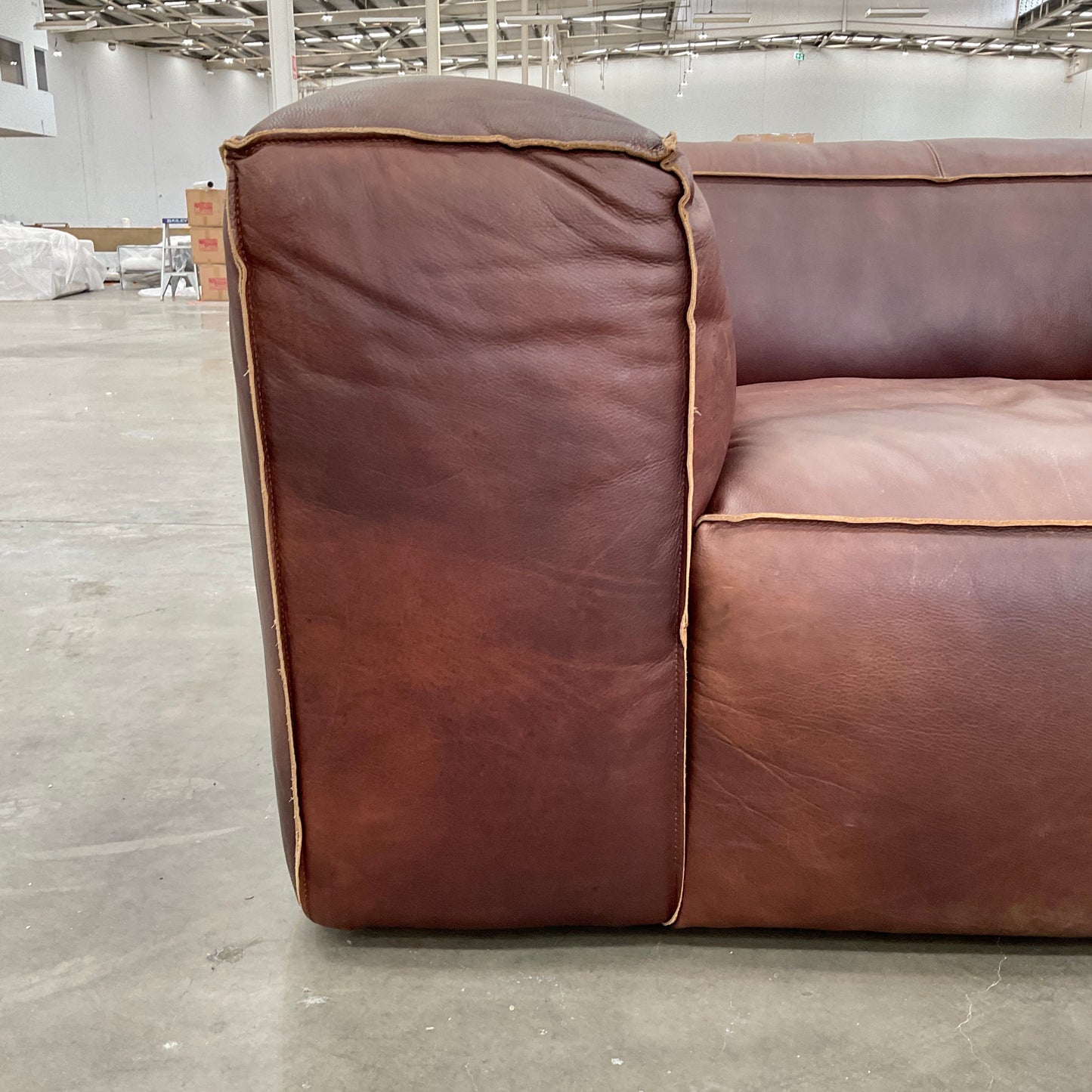 Scruffy’s clean lines and simplicity of style exude a modern aesthetic, combining the functional craftsmanship of the early 20th century with updated detailing and fresh new forms. Featuring reverse-stitch detailing and exposed leather edges, the Scruffy also focuses on comfort through its generous proportions. The piece we have on offer is in brown leather.