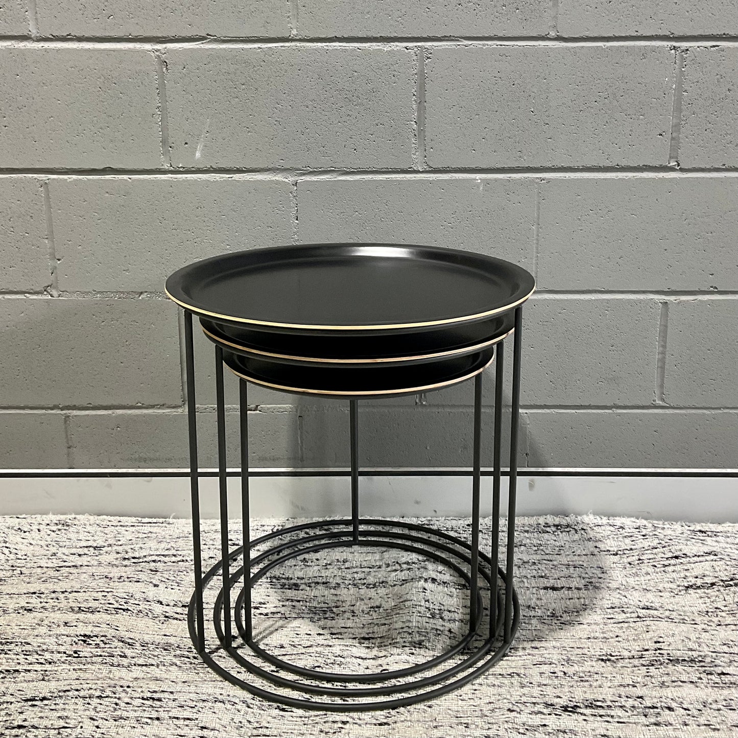 The Cartagena Nest Tables from BoConcept. Slim legs with round bases, the trays are removable. They can be placed in any rooms together or separately. The tables we have on offer are in black.