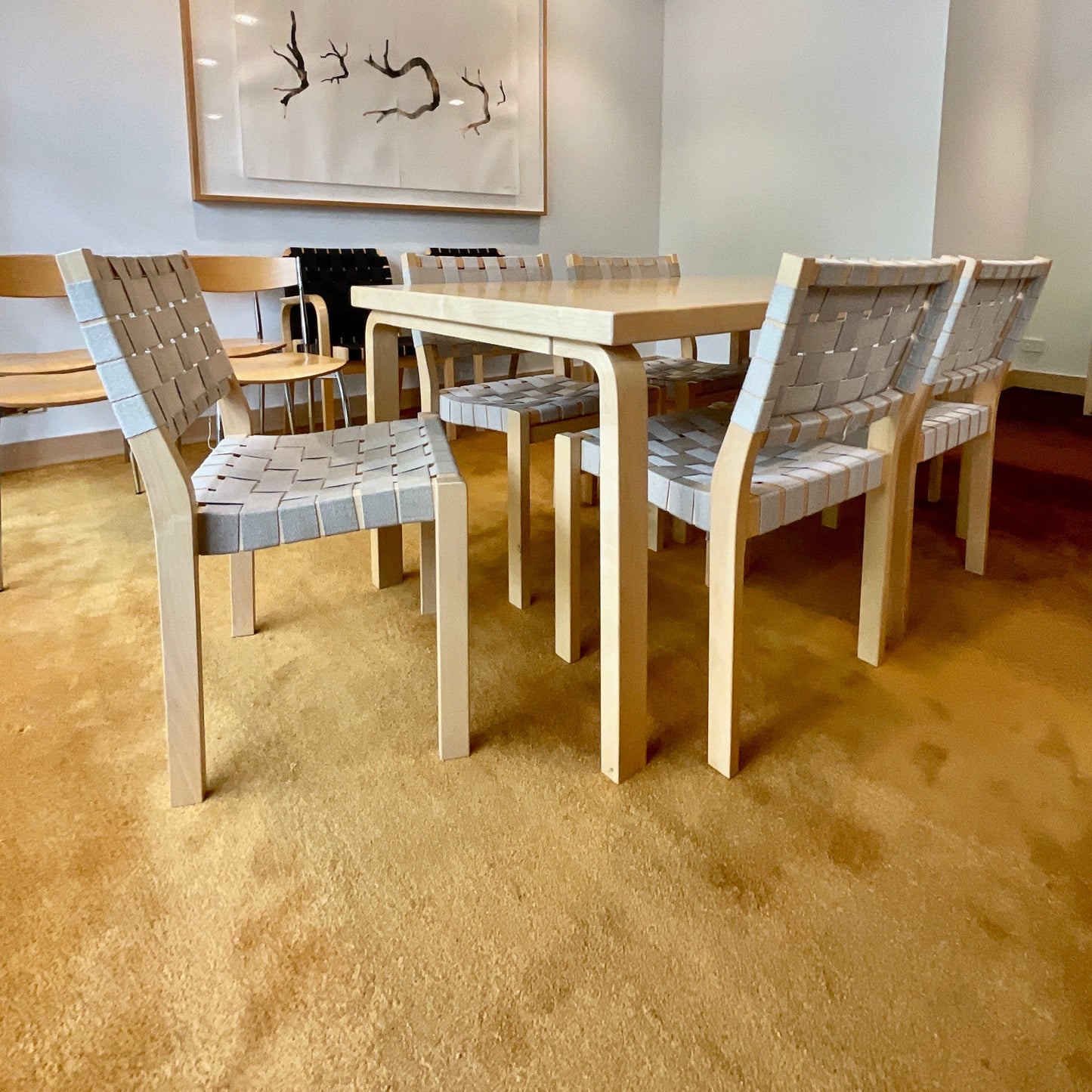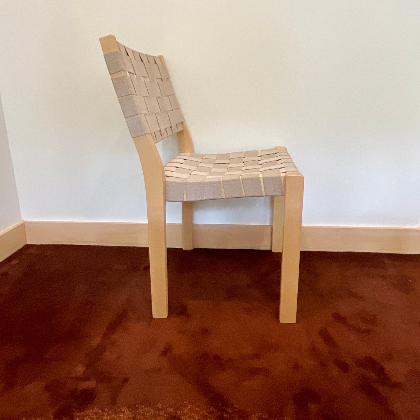 Chair 611 brings together a solid birch frame with a woven fabric seat and backrest. Designed to offer comfort and practicality, the fabric webbing yields to the sitter, making the chair exceptionally comfortable. Chair 611 can be easily reupholstered, which means the chair can have many life cycles. One of Alvar Aalto’s first modern furniture designs, Chair 611 has been in continuous production ever since its creation. Suitable for almost any environment, Chair 611 stacks up to four chairs. The chairs we have on offer are in natural.